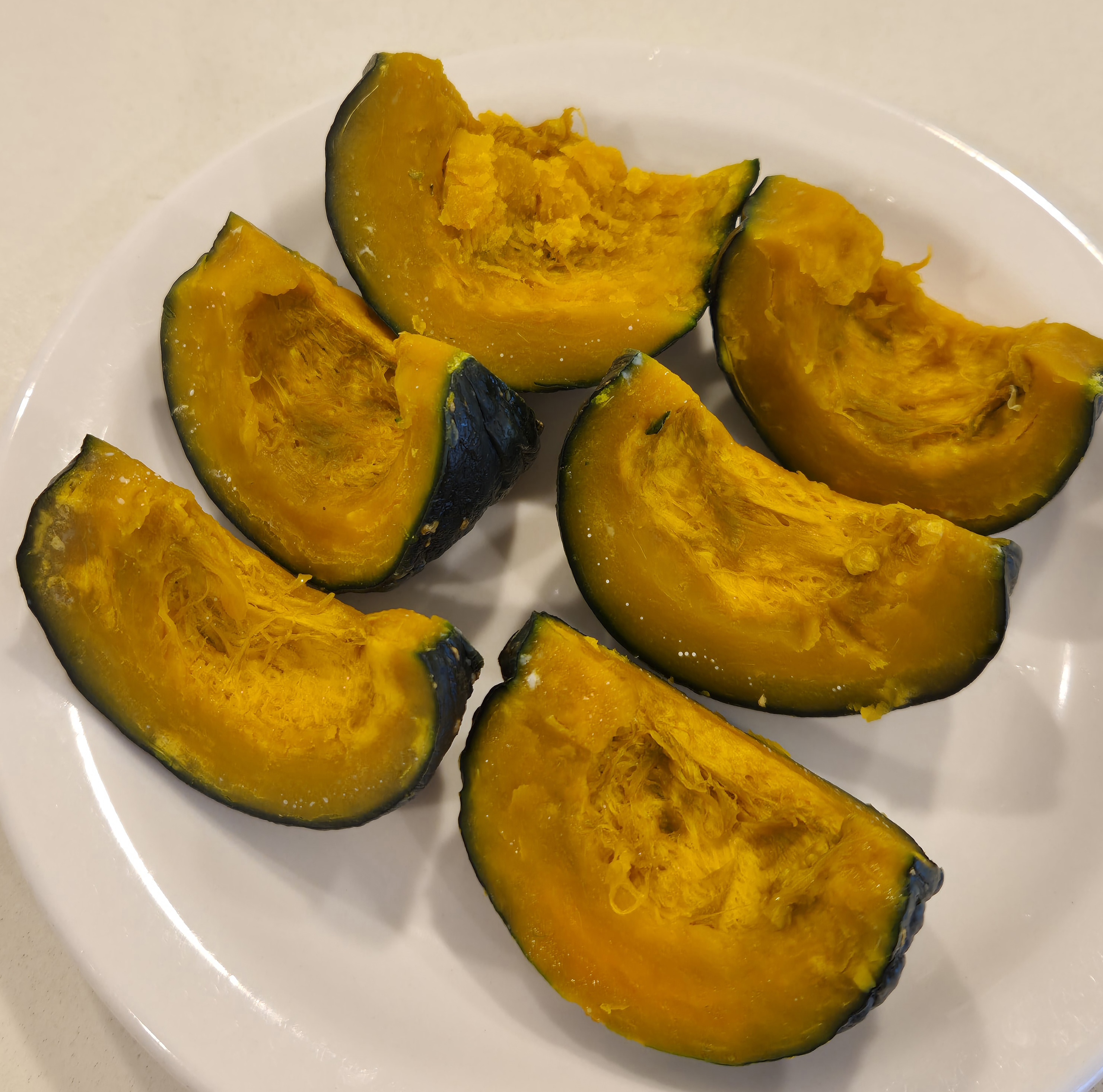 깨끗이 씻어 찜기에 넣고 조리 후 그대로 먹어도 좋은 밤호박 찜입니다. 찜기가 없다면 전자렌지에 넣고 5분 30초 정도 조리하셔도 됩니다. 심플하지만 밤호박 본연의 맛을 즐기기에 가장 좋은 요리이죠. 제주 미니 밤호박은 껍질이 얇아 껍질까지 모두 드셔도 부담이 없습니다.