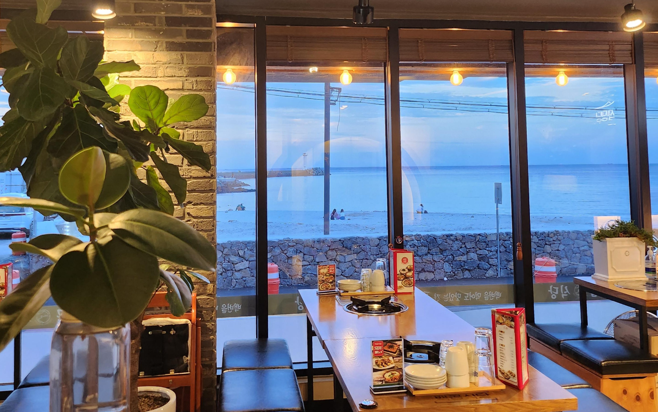 제주도민도 바다뷰 좋아하지만 관광객들을 위해 양보하고, 구석에 자리를 잡았습니다. 백곱식당의 위치가 약간 2층이라 세화바다가 한눈에 들어와서 알고보니 뷰 맛집이더라고요.