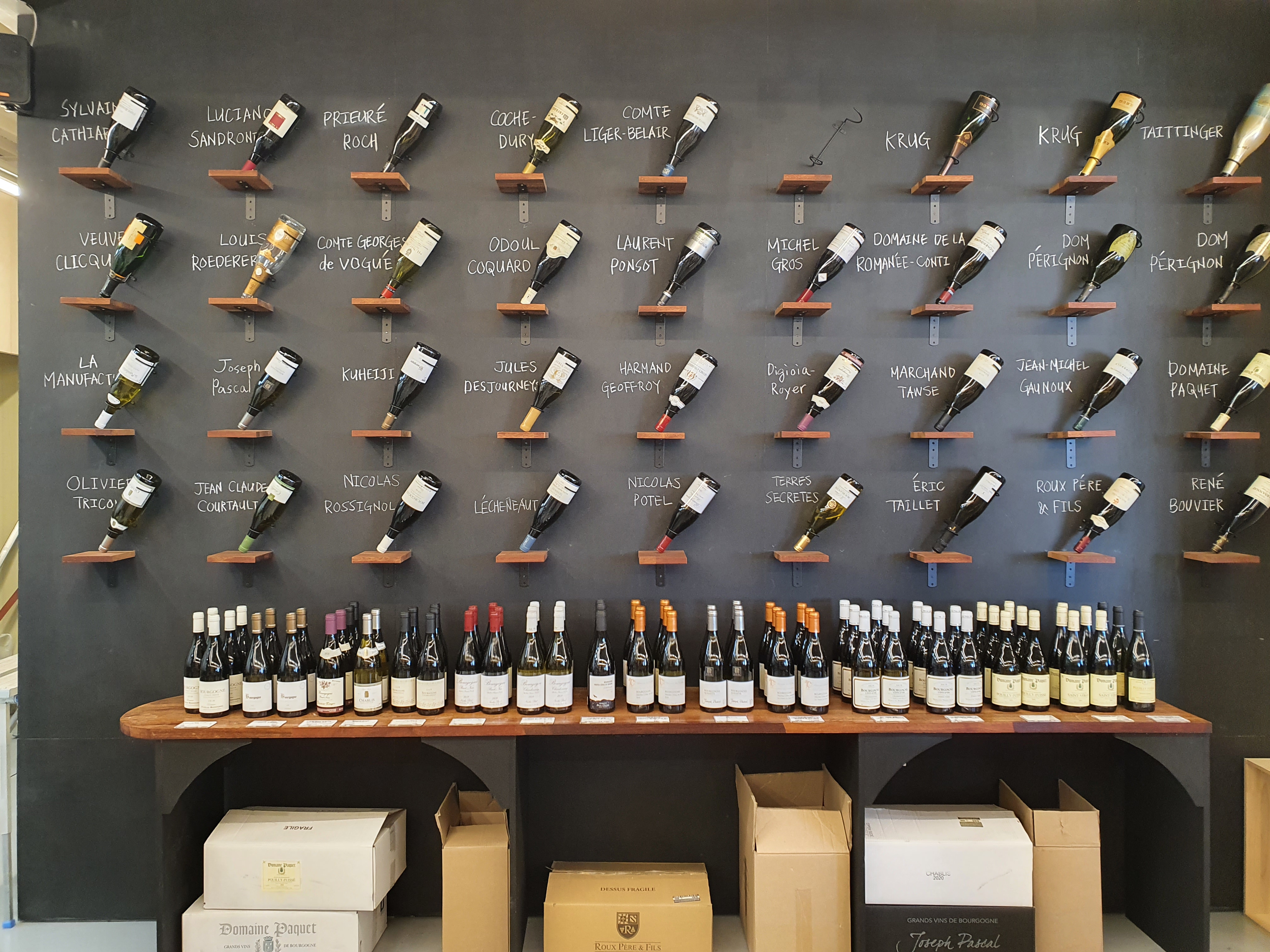 한쪽 면에는 샴페인과 부르고뉴 와인