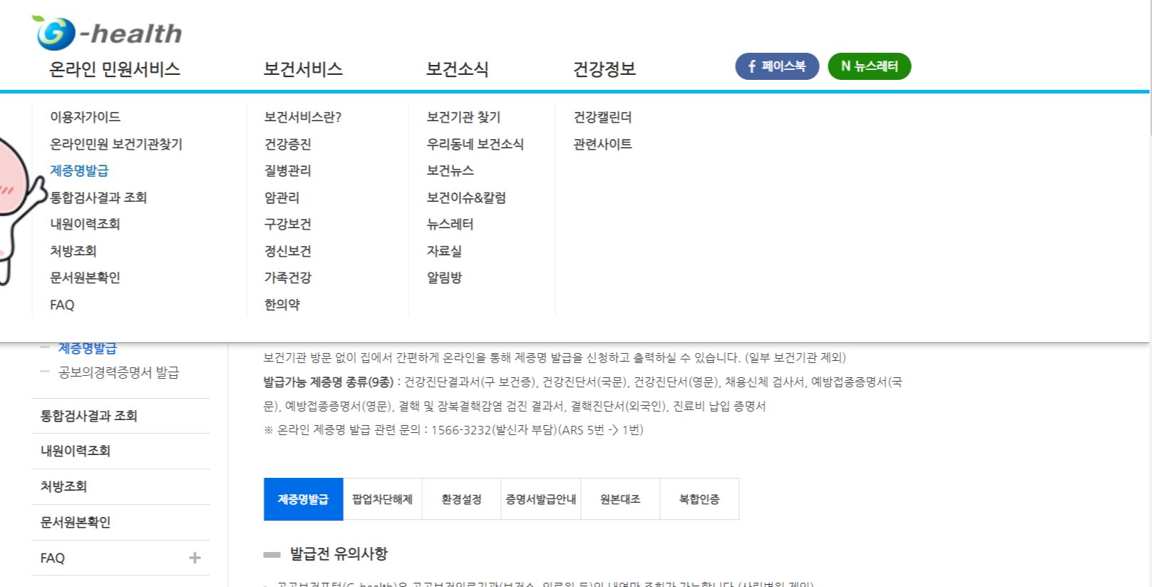 보건증 인터넷 발급 바로가기 → G-health 공공보건포털