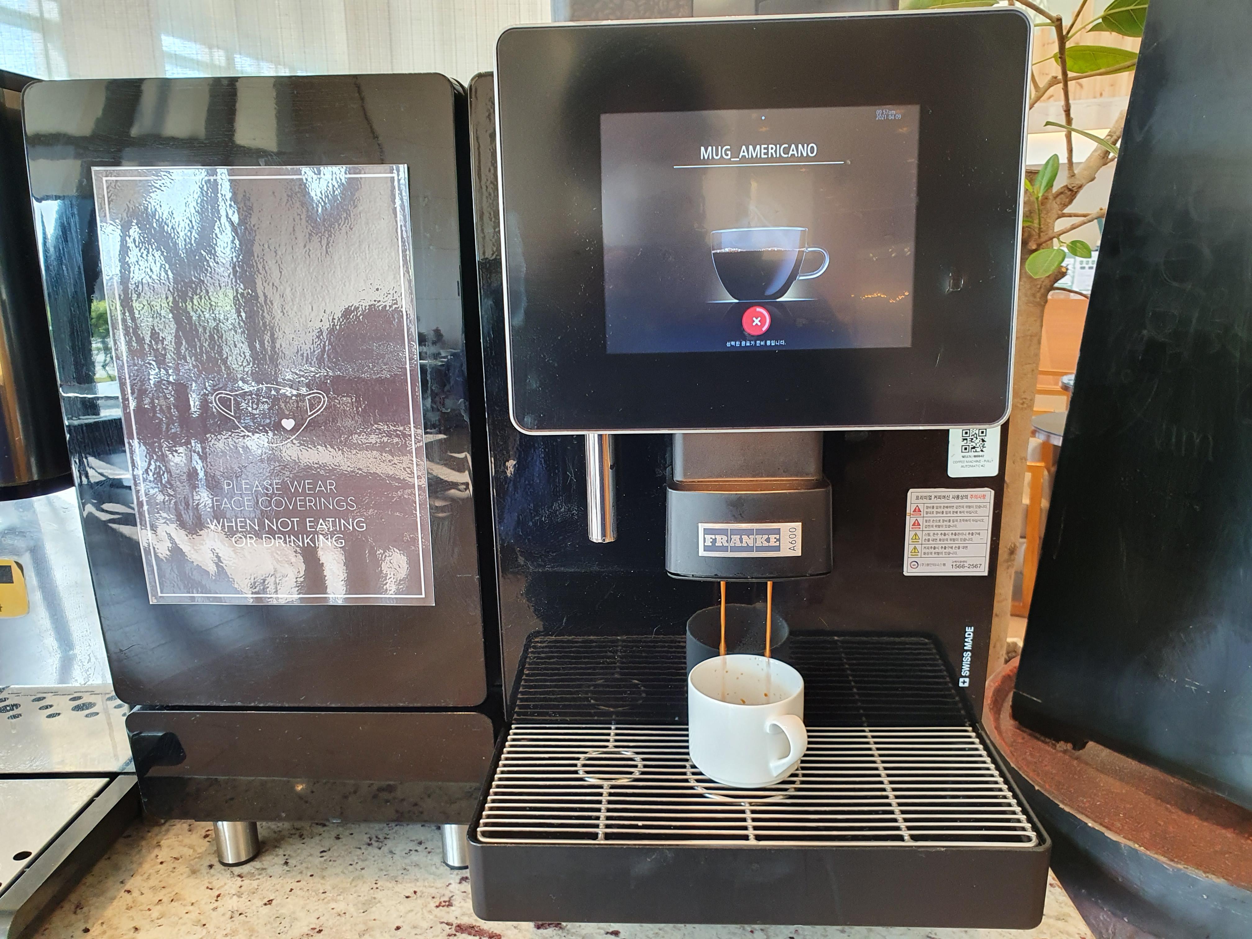 앞 사람이 화면을 머그 아메리카노에 맞춰놓고 간 덕분에