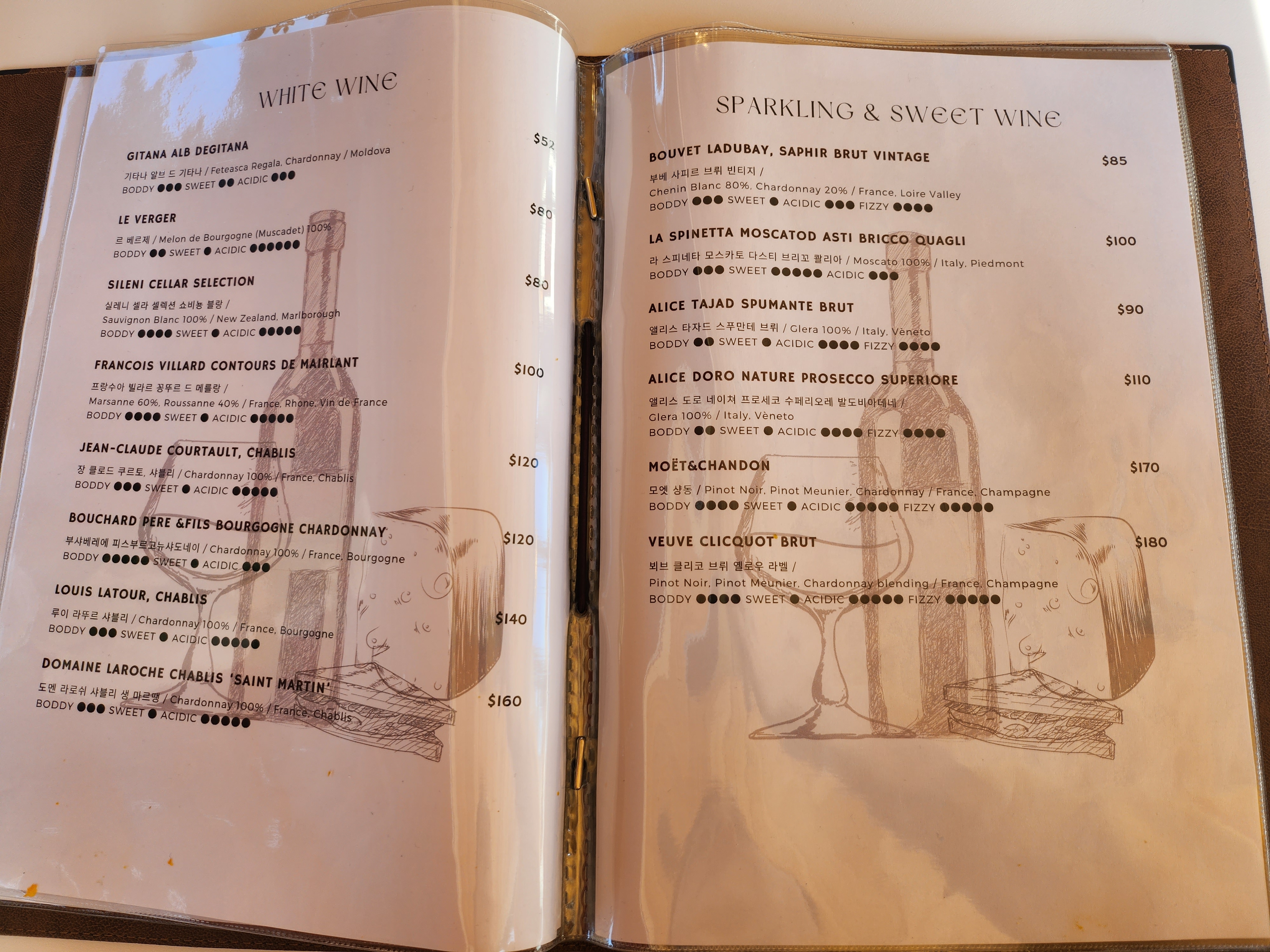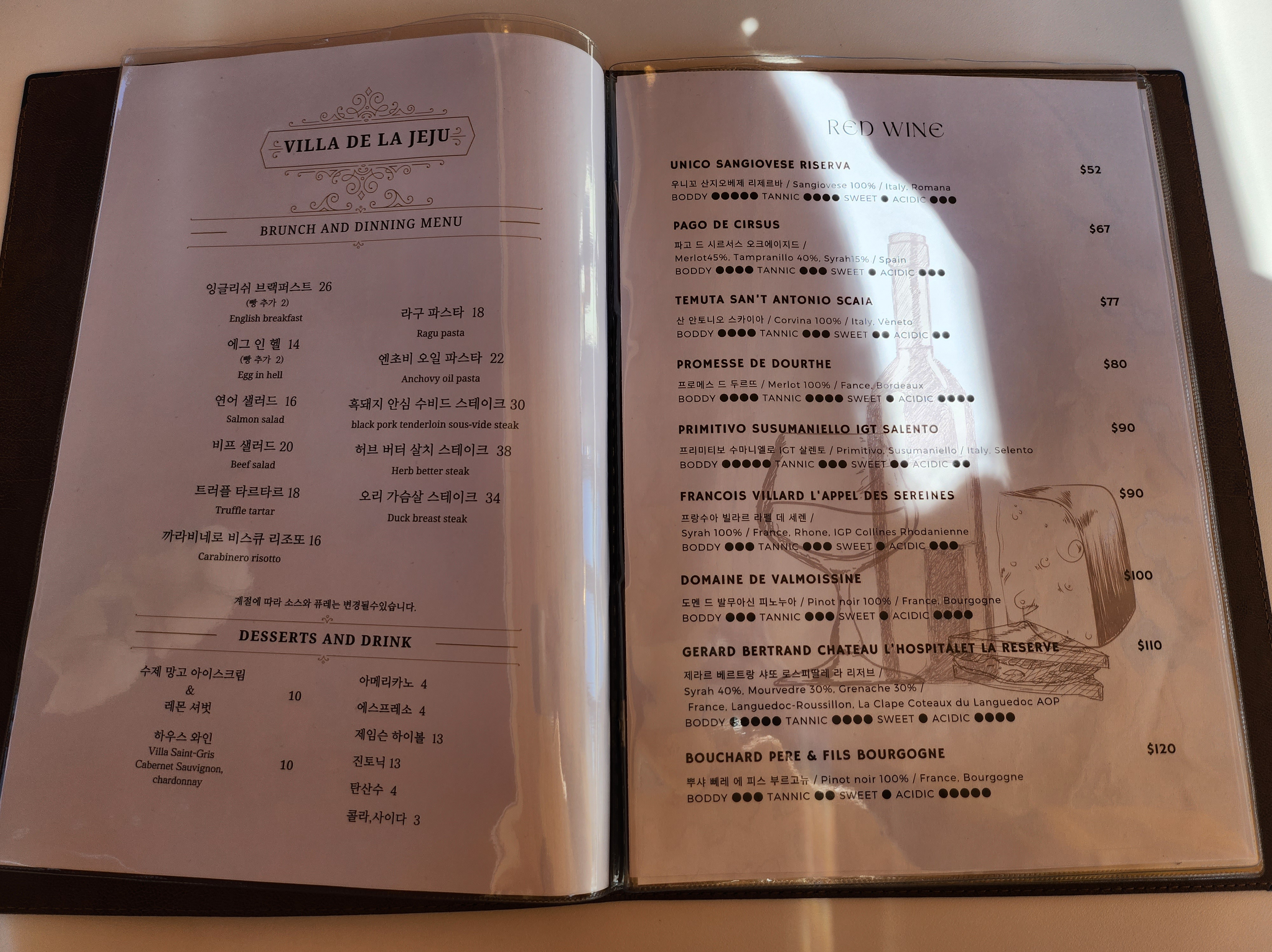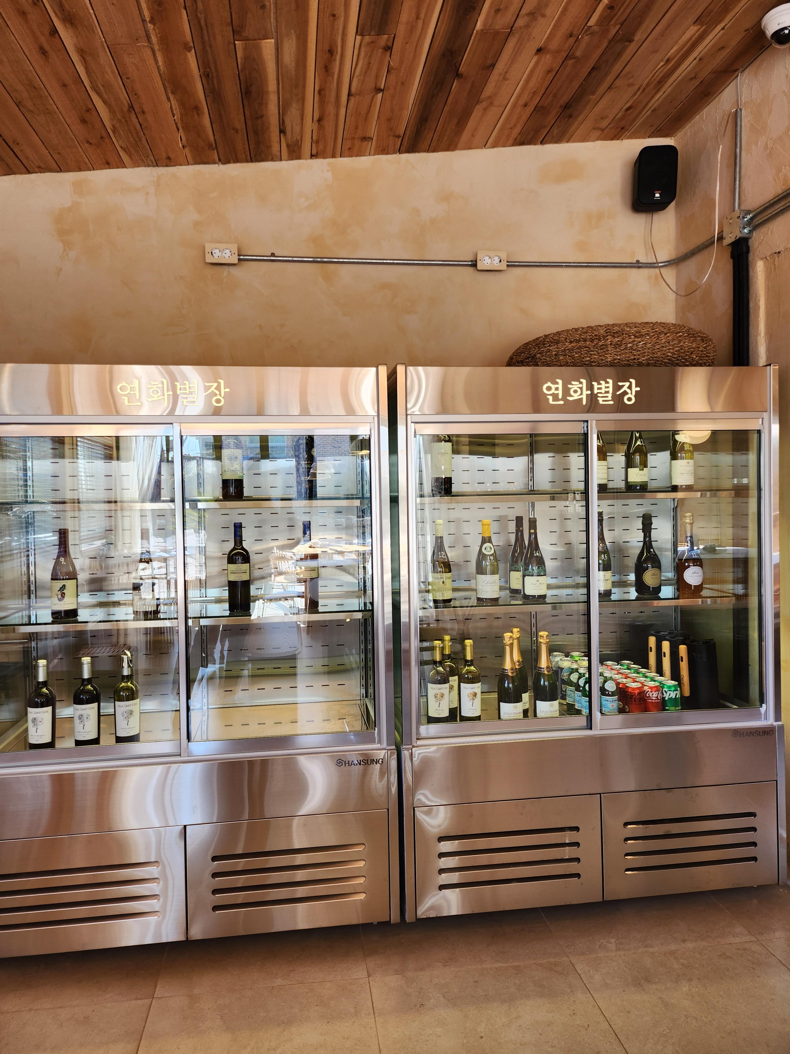 이 곳은 파인다이닝 코스요리와 브런치, 그리고 와인을 함께 즐길 수 있는 곳인데 그래서 와인 냉장고에 다양한 와인들이 대기하고 있었다. 밤에 와인 한잔 마시기에도 너무 좋을 것 같았지만, 낮이고 차를 가져왔으니 와인은 다음 기회에 마셔보기로 하고 구경만 했다.