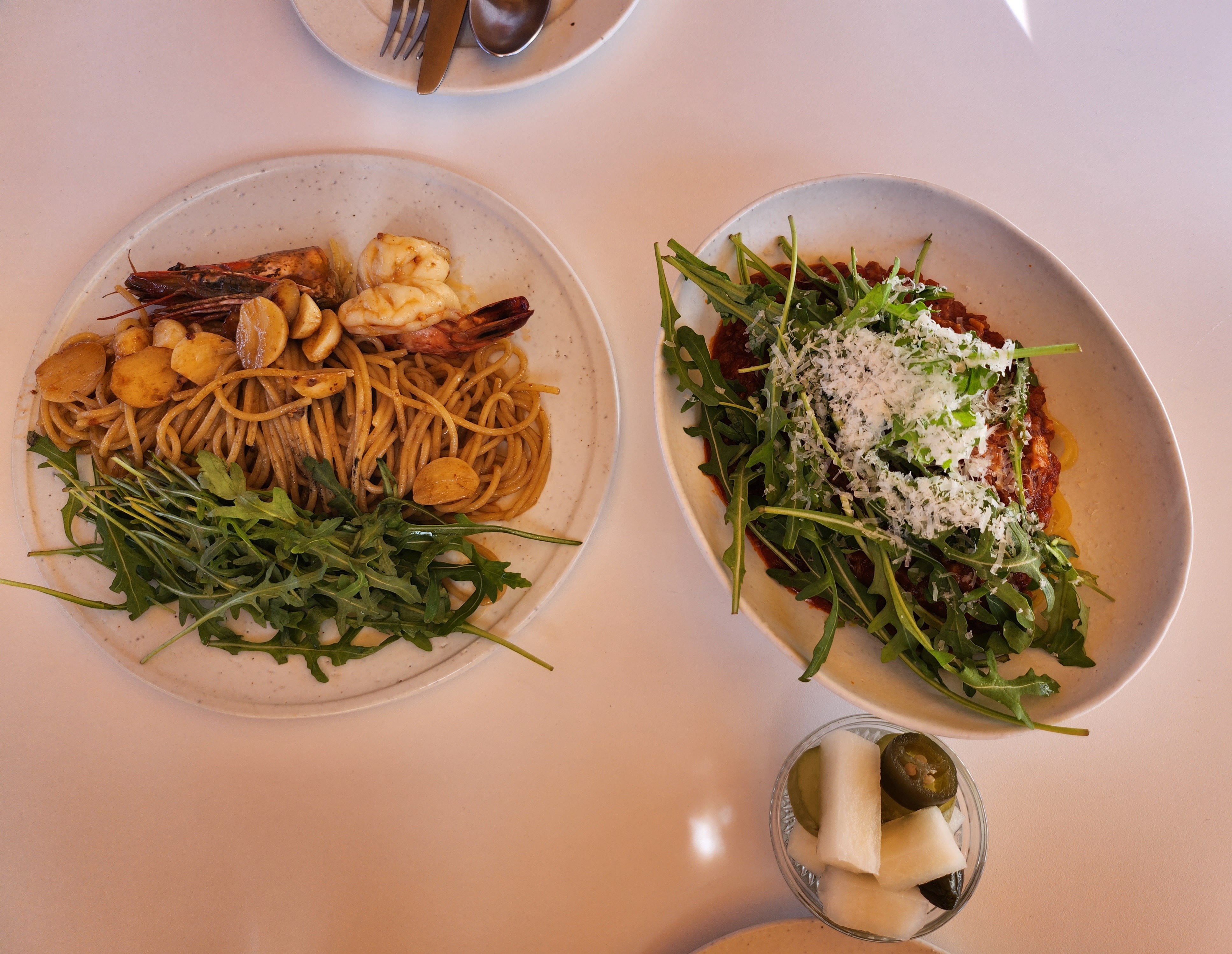 샐러드가 먼저 나올 줄 알았는데, 파스타 메뉴가 먼저 나왔다. 루꼴라가 듬뿍 올라간 엔초비 오일 파스타와 라구 파스타. 요즘 라구 파스타를 자주 먹는데 빌라드라 제주의 라구 소스는 어떤 맛일지 기대가 되었다.