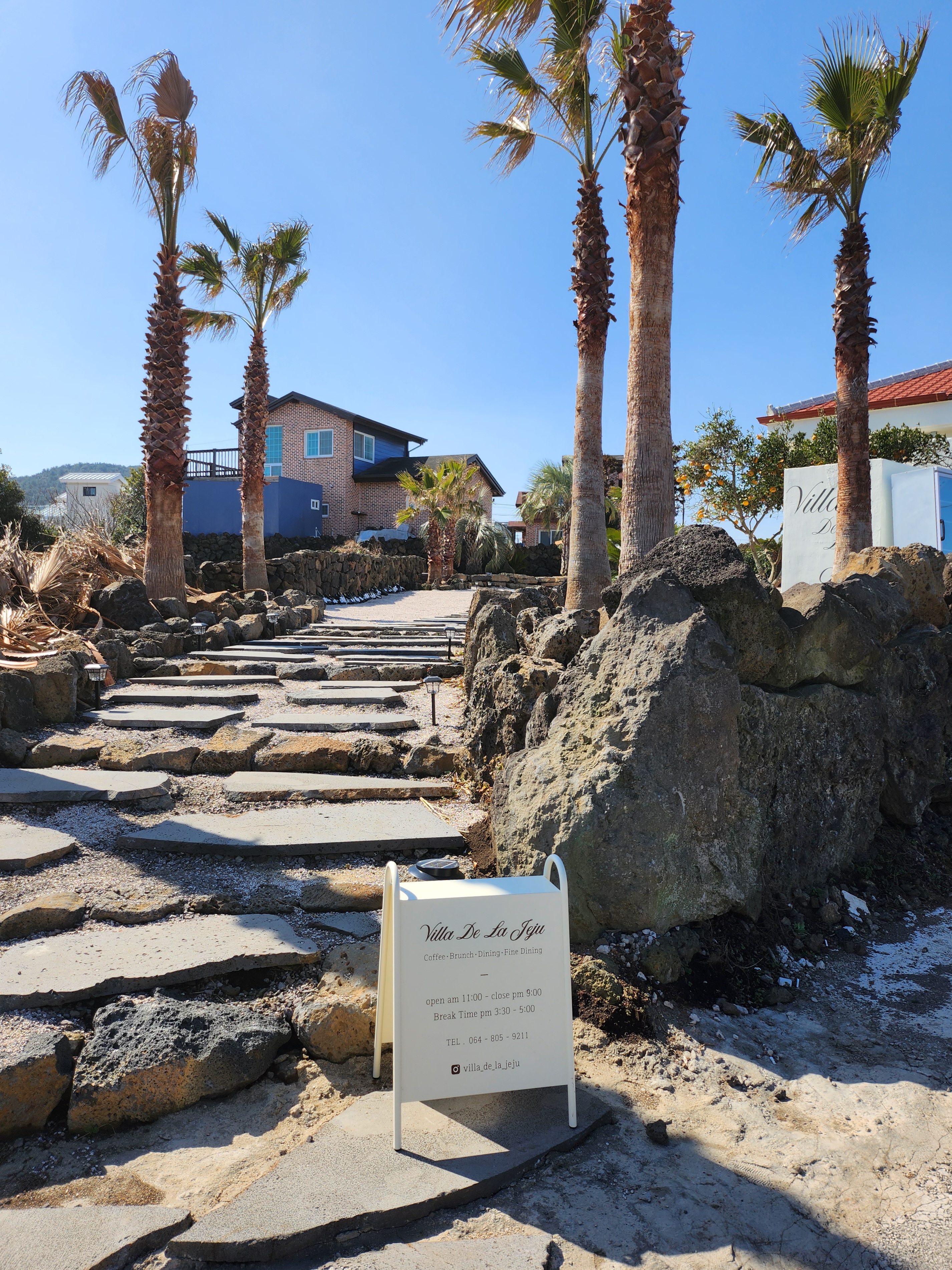 제주도 서귀포시 성산읍에 신상 브런치 가게가 생겼다고 해서 방문했다. 성산을 꽤 자주 다니지만 처음 가보는 길로 안내해주는 네비게이션을 따라서 도착한 곳에는 야자나무와 잔디밭이 펼쳐진 하얀 건물이 자리잡고 있었다.