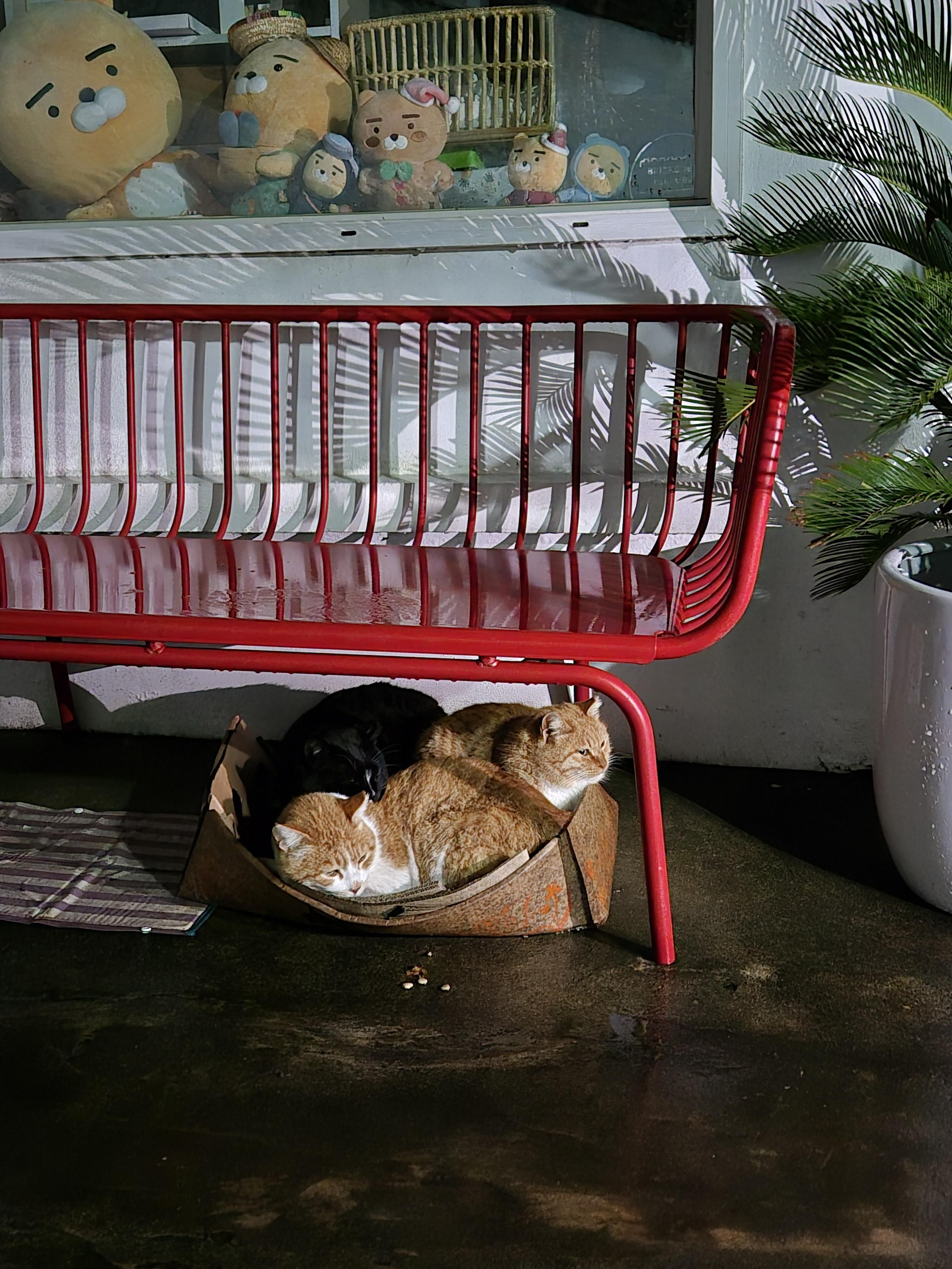 제주도는 일주일넘게 마치 고사리 장마처럼 비가 내리고 있다. 이렇게까지 길고 지겹게 비가 내리다니.. 게다가 어제부터는 기온도 떨어져서 마당 고양이들이 괜찮을지 걱정이되서, 카페 마감 후 안으로 초대를 했다.