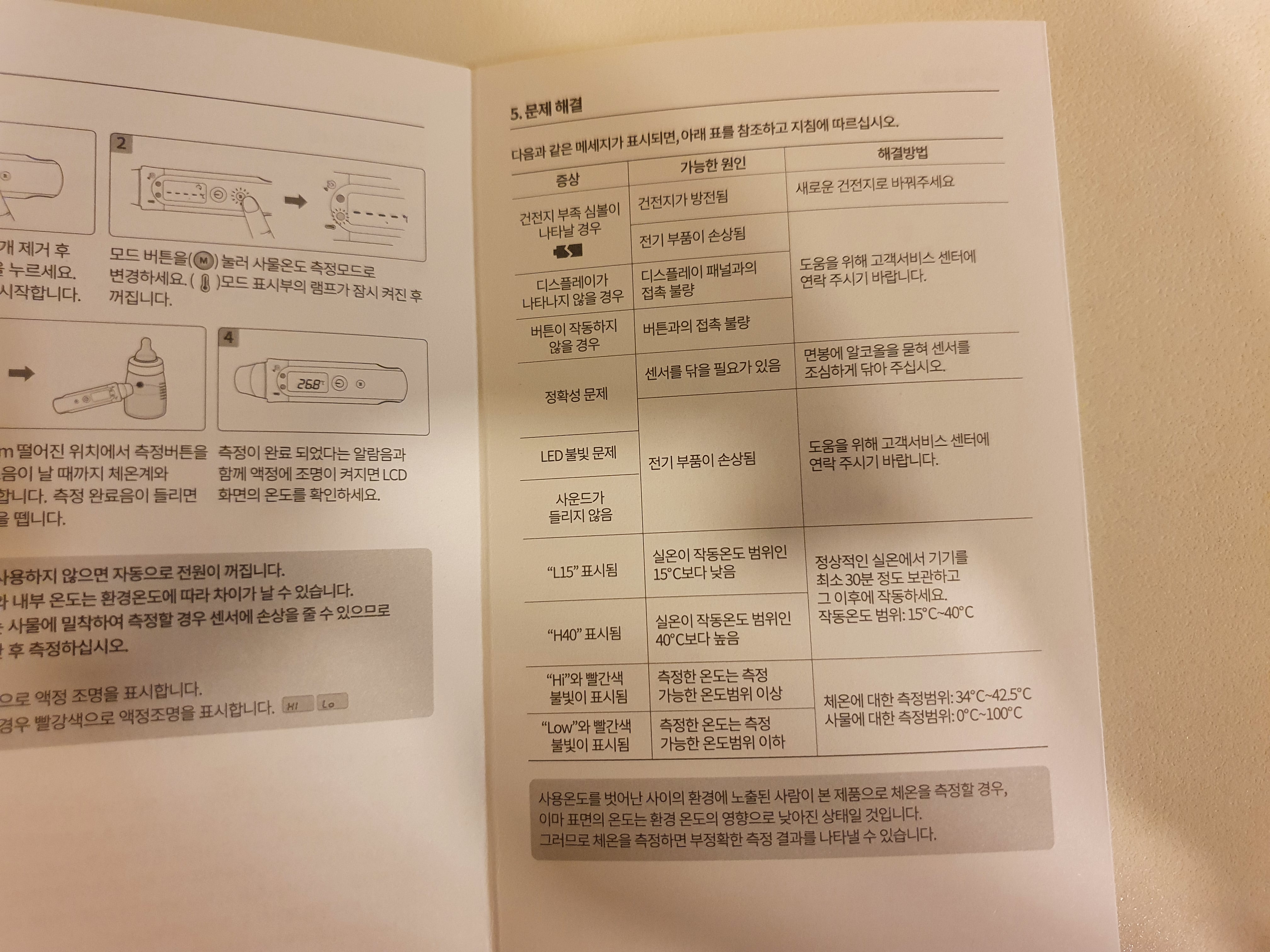실온에서 조금 두었다가 켜니 제대로 측정 된다