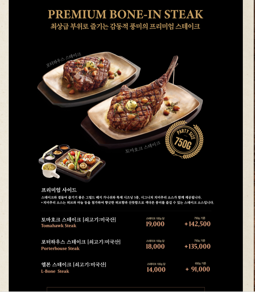 연말을 맞이해서 매장에서 자체적으로하는 행사가 있었는데, 11월 현대카드 M포인트 70% 사용 이벤트가 있어서 토마호크 스테이크 750g과 샐러드바를 추가 했어요. 중복 적용이 되지 않았지만 M포인트가 많은 친구와 함께가서 사용할 수 있었죠. 전에는 스테이크를 주문하면 샐러드바는 무료였는데, 요즘에는 스테이크를 주문해도 샐러드바 이용요금을 따로 지불해야하더라고요. 할인큰폰 내용은 글 아래에 따로 추가할게요.