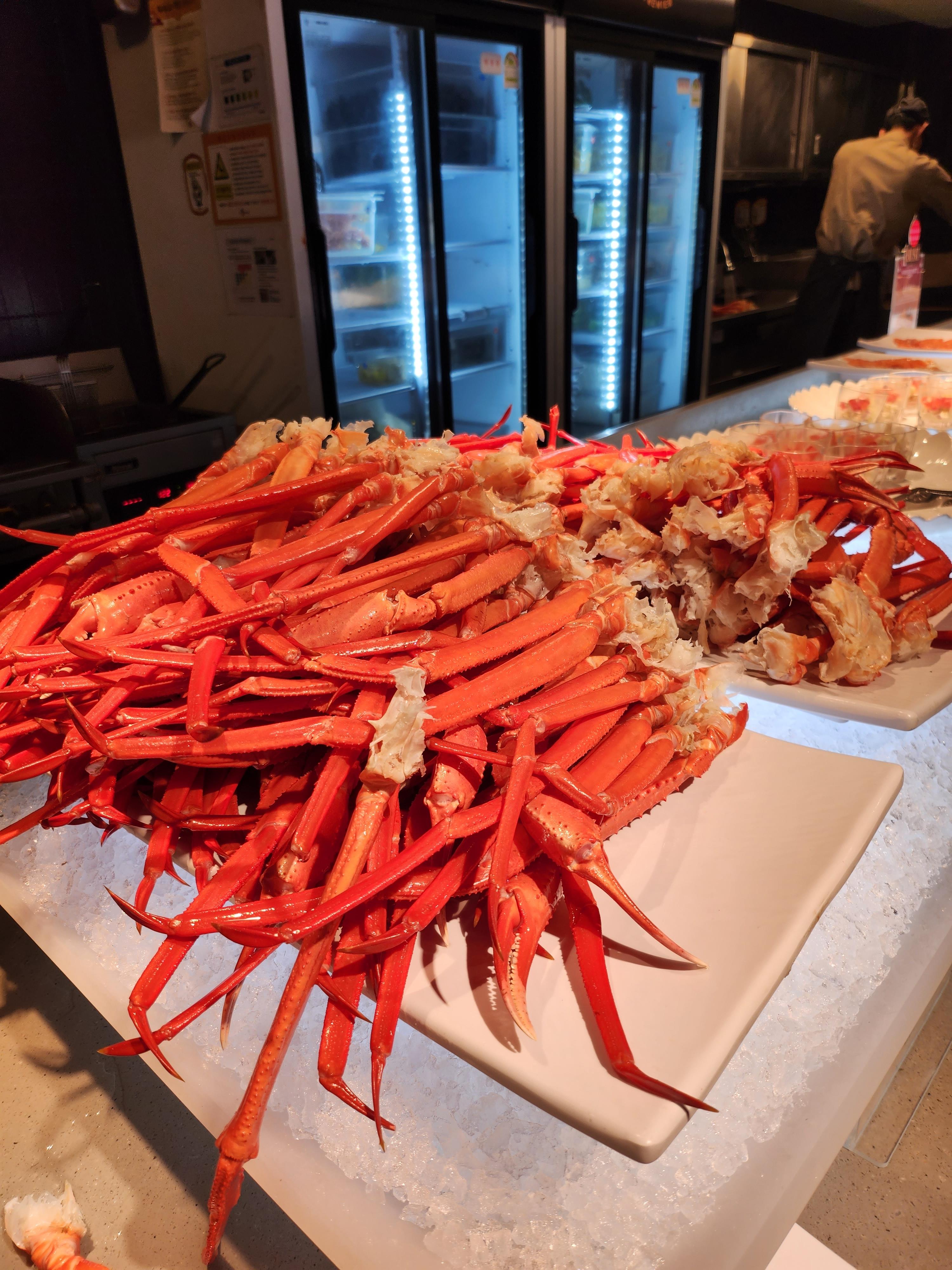 하지만 역시 가장 인기가 많은건 해산물 코너였어요. 해산물 찜과 대게, 게찜등 갑각류 좋아하는 사람들은 이것만 먹어도 행복할 것 같더라고요.
