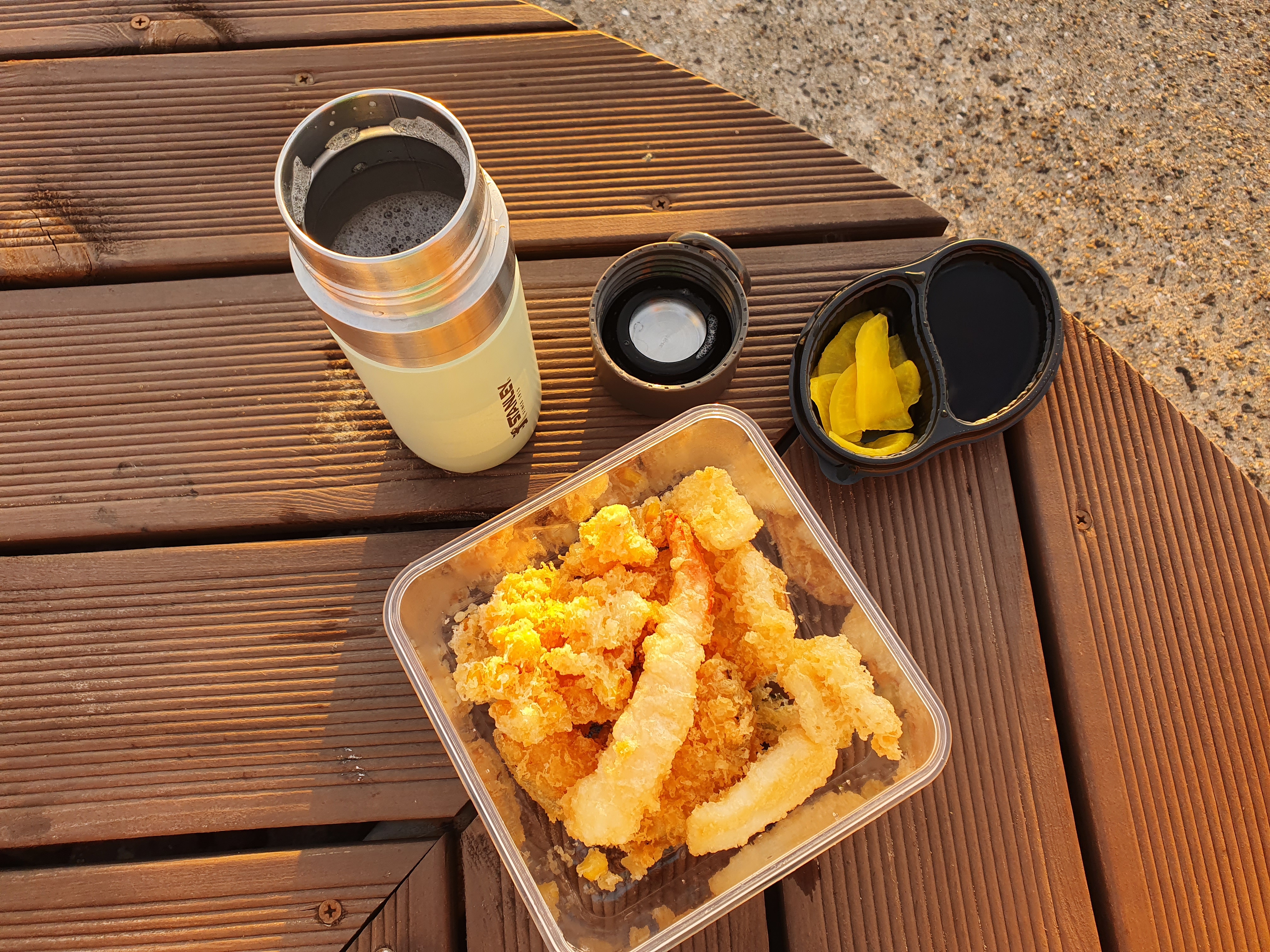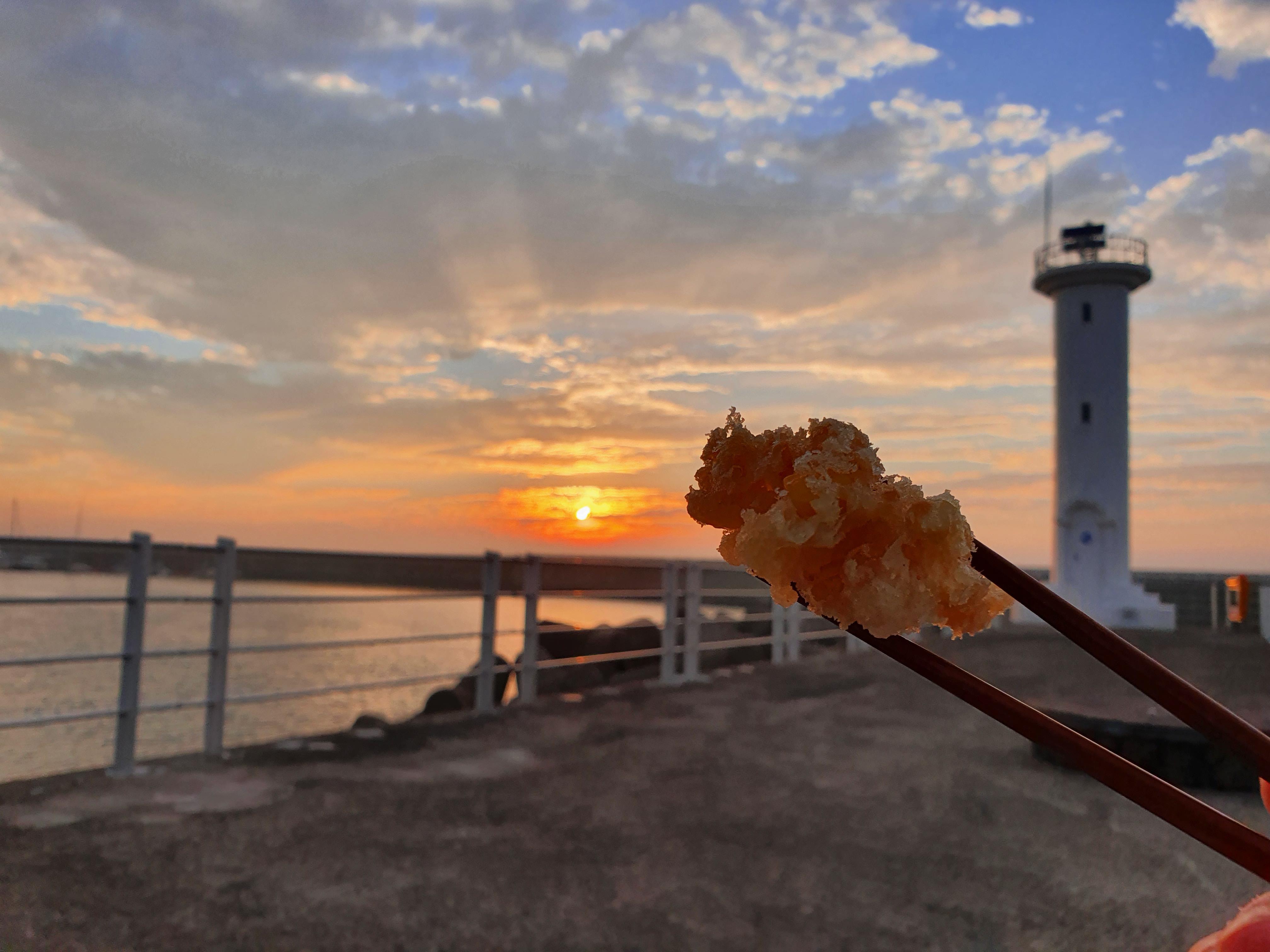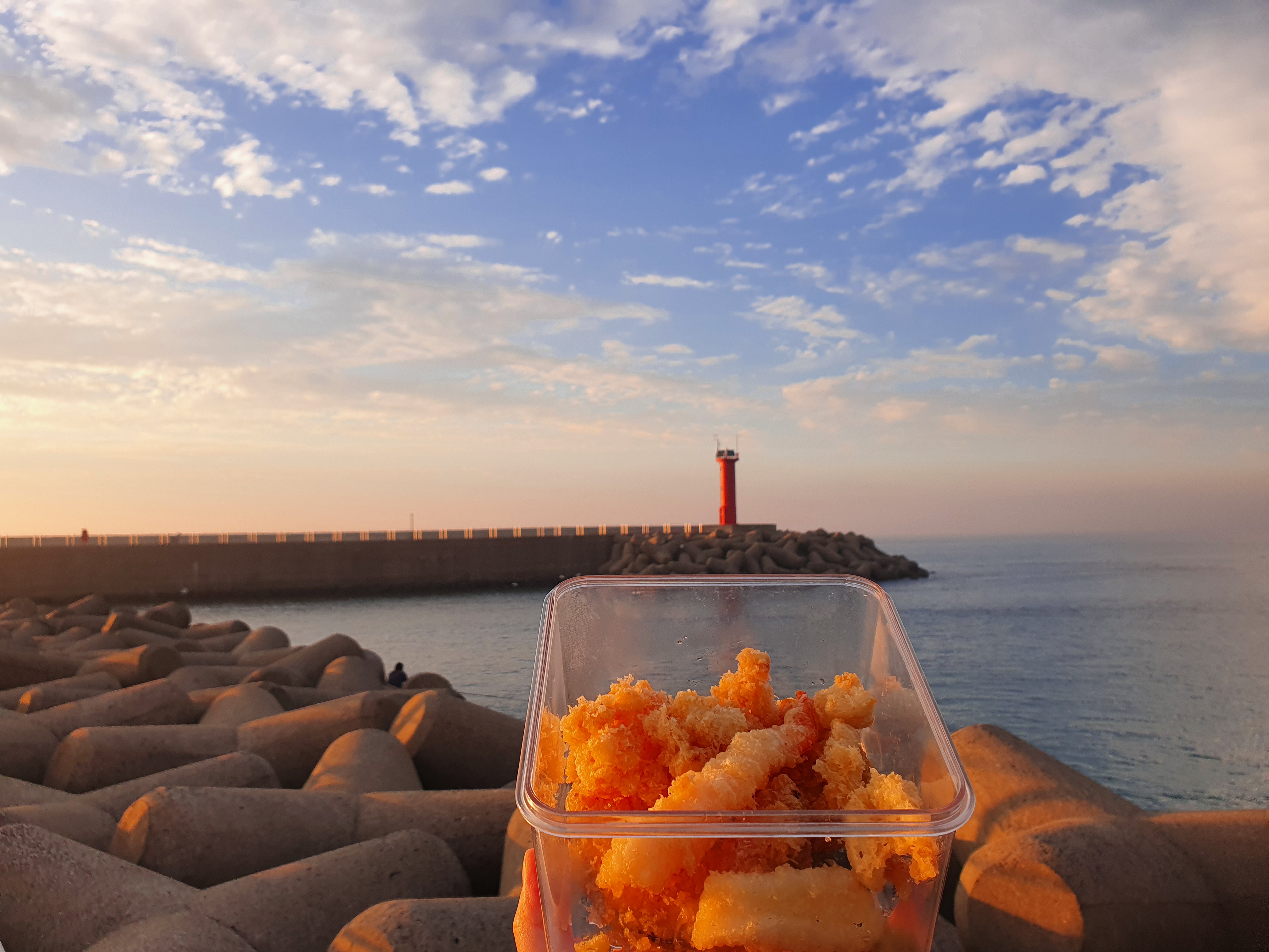 마침 노을을 보면서 튀김을 먹을 수 있는
