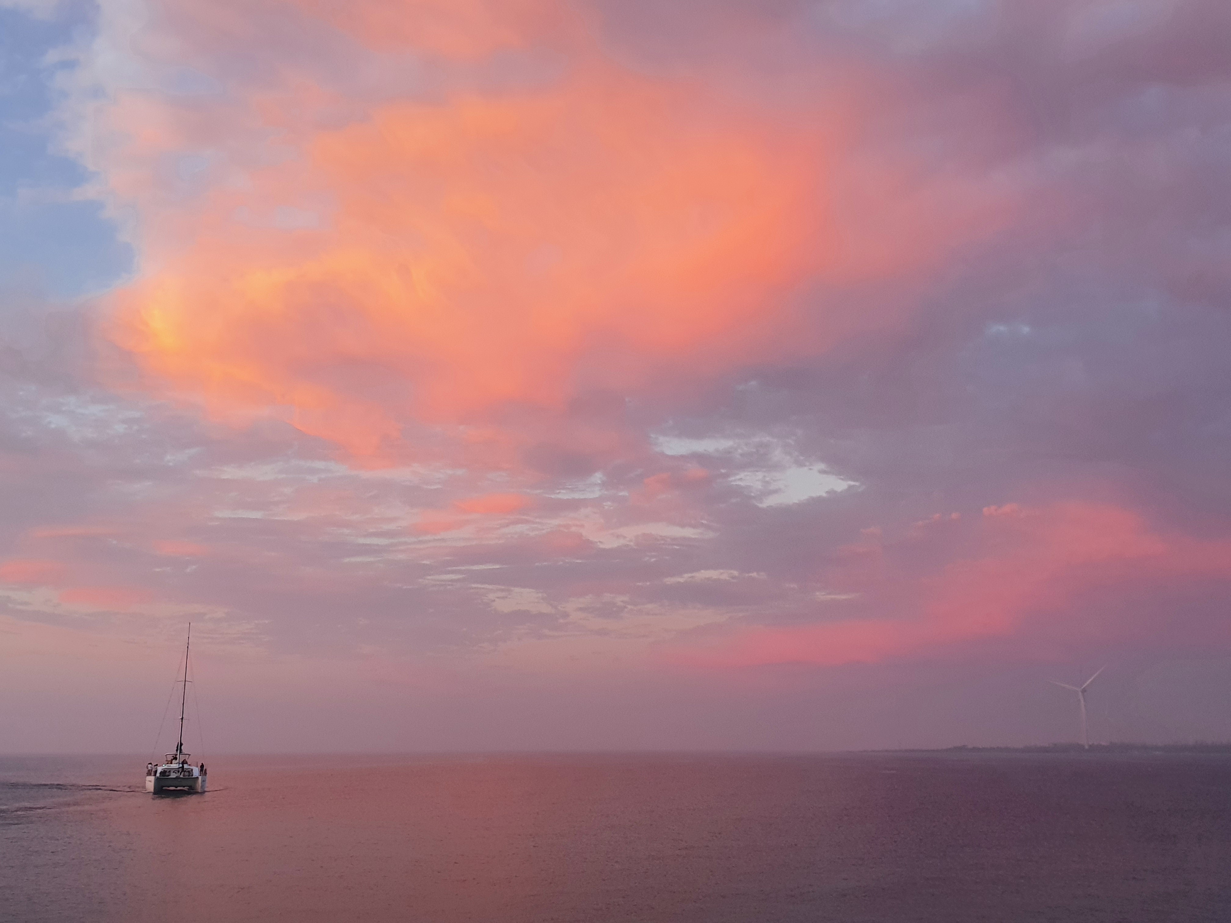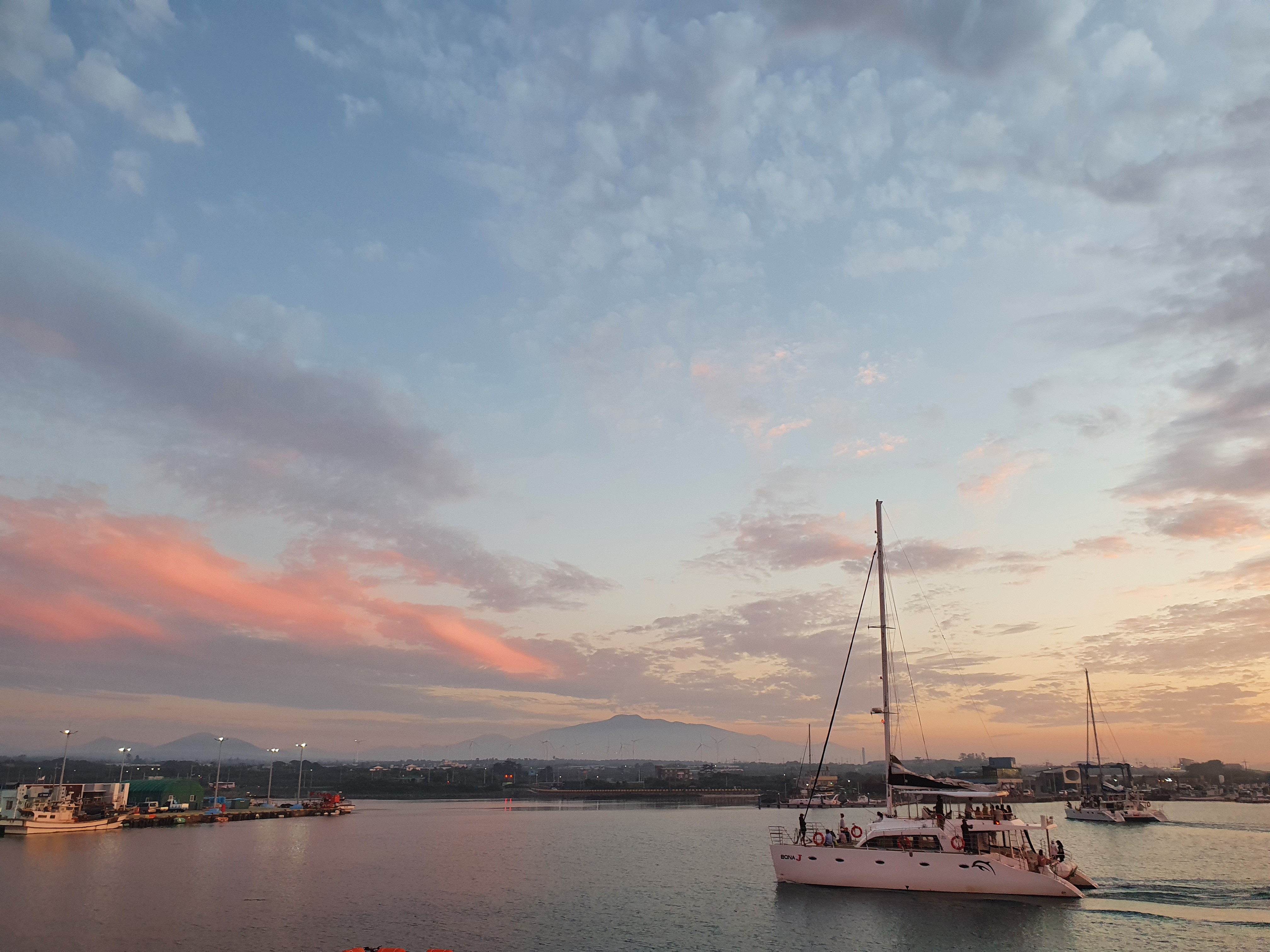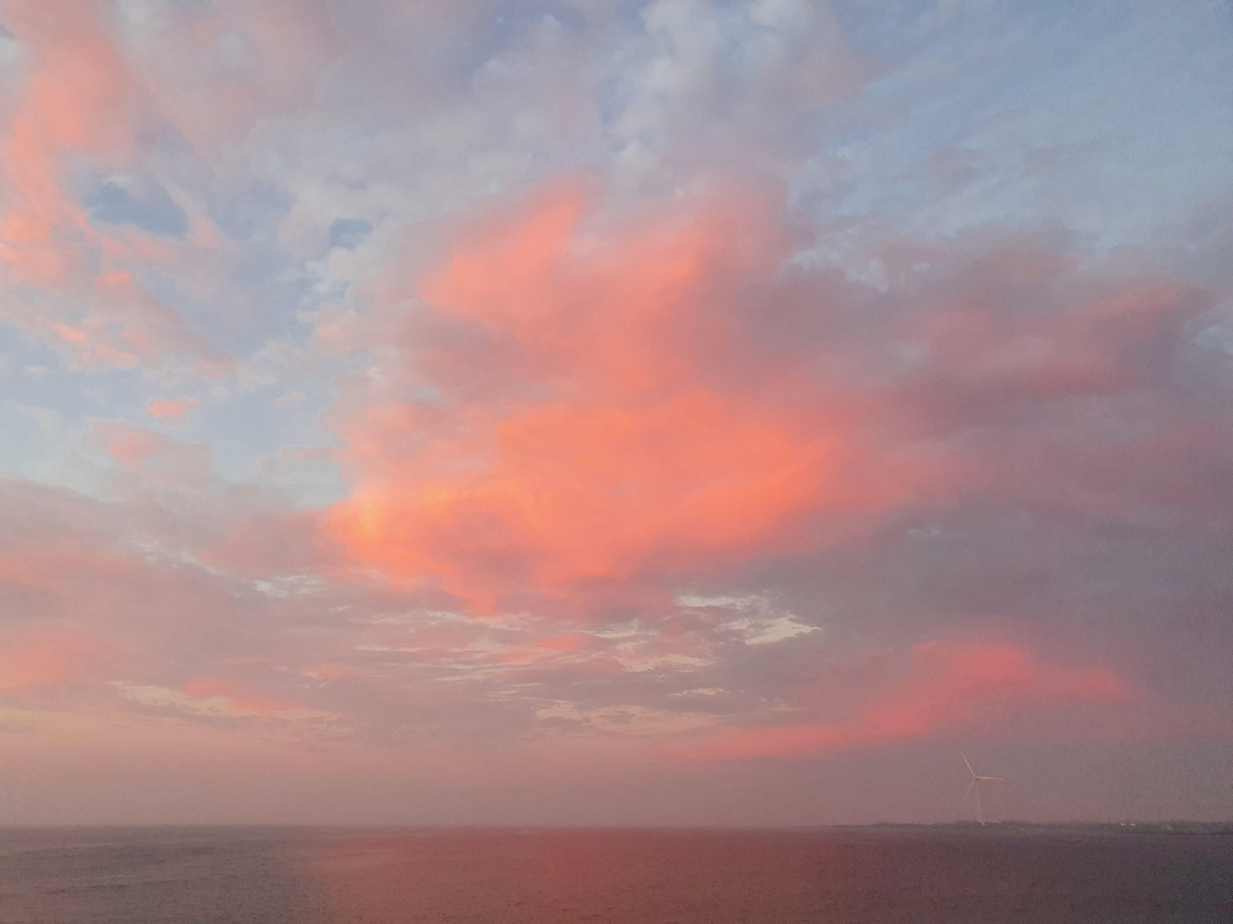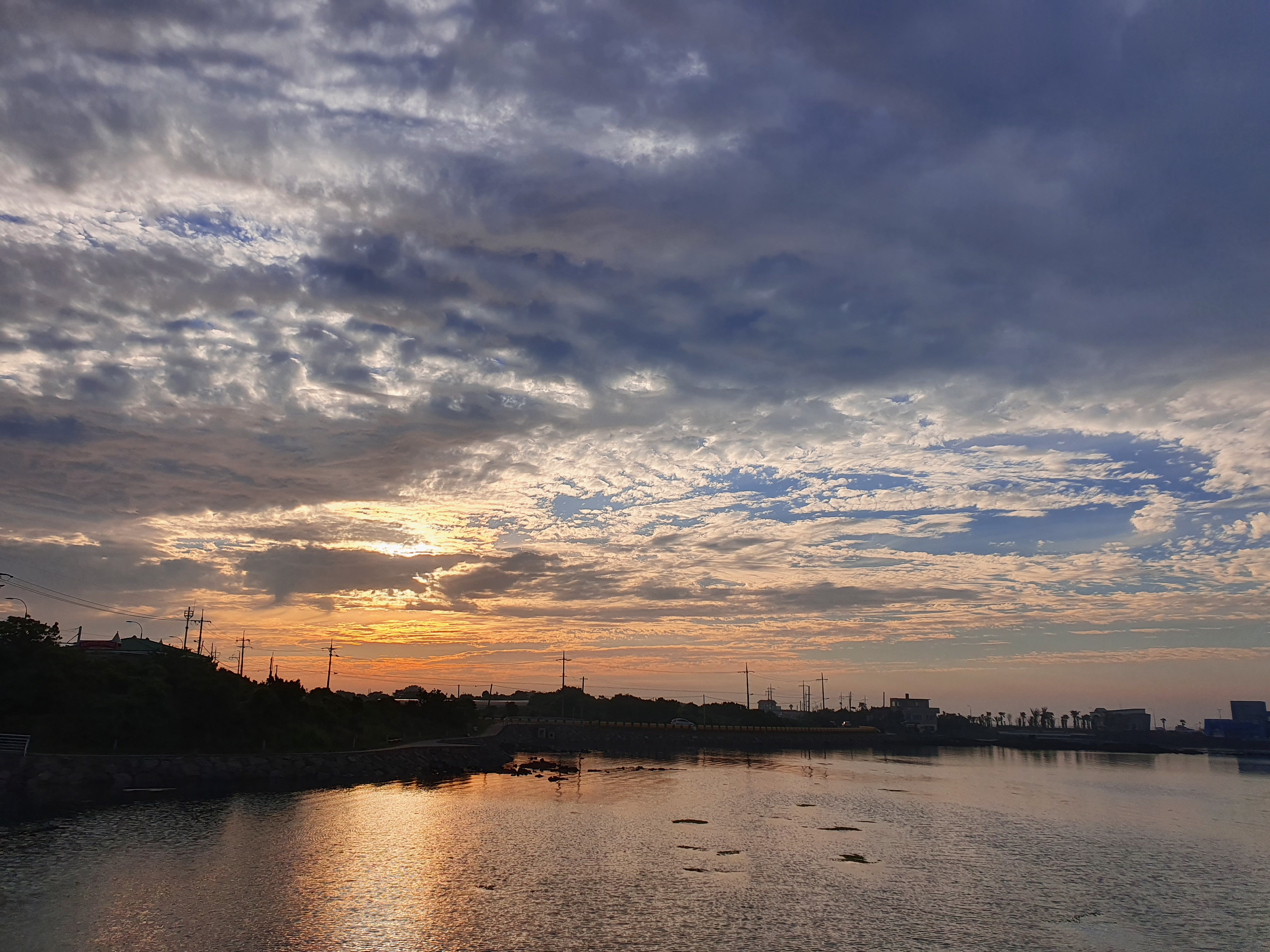 핑크빛 노을과 아직 파란 하늘이 예쁜 시간