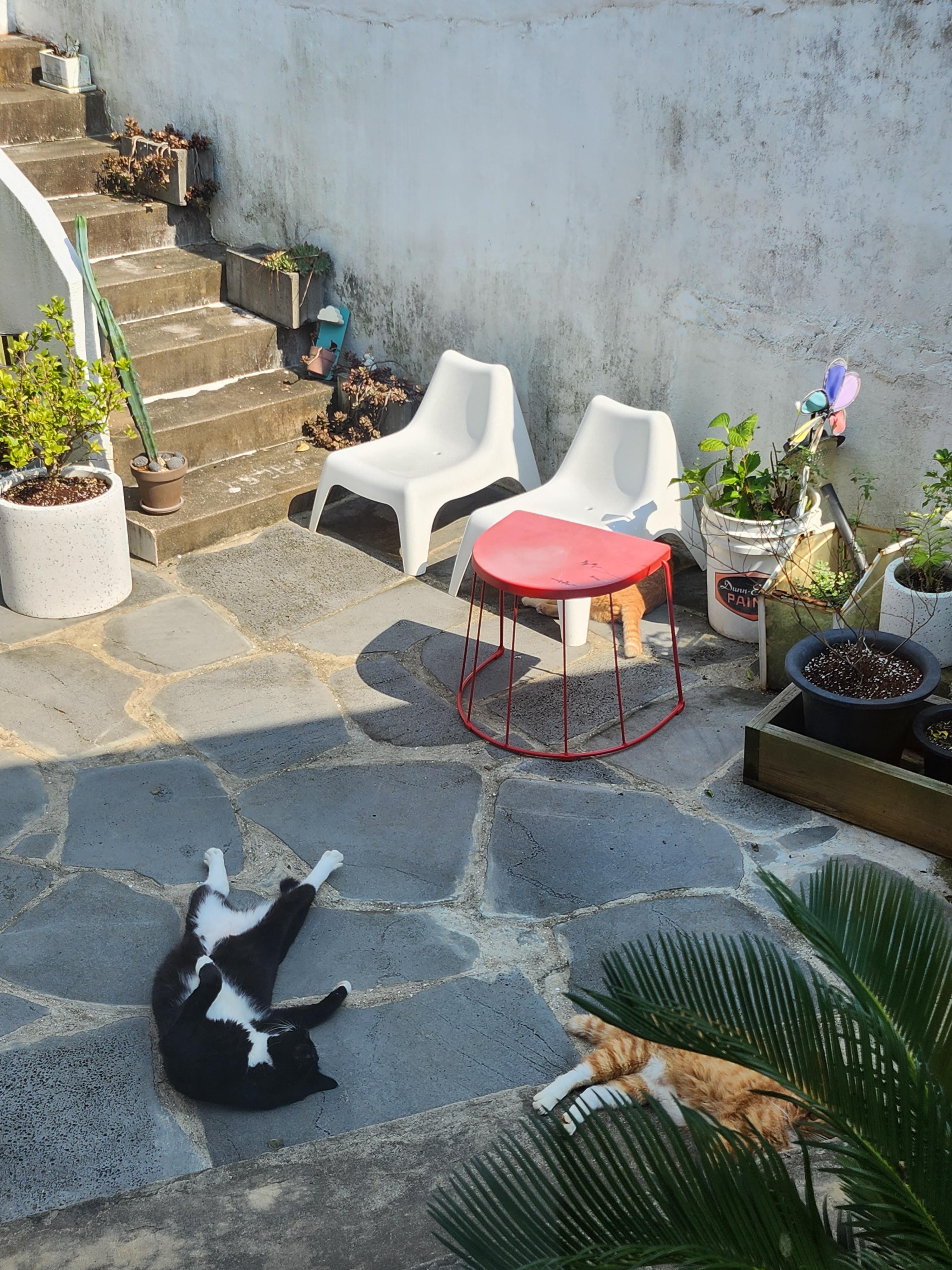 오늘은 카페에 유난히 고양이를 좋아하고 놀아주는 분들이 많았다. 손님들이 흔들어주는 장난감에 신나게 놀고 널부러진 고양이들 어제 중성화 수술을 마치고 돌아와 도망치듯 뛰쳐나간 안나