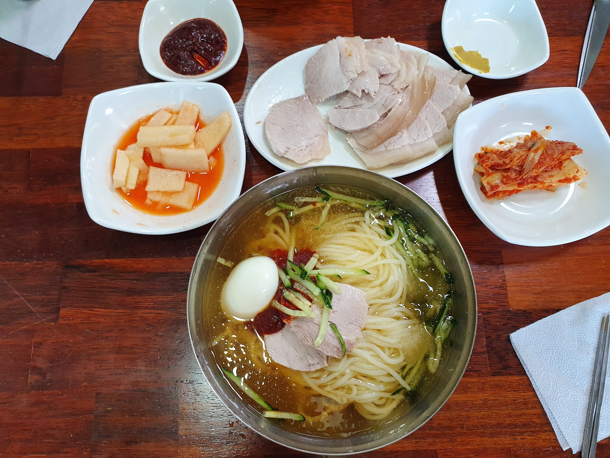 함께 나오는 무김치, 그리고 겨자를 살짝 올려서