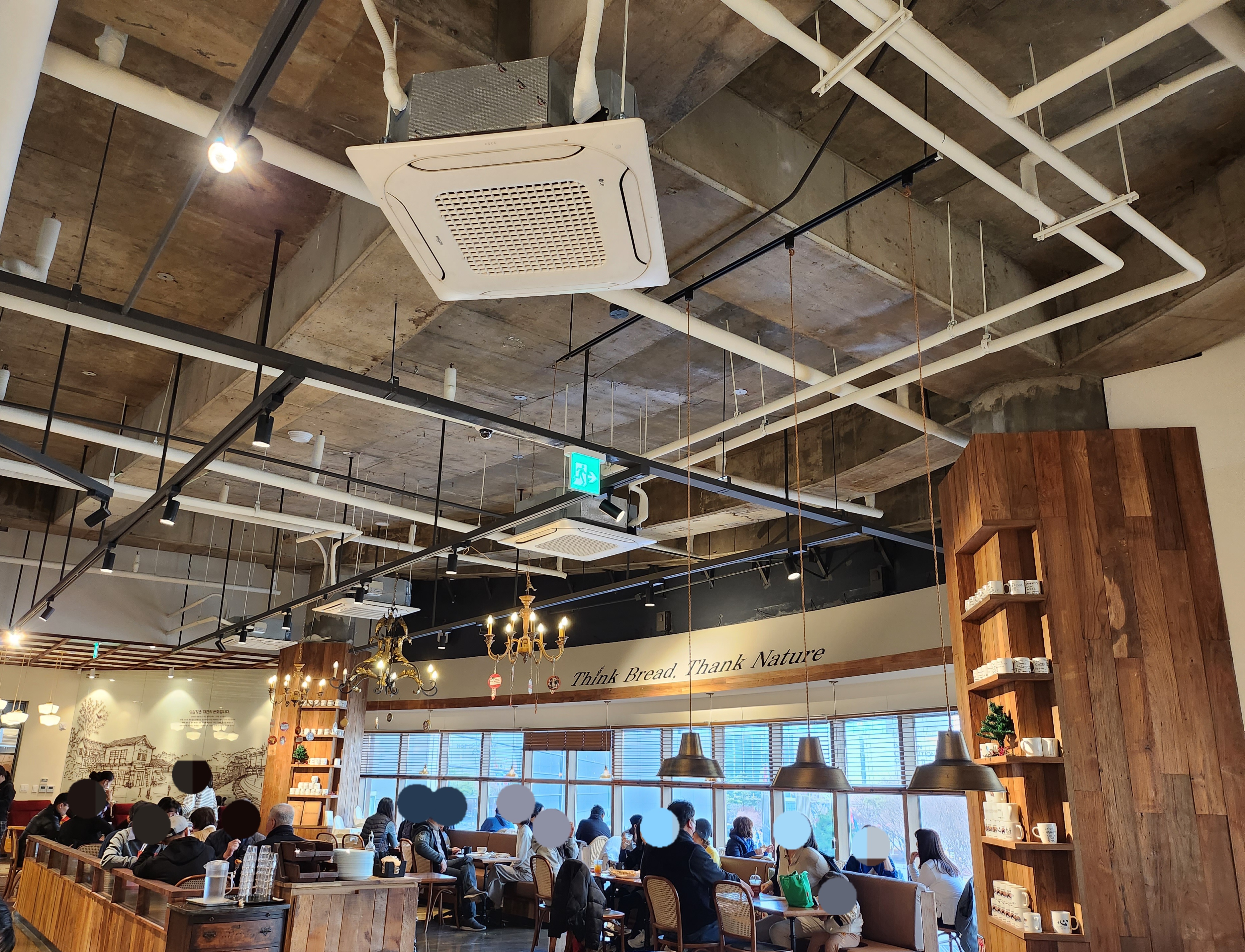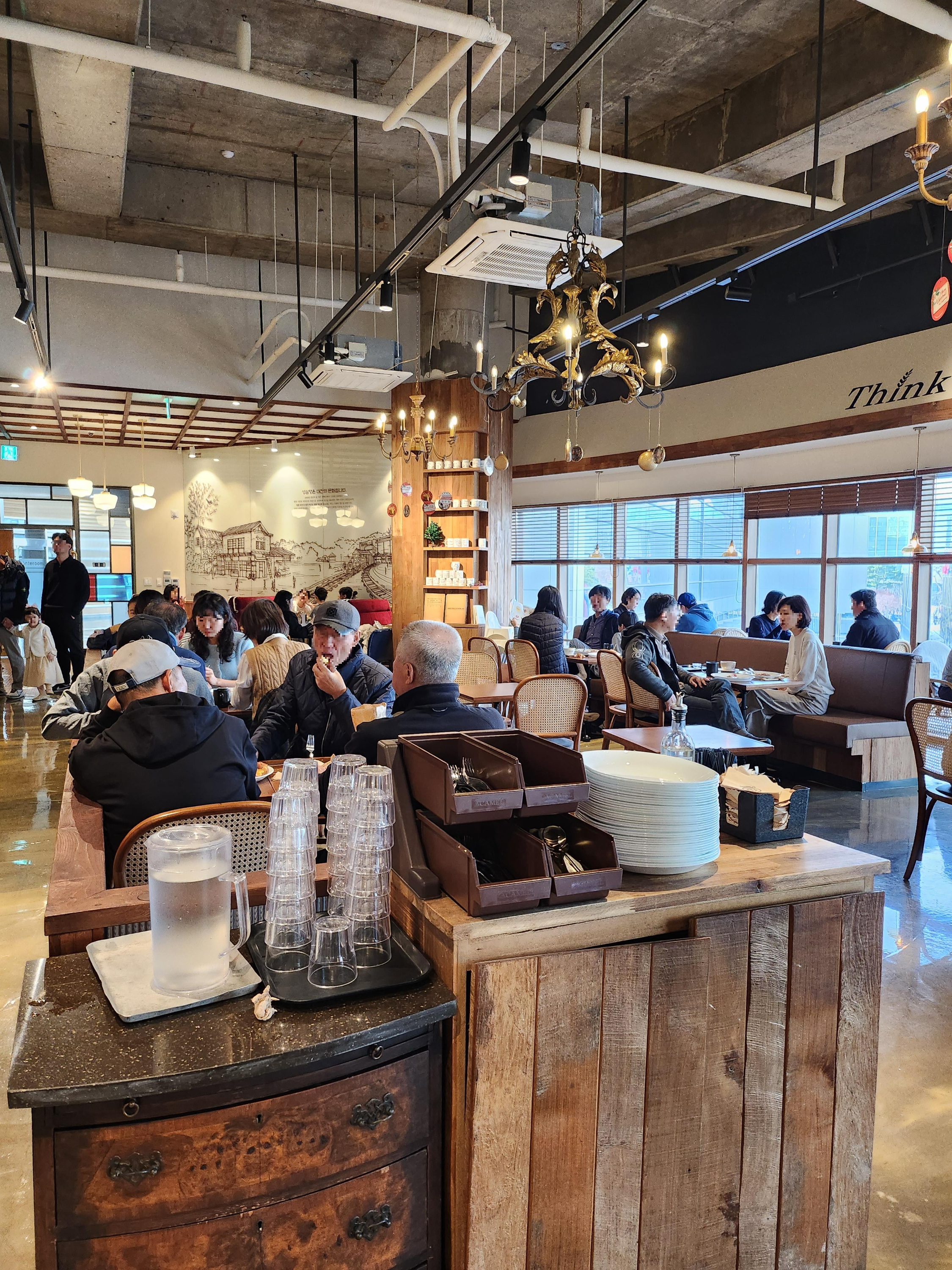 내부에 오븐과 접시, 식기들도 셀프로 이용할 수 있어서, 성심당에서 구매한 빵도 이곳에서 먹을 수 있다. 매장이 무척 넓어서 주말에 방문했음에도 자리가 없어서 기다려야할 정도는 아니었다. 모르는 사람은 아마 실수로라도 들어올 수 없는 위치에 있어서 1층 매장보다 한산하게 즐길 수 있는 것 같다. 근처에 트로트가수 공연이 있는지 팬으로 보이는 분들도 많았는데, 공연보기 전에 빵도 사고 앉아서 식사도 든든히 할 수 있으니 성심당이 정말 스마트하게 자리를 잡았구나 싶었다.