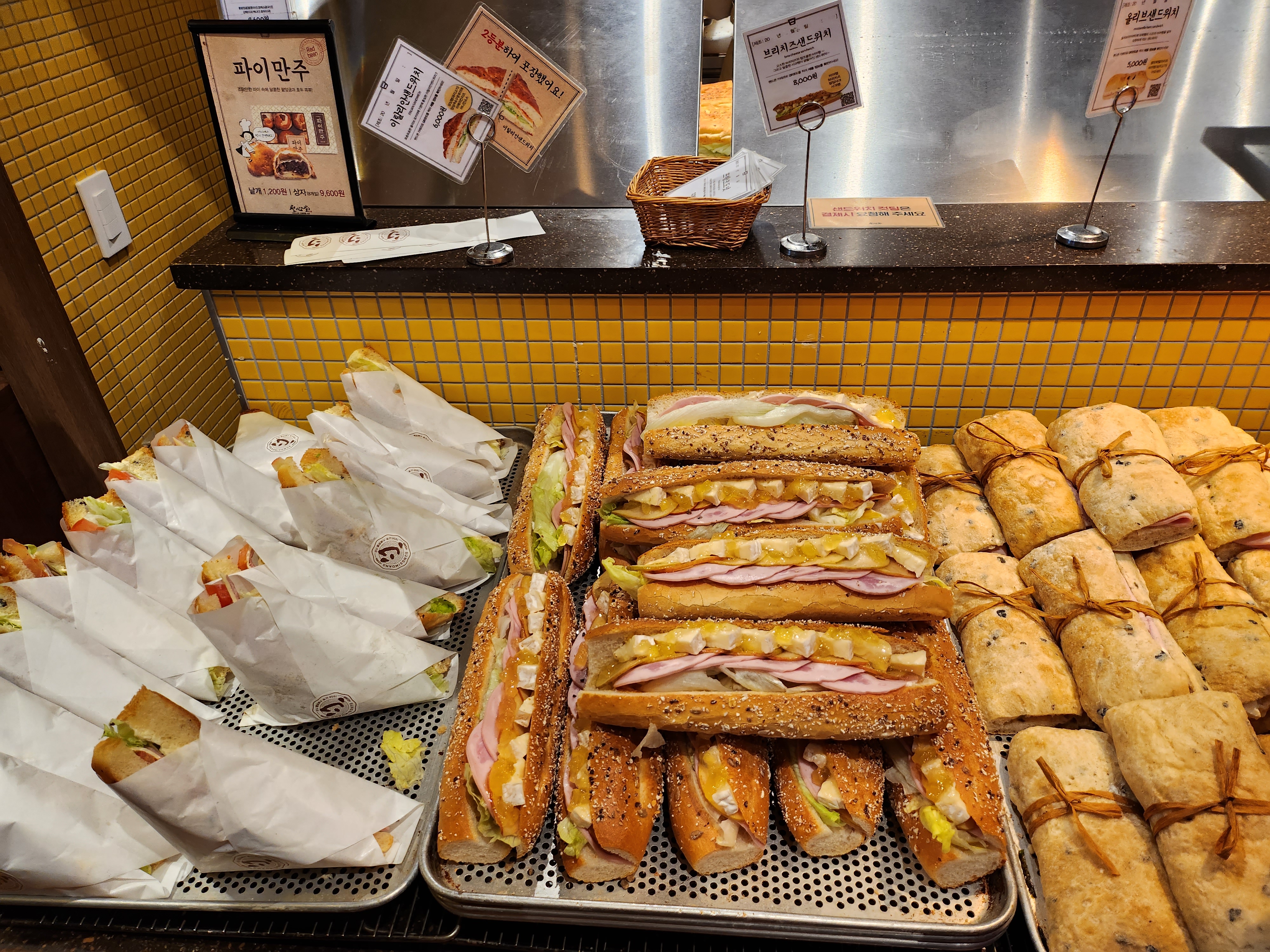 성심당에서 꼭 먹어봐야하는 빵이 있다면 역시 명란바게트와 튀김소보로, 그리고 브리치즈 샌드위치, 야끼소바빵등이 있는데 명란바게트는 나오자마자 품절이 되버리는건지, 벌써 세번째 성심당 DCC점에 와보지만 한번도 성공하지 못했다. 그리고 이날도 마찬가지로 명란바게트는 모두 품절되었다고..