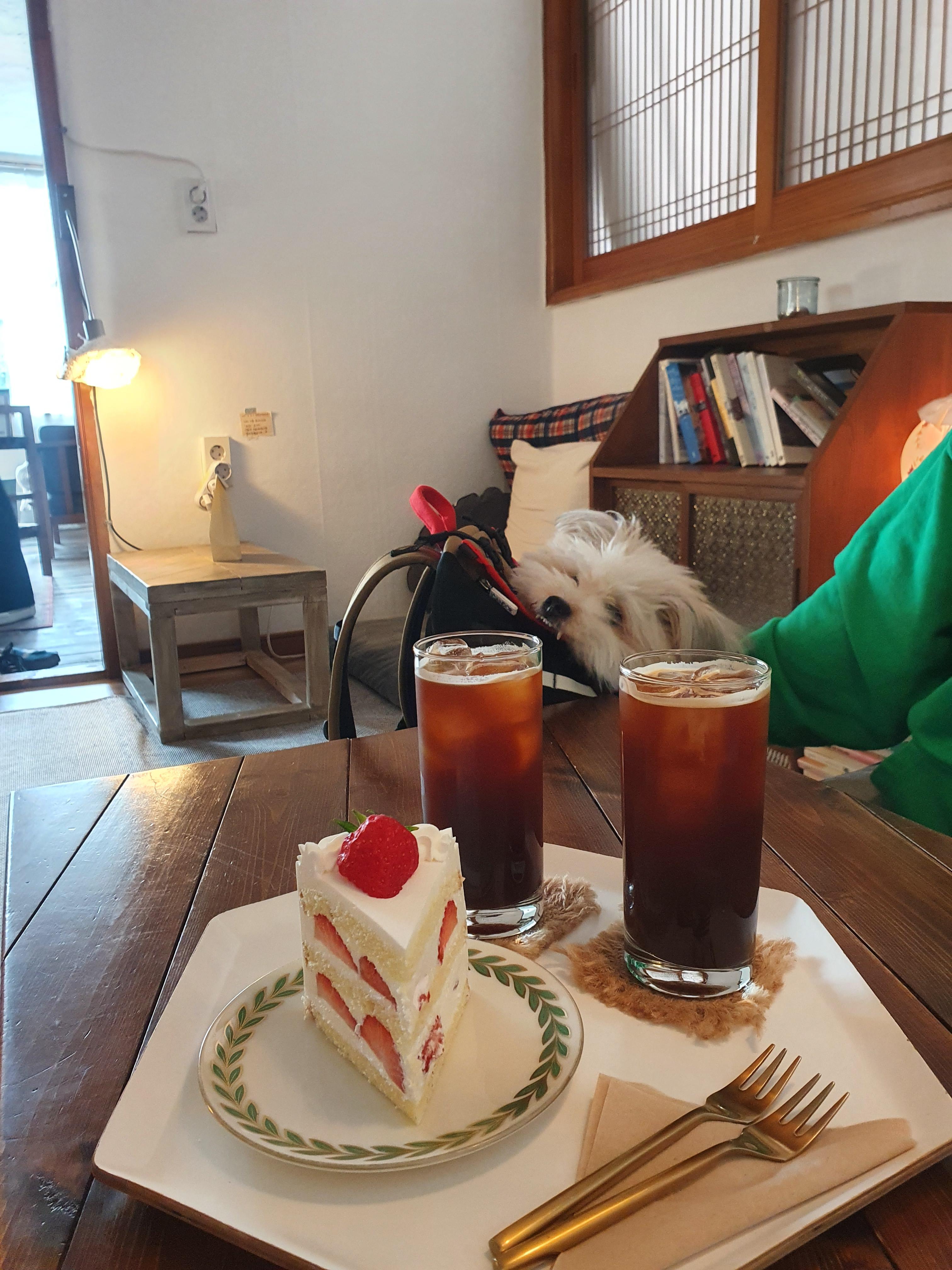 카페 미와에서 딸기케이크와 아이스 아메리카노~~