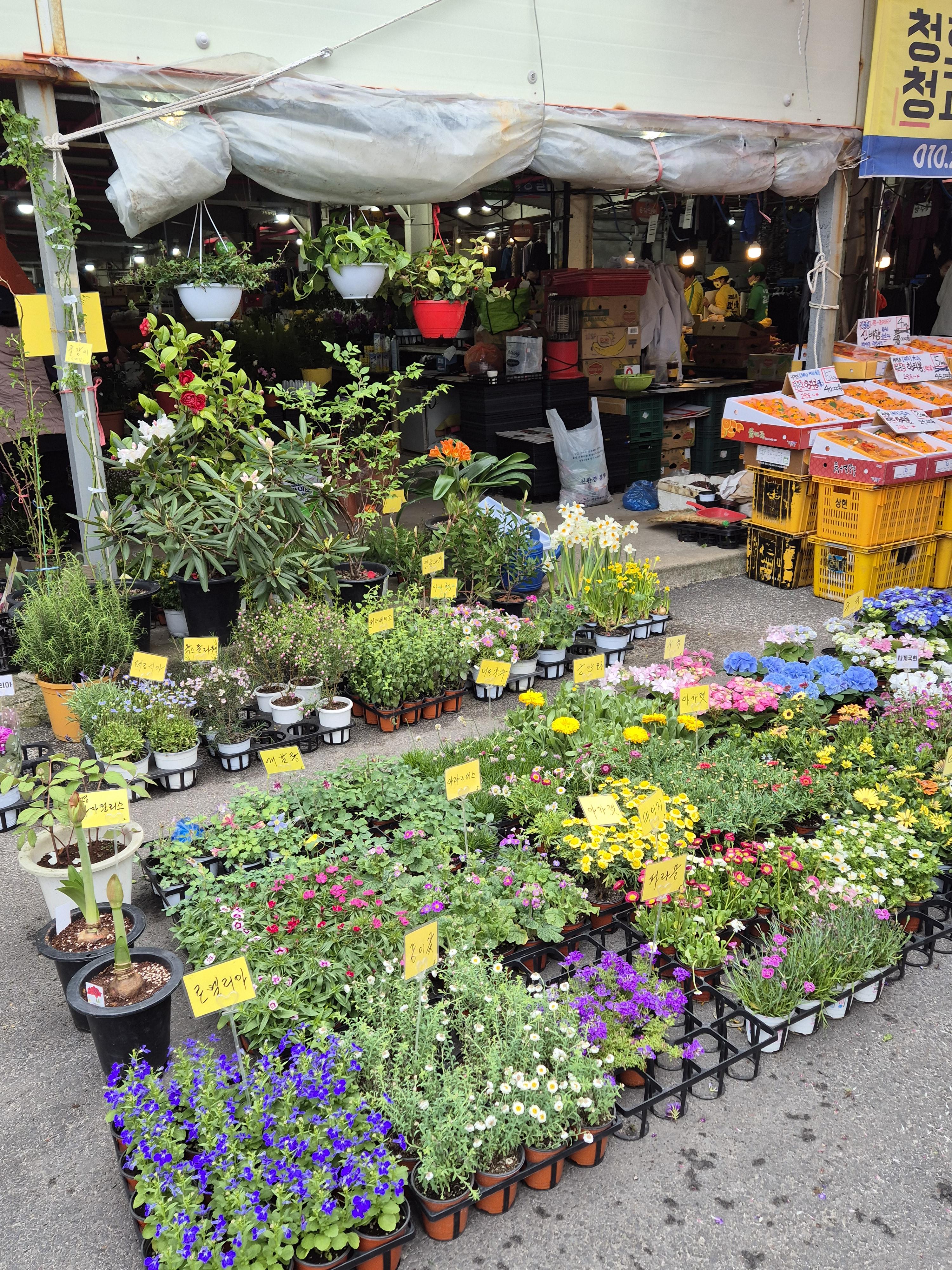 춥고 바람부는 겨울이 지나고 세화 오일장에도 봄이 찾아왔다. 어묵 먹으러 한번씩 간것 말고는, 겨울에는 모종도 꽃도 별로 없어서 잘 찾지 않았는데 이제는 꽃이 피어나는 봄이니 가게 오픈 전 모종도 살겸 방문했다.