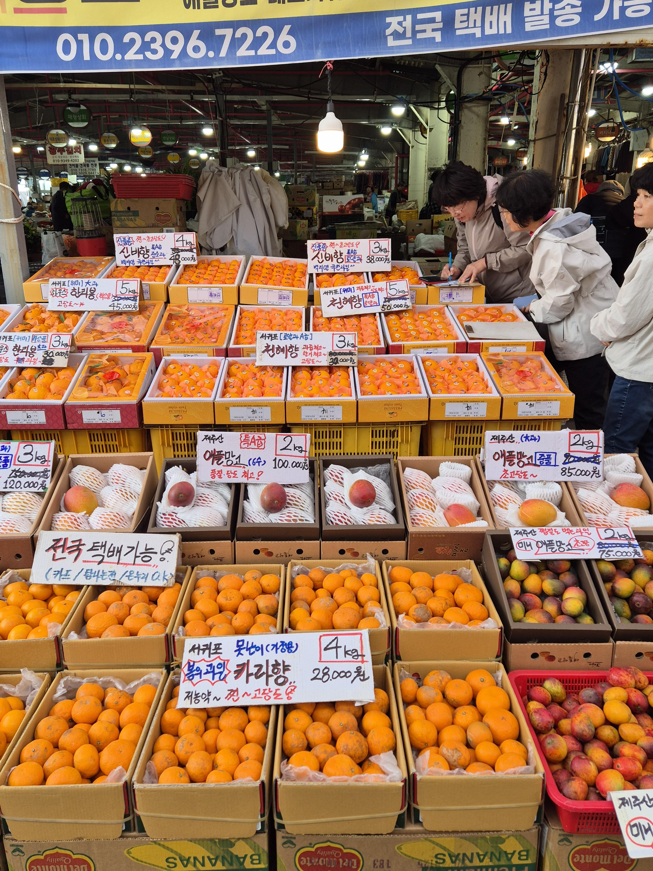 세화 오일장 입구로 들어서면 가장 먼저 반기는 것은 꽃과 식물, 그리고 만감류와 제철 과일이다.