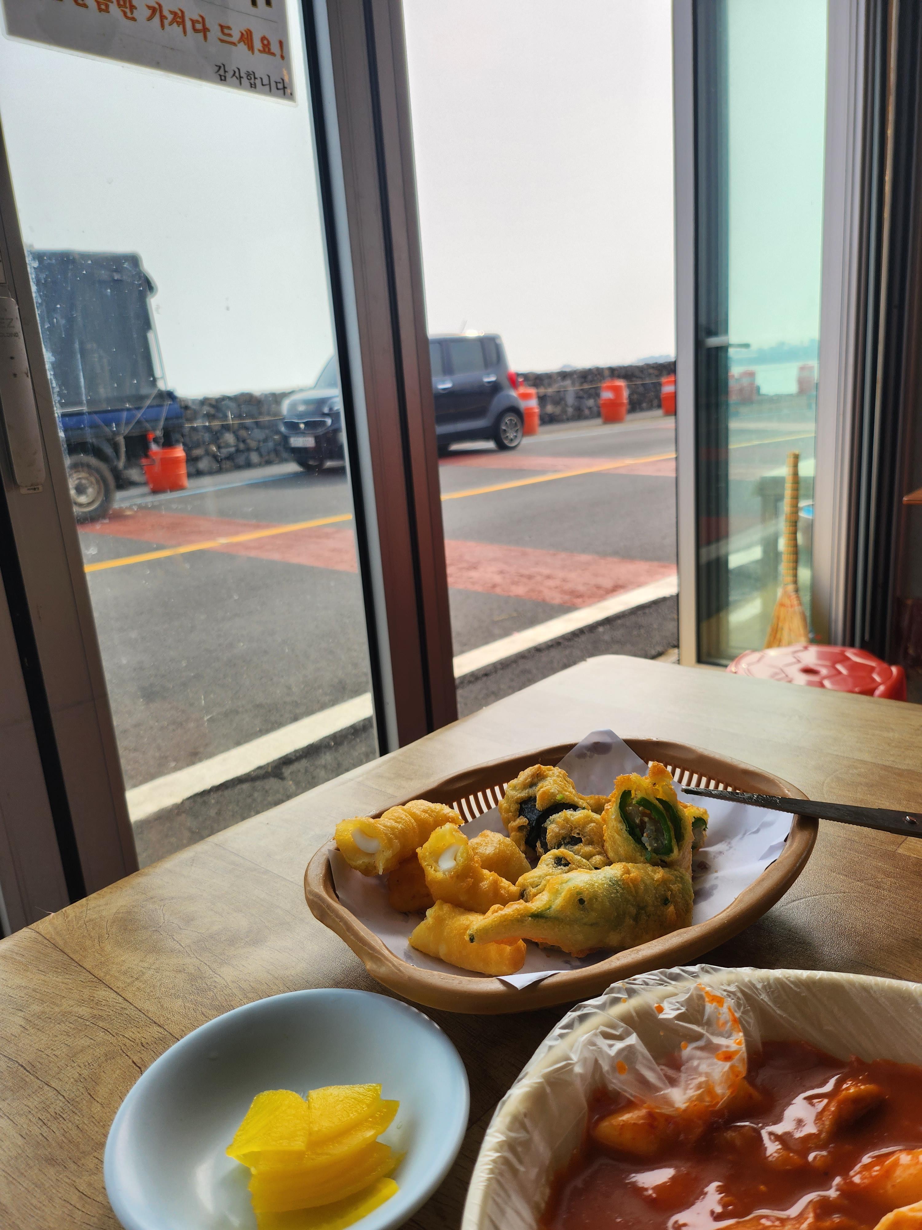튀김과 어묵은 서서 먹을수도 있는데, 사람 워낙 많고 혼잡해서 포장해서 바로 앞 세화바다를 보며 먹는 것을 추천합니다.
