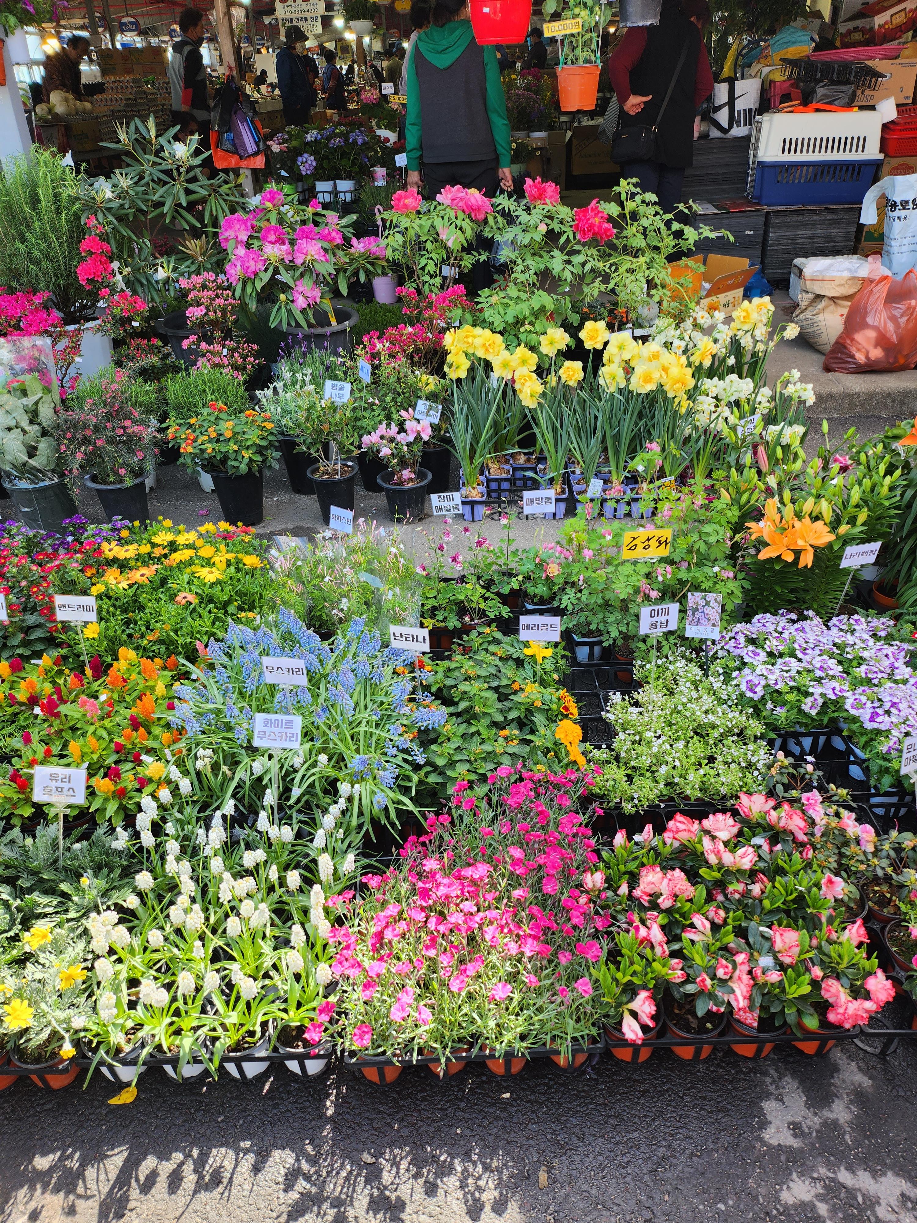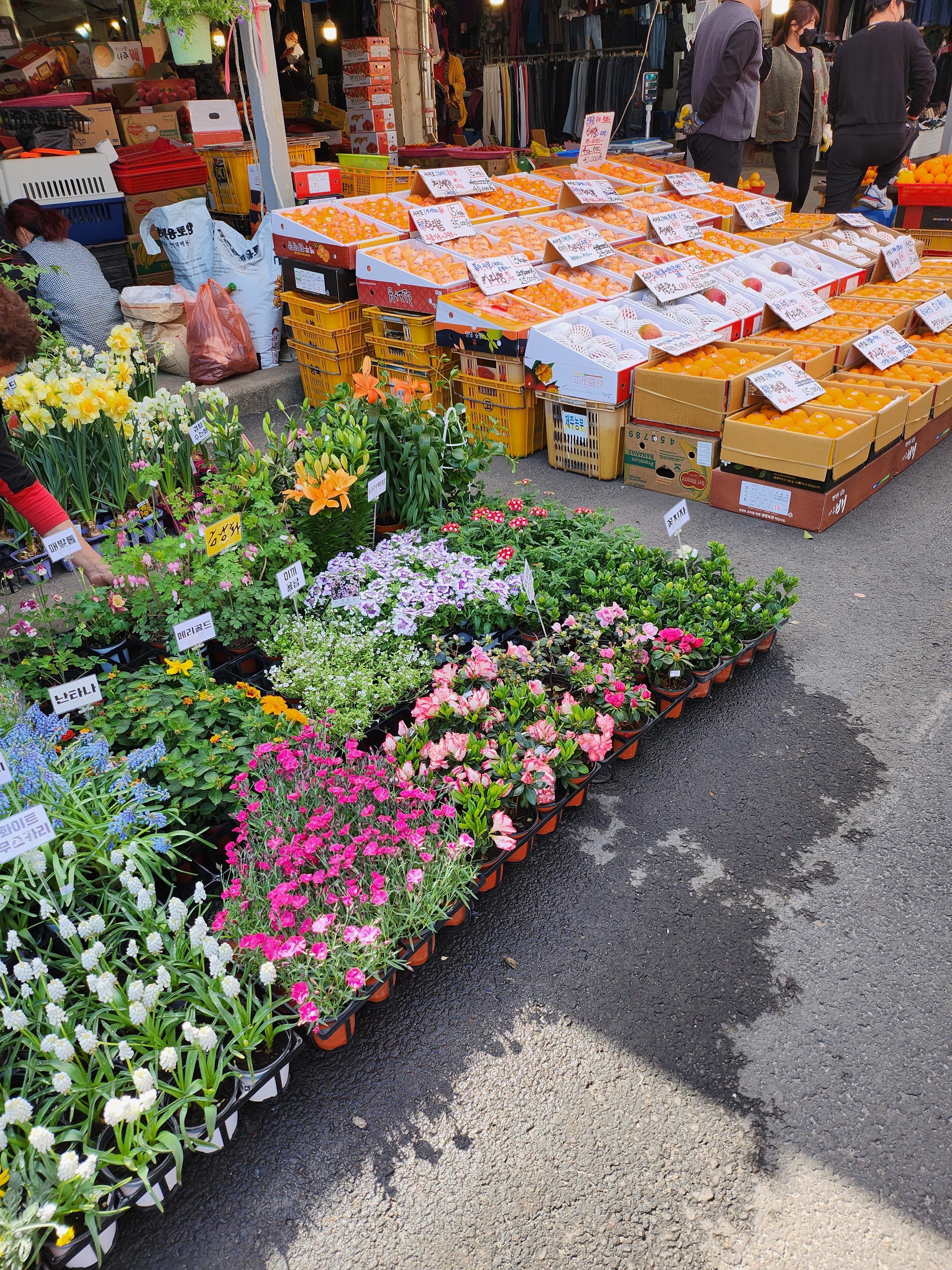오일장의 봄을 알리는 건 역시 꽃이다. 부담없이 구매하기 좋은 작은 화분들부터 분위기를 바꿔줄 큰 화분들까지 다양하고 알록달록한 식물들이 자리를 잡고 있었다.