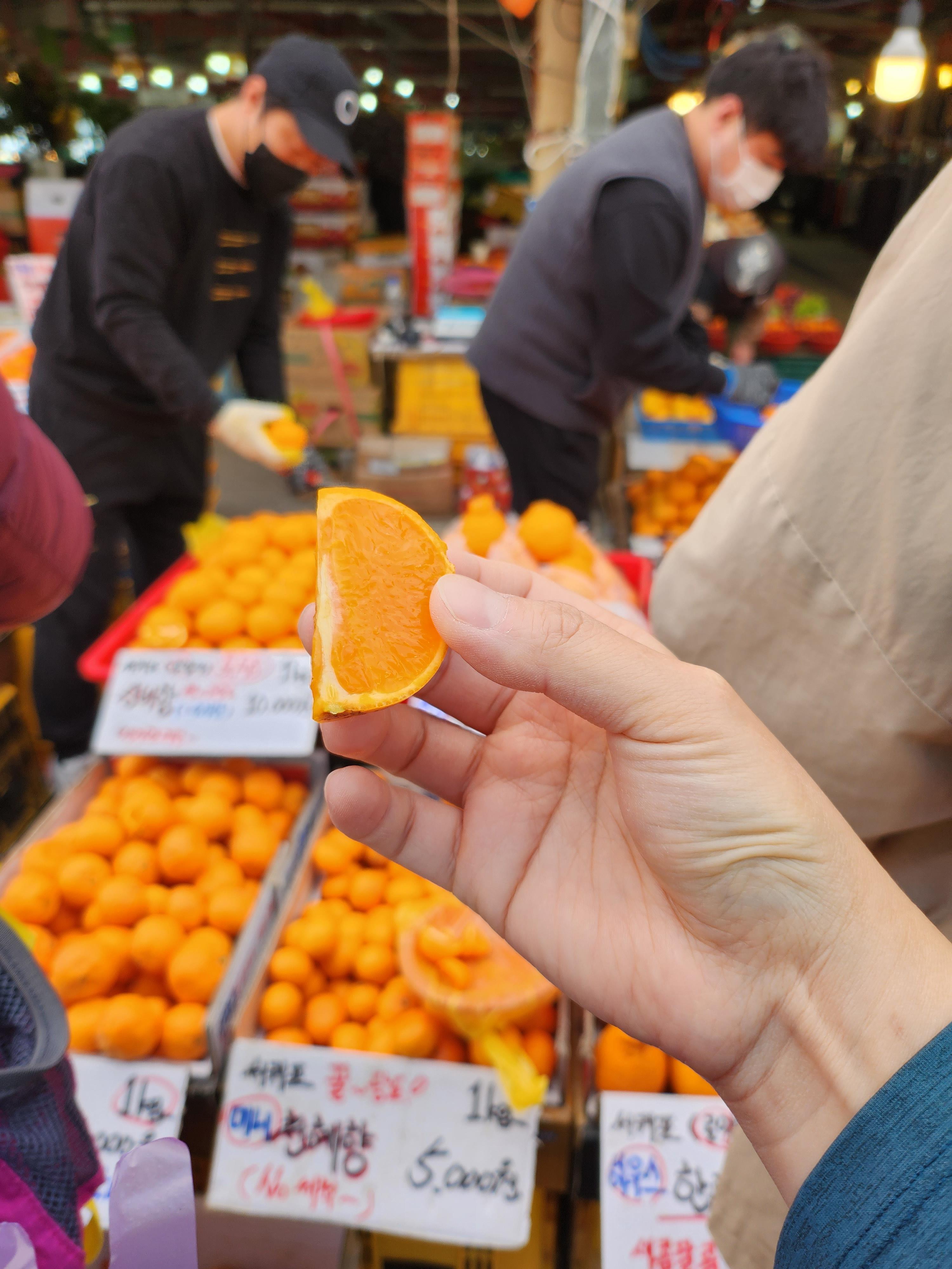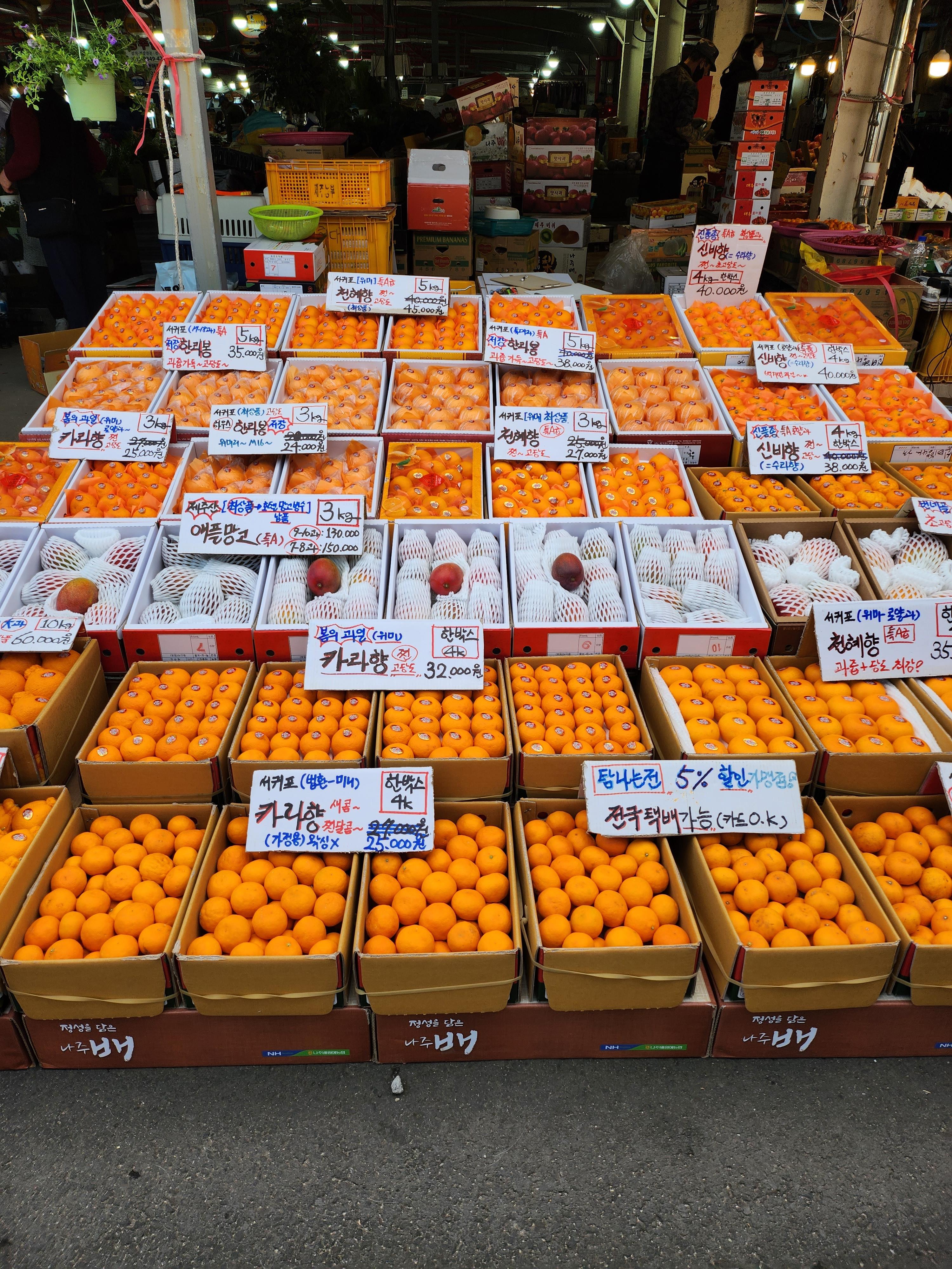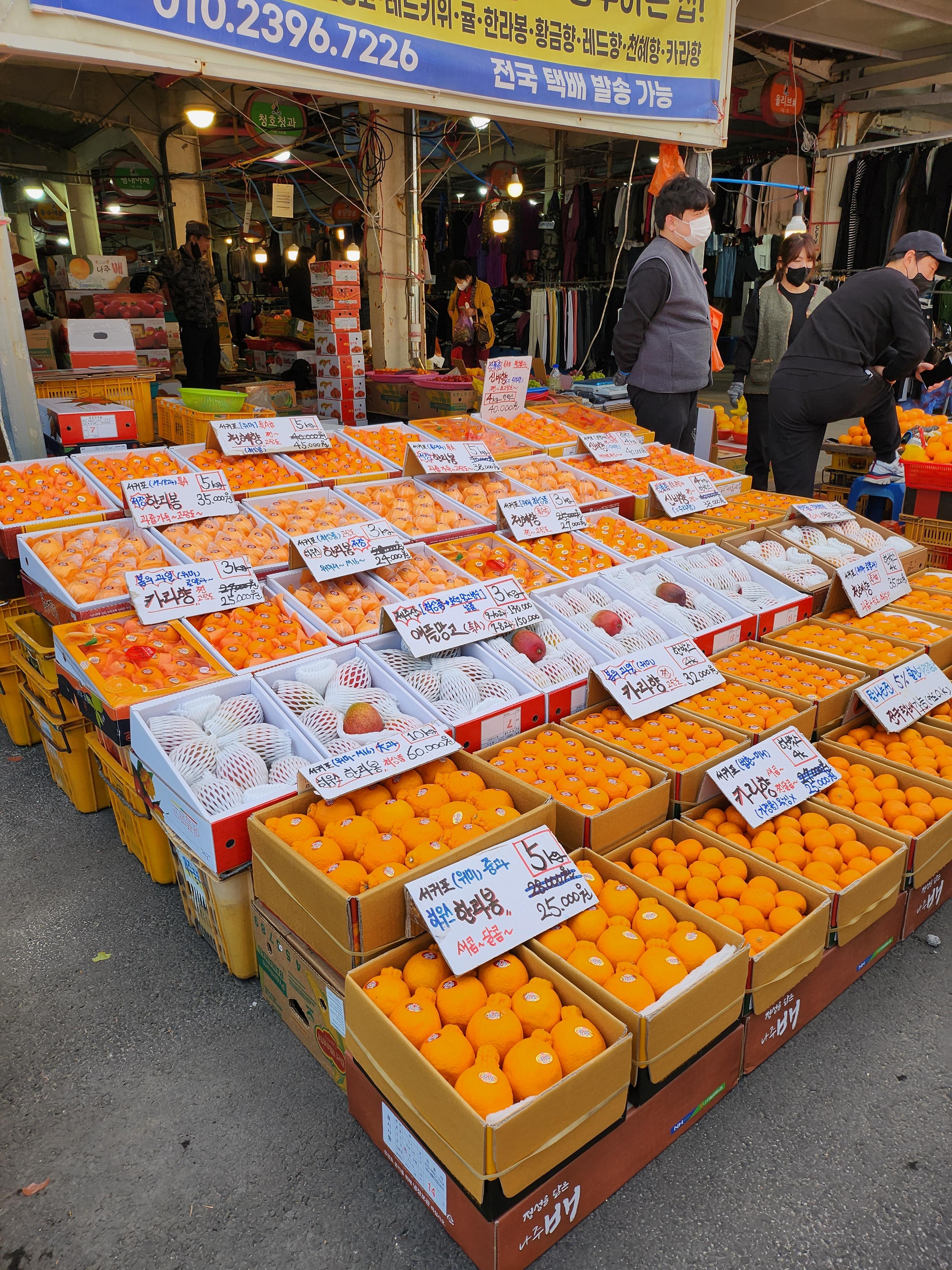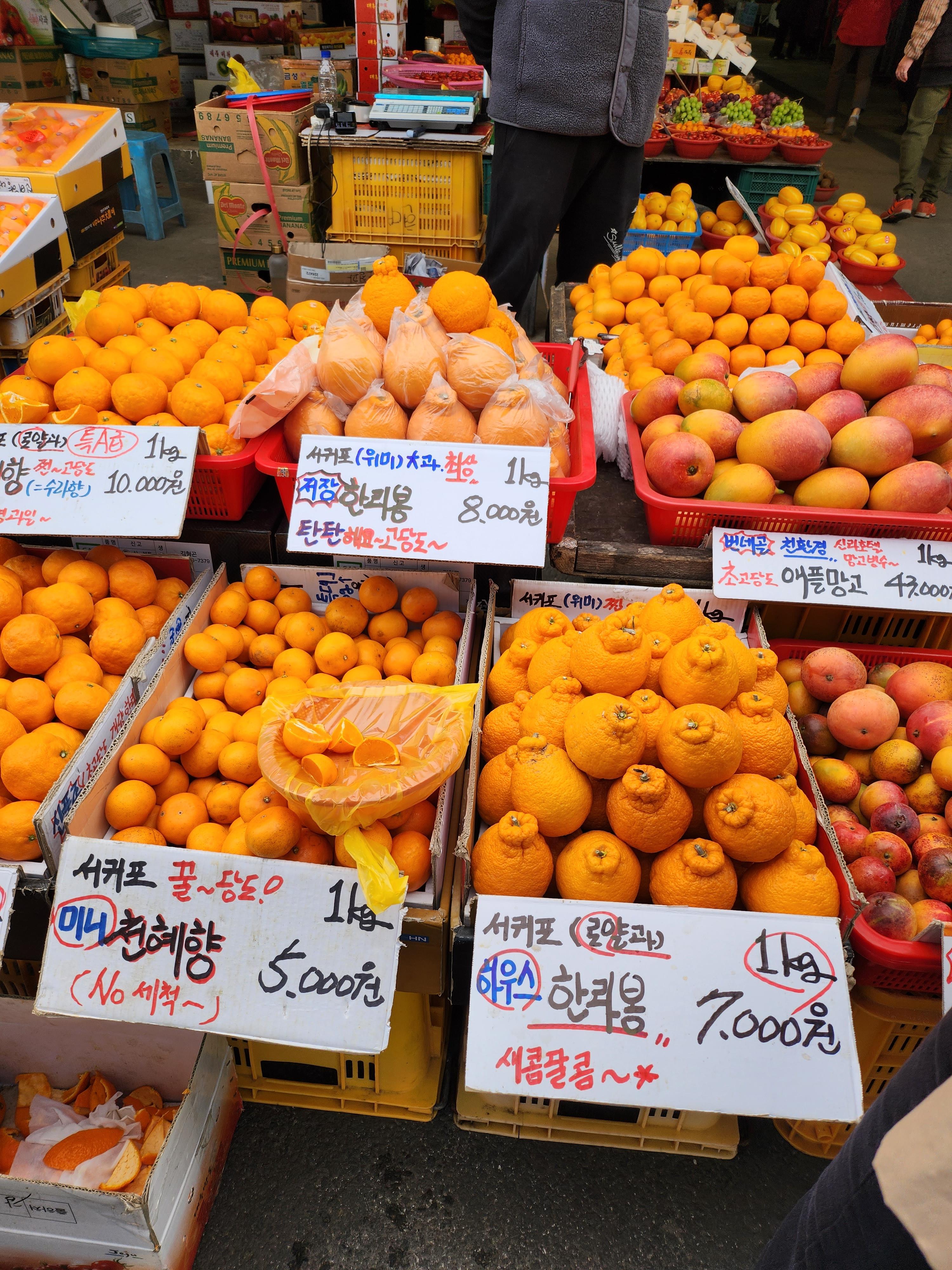 양쪽에서 마주보고 있는 과일가게. 늘 만감류들이 자리를 잡고 있는데, 지금은 만감류는 수확이 끝난 시기라서 종류가 많기는 하지만 제철에 먹는 것보다는 아무래도 가격도 좀 높고 맛은 떨어질 수 있다.
