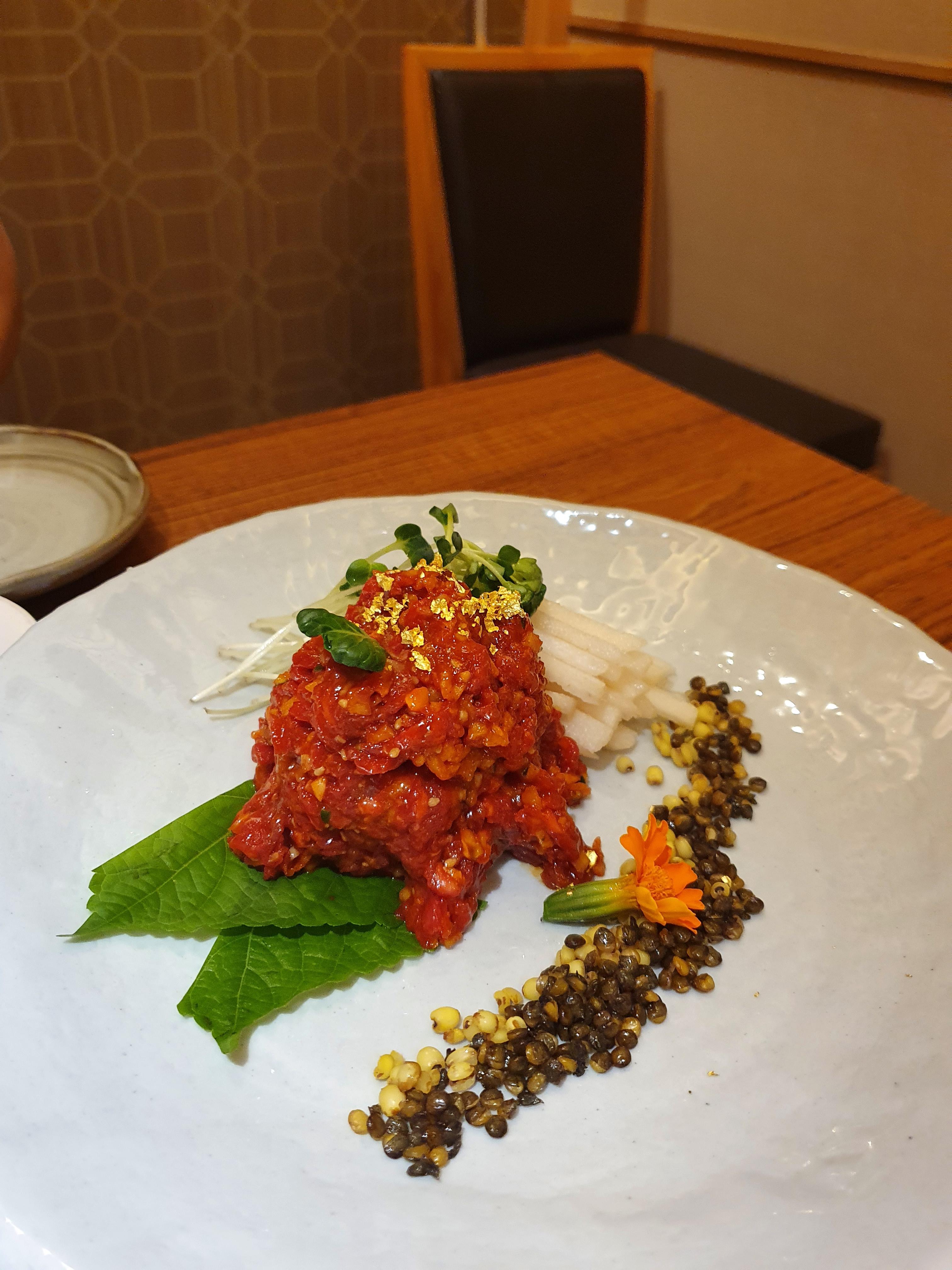 세트로 주문하면 육회와 튀김, 생선회 제공되어서