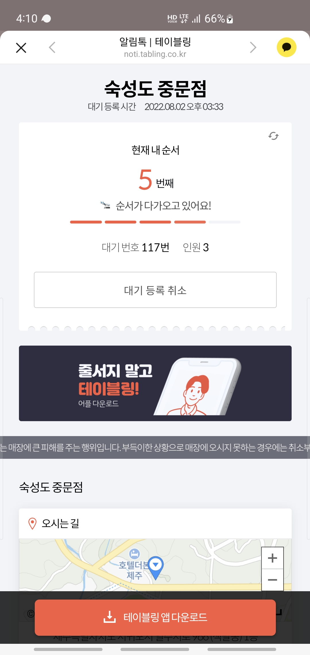 내 순서가 몇번째인지 실시간 확인 할 수 있음