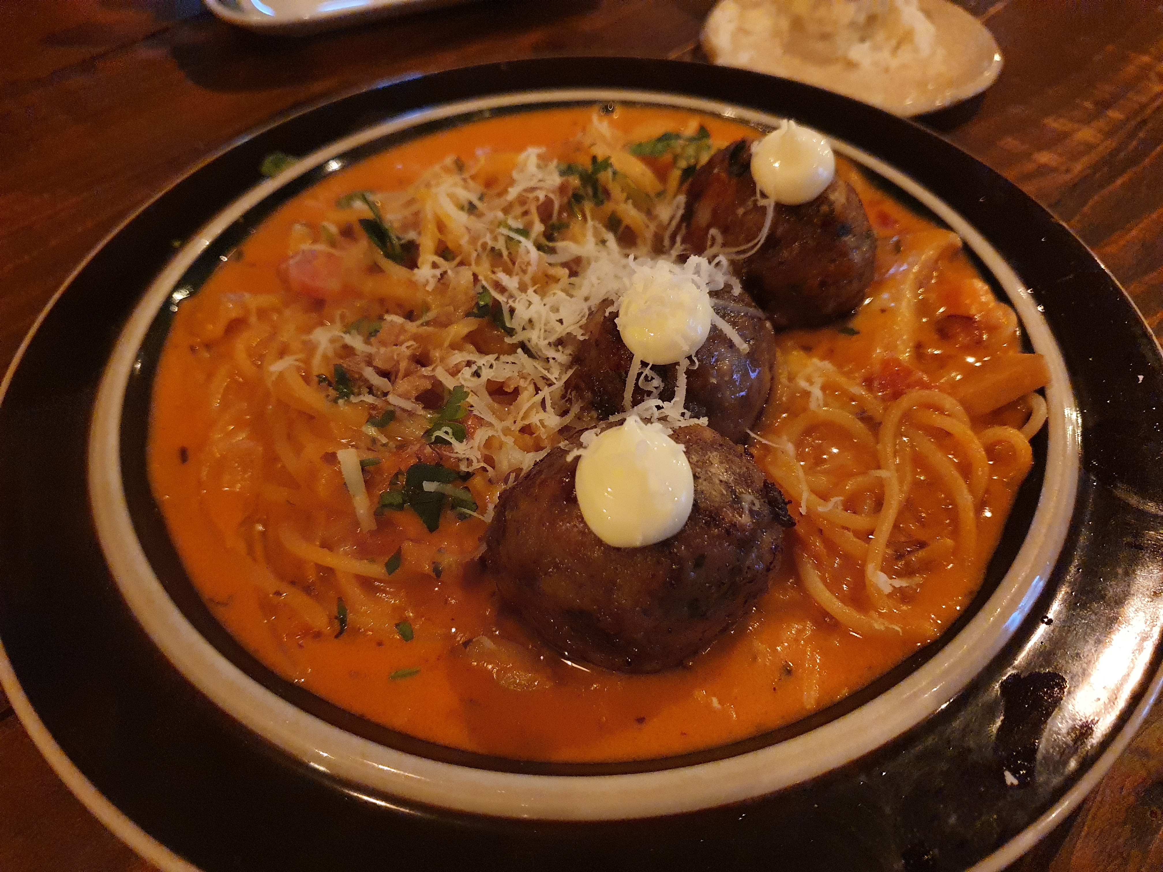 미트볼 로제 스파게티, 그리고 토마토 맥주를