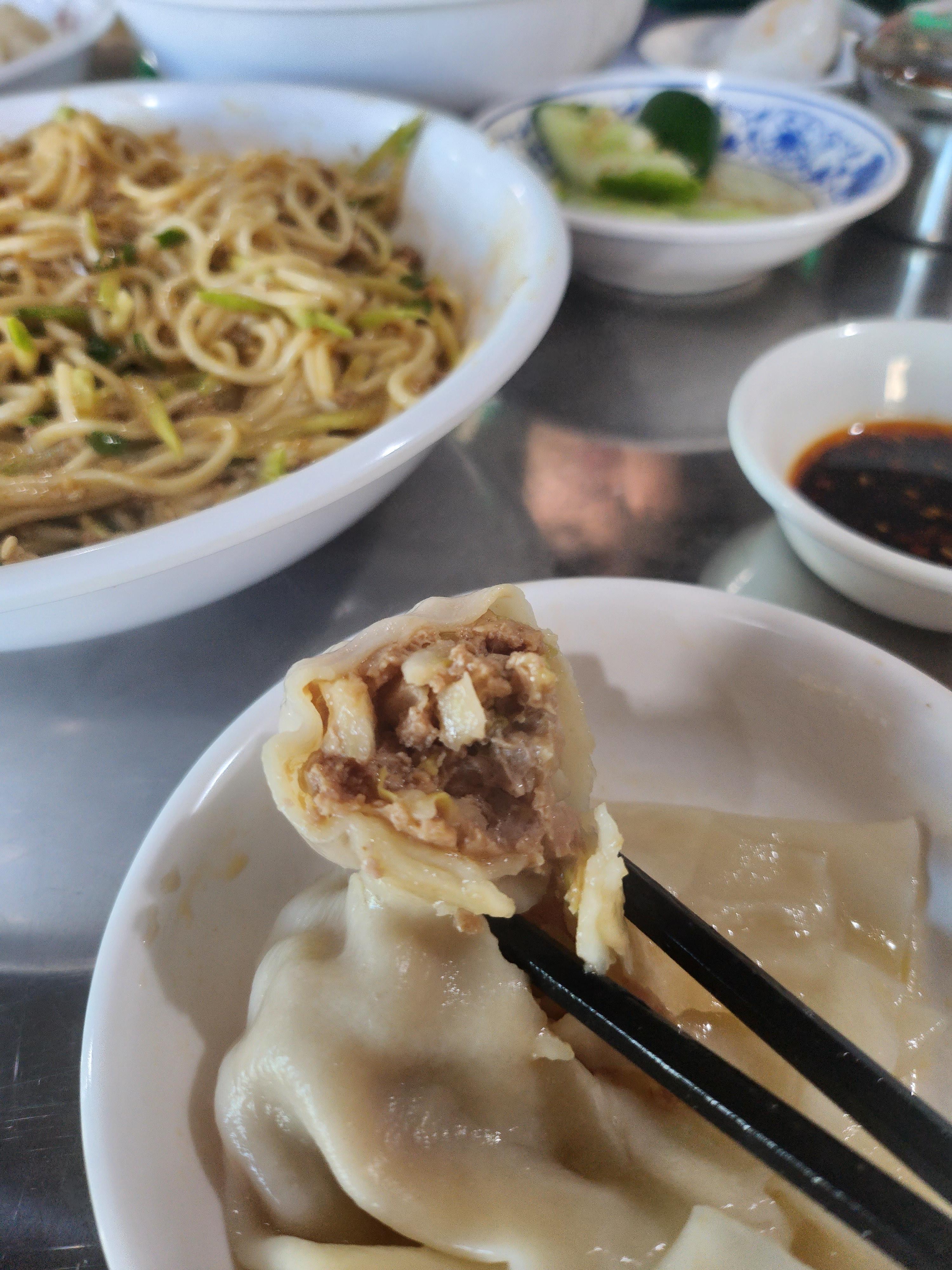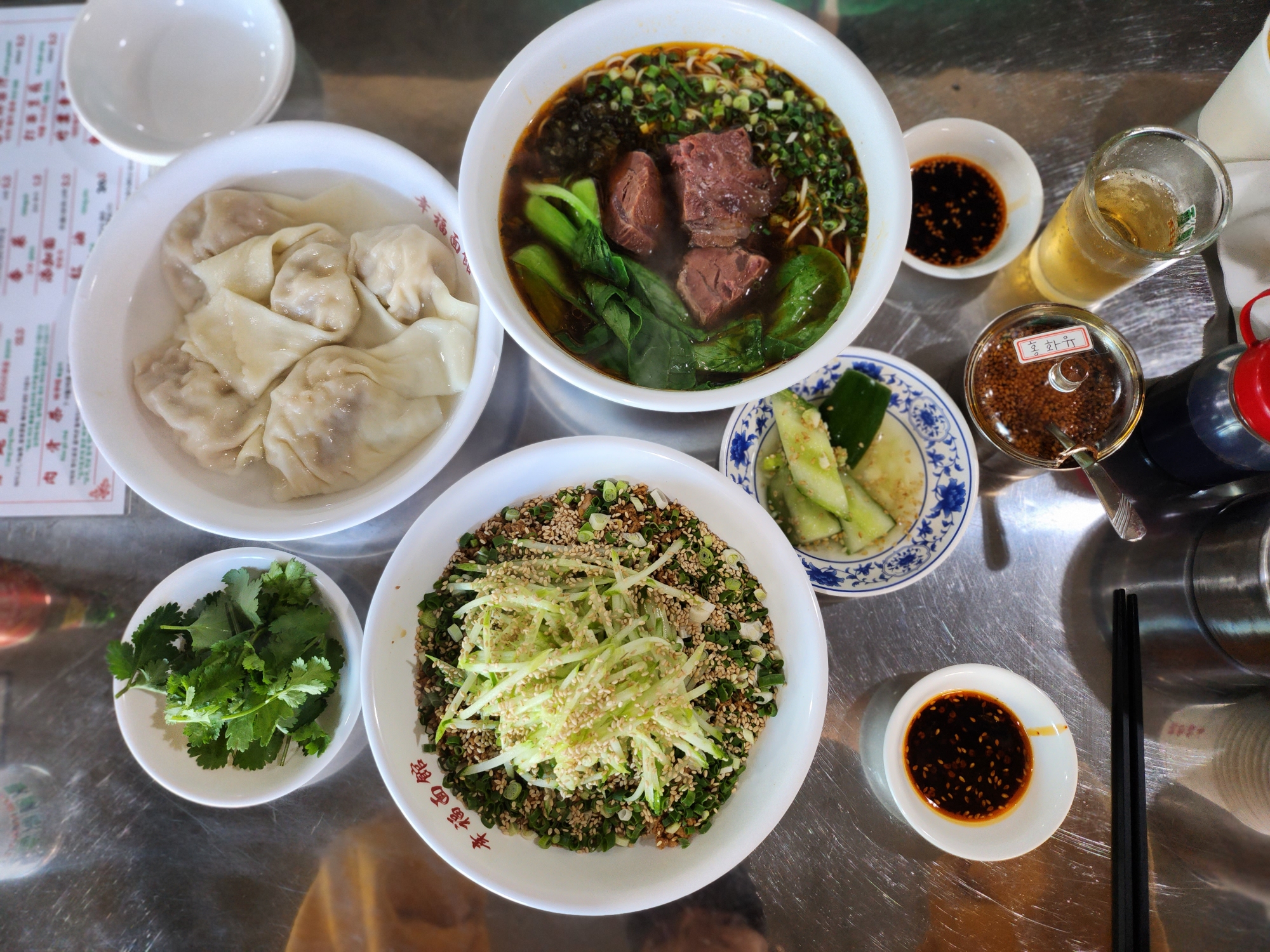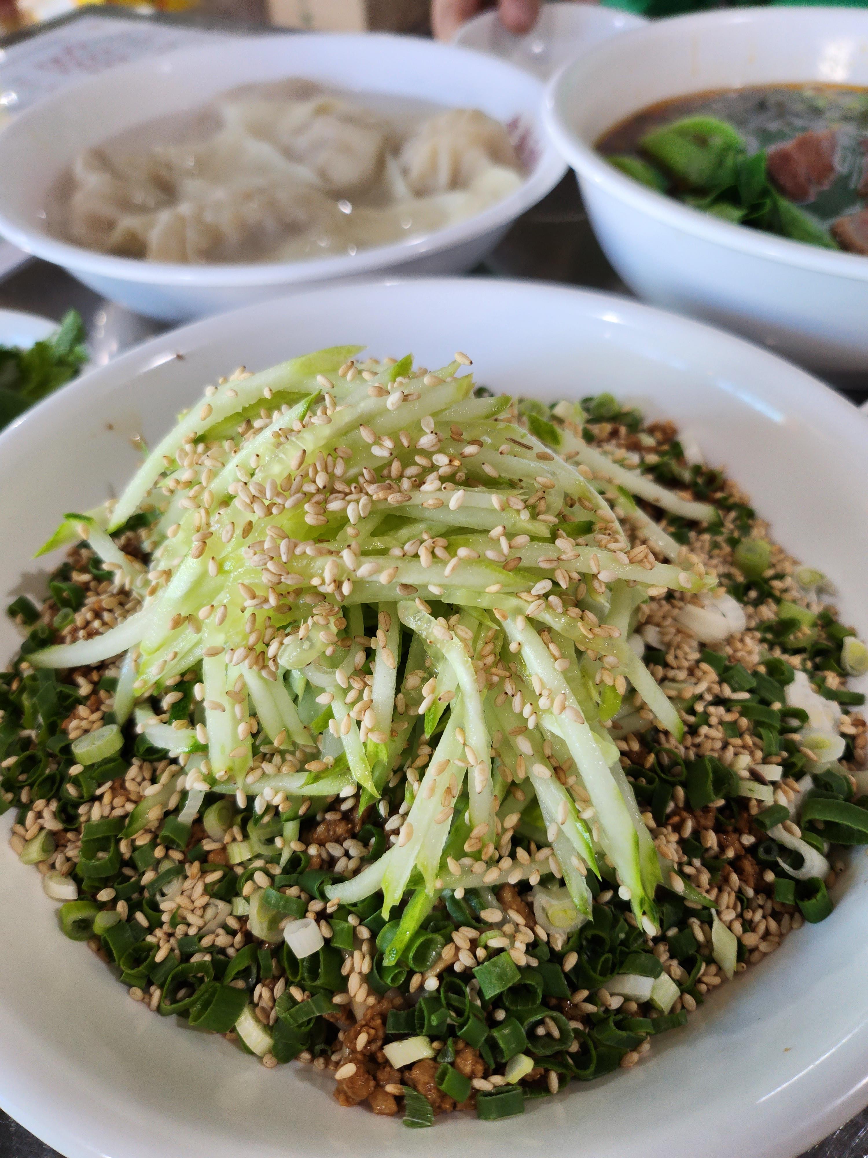 우리는 홍소 우육면과 중국식 비빔면인 열간면