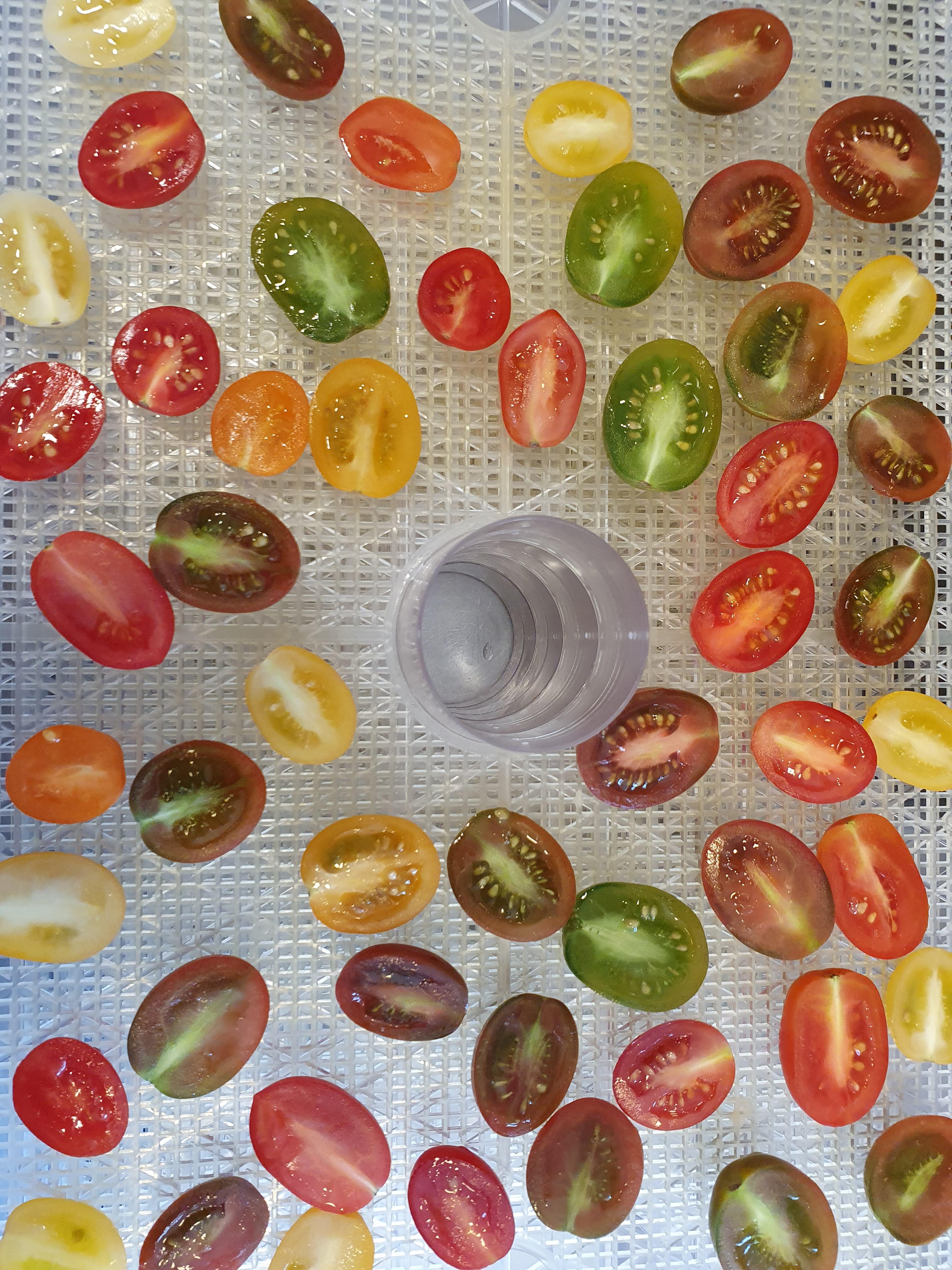 방울토마토는 반으로 잘라 건조기에 말려준다