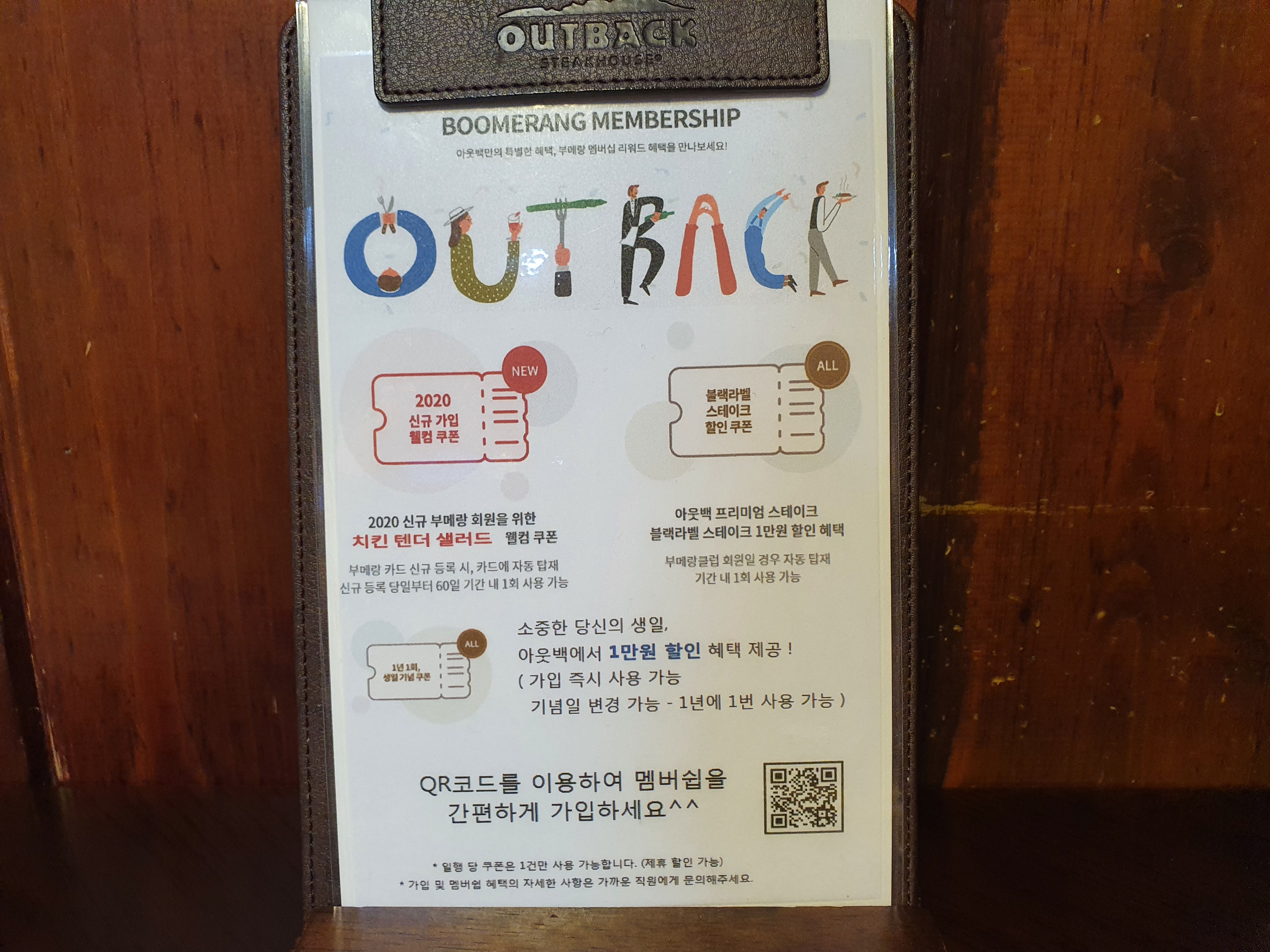 바로 아웃백 어플을 다운받아 부메랑 클럽에 가입하는것!