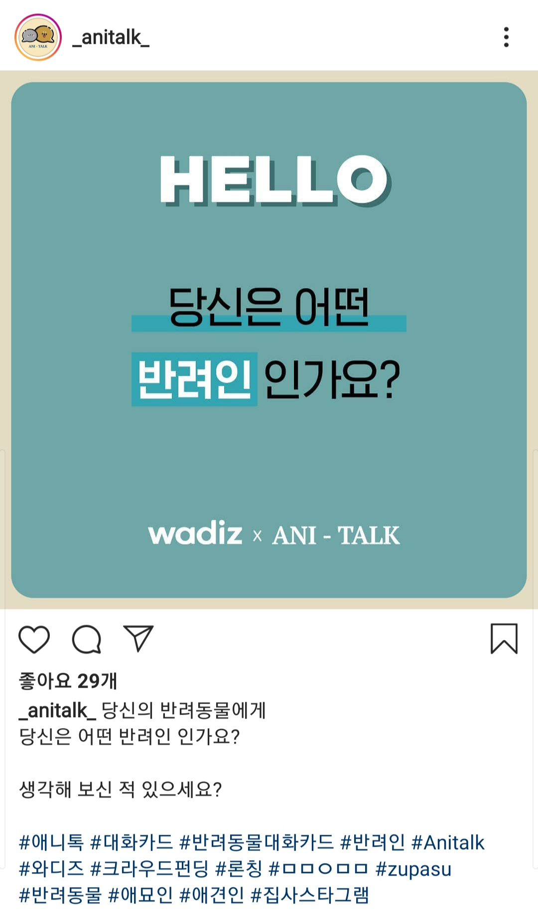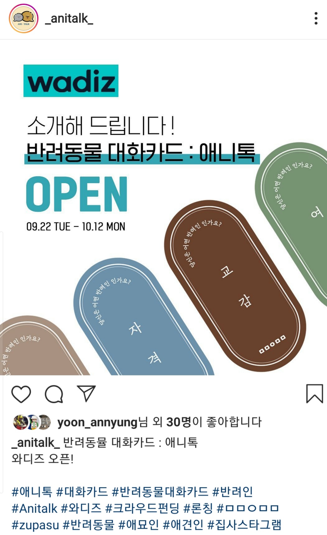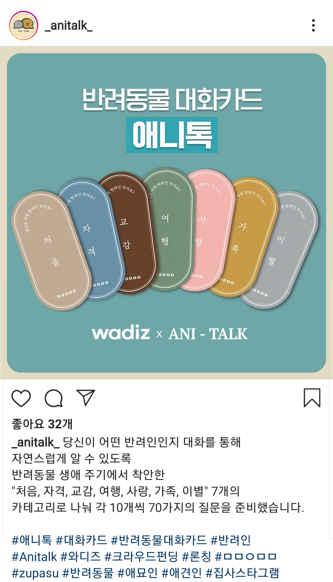 이야기를 나눌 수 있는 반려동물 대화카드 애니톡