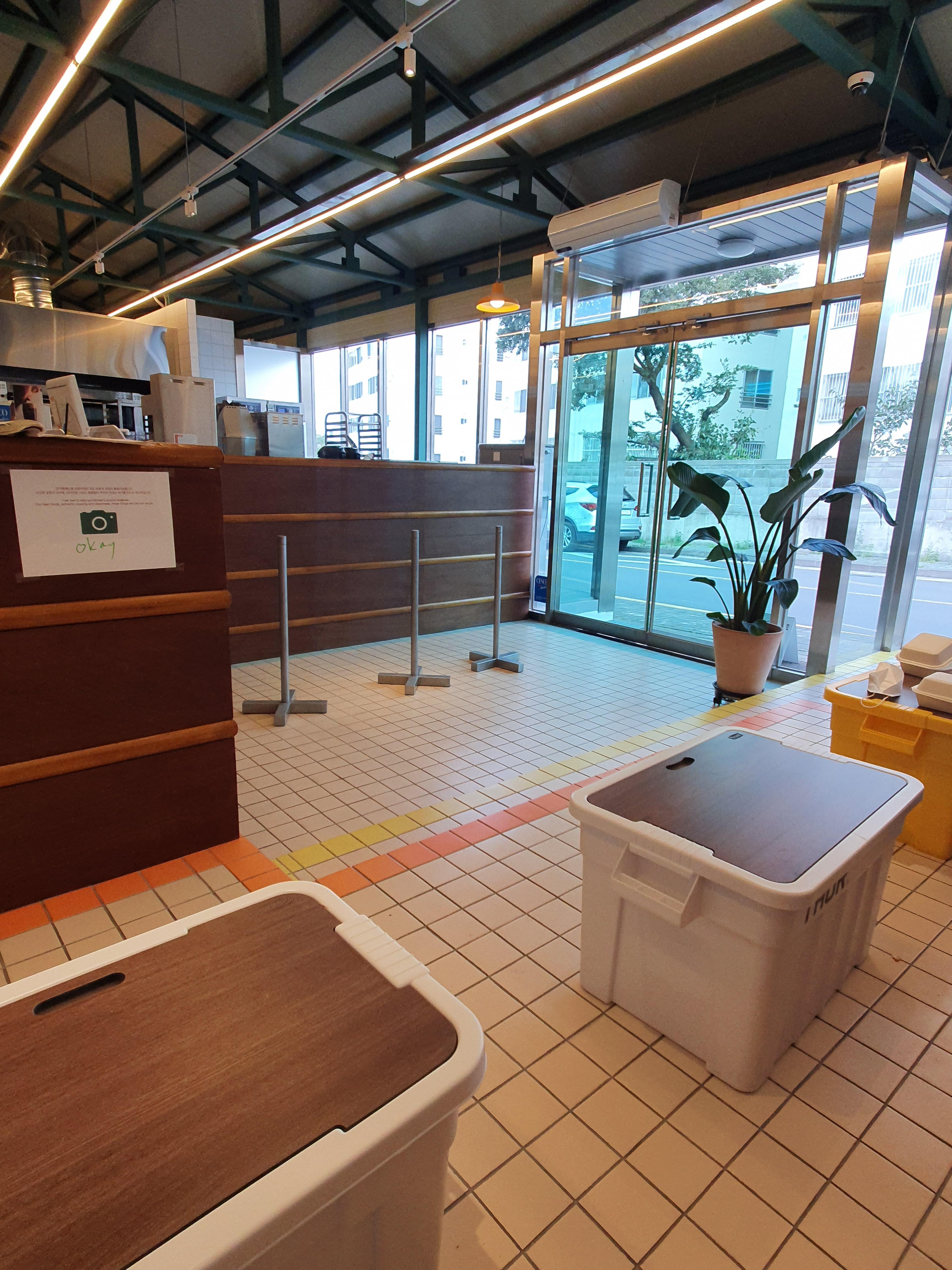 테이블을 높여주던지, 아니면 그냥 포장판매만하는게