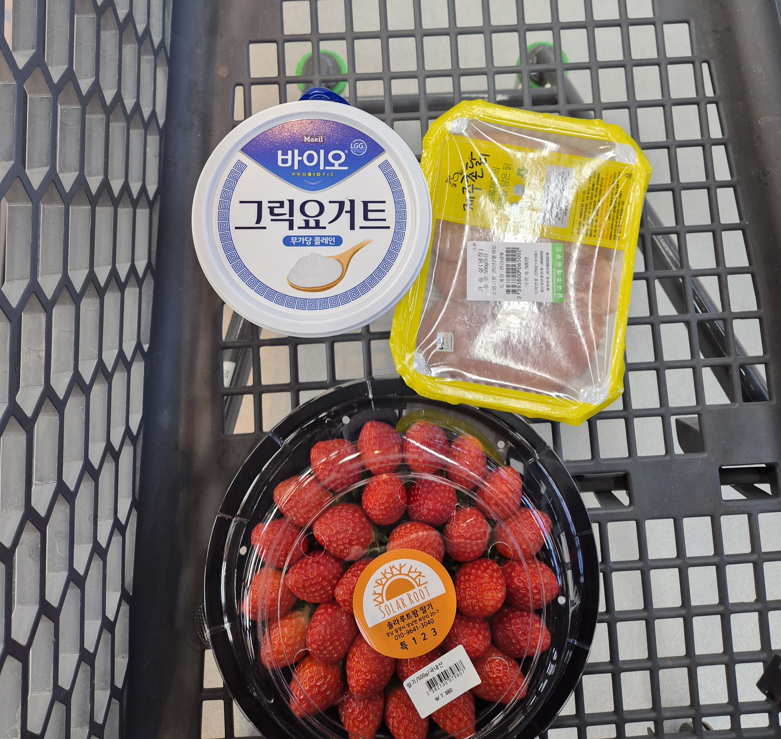제주도로 돌아와 신선한 딸기와 닭가슴살을 먹고, 헬스장을 갔다.