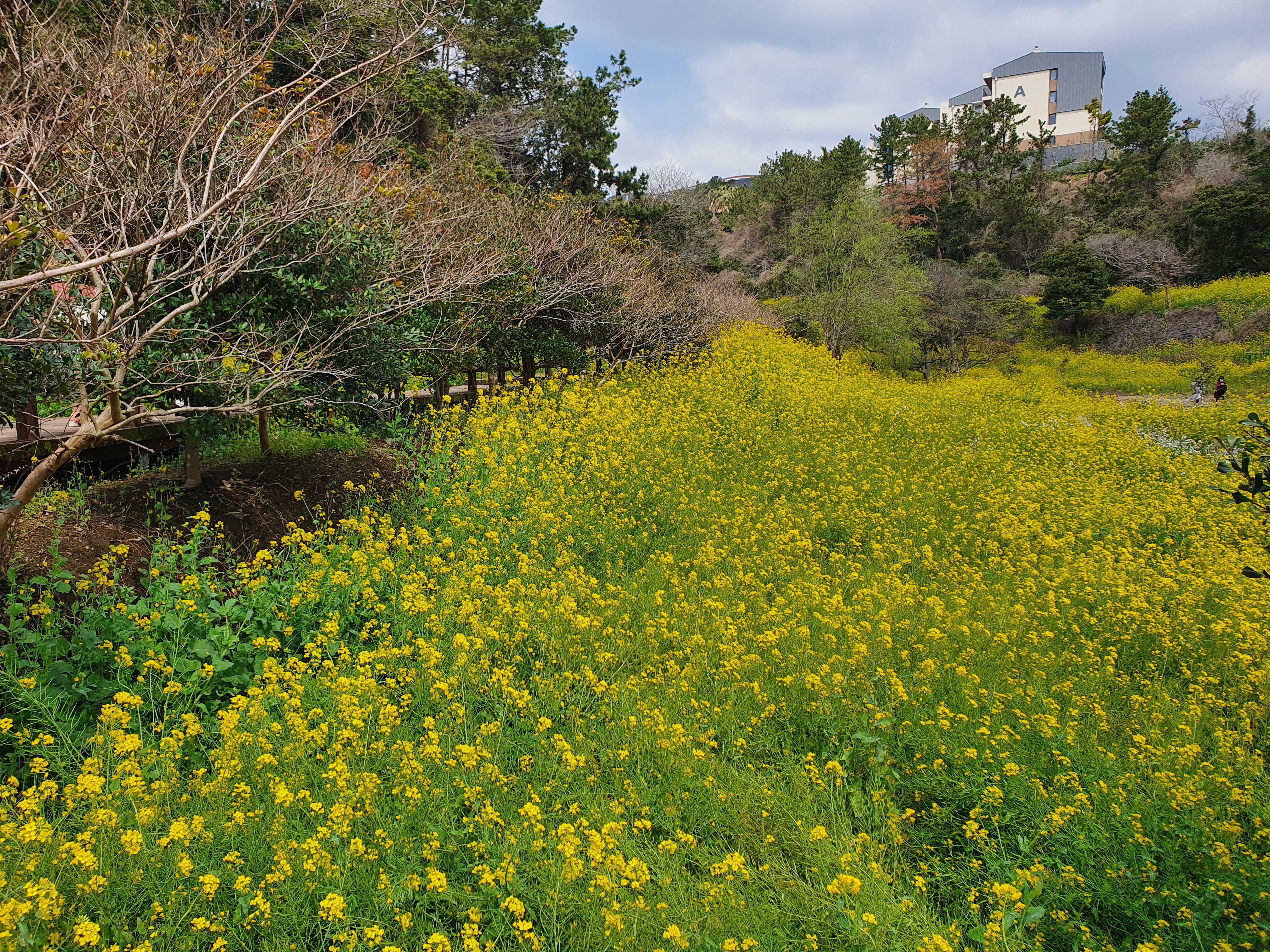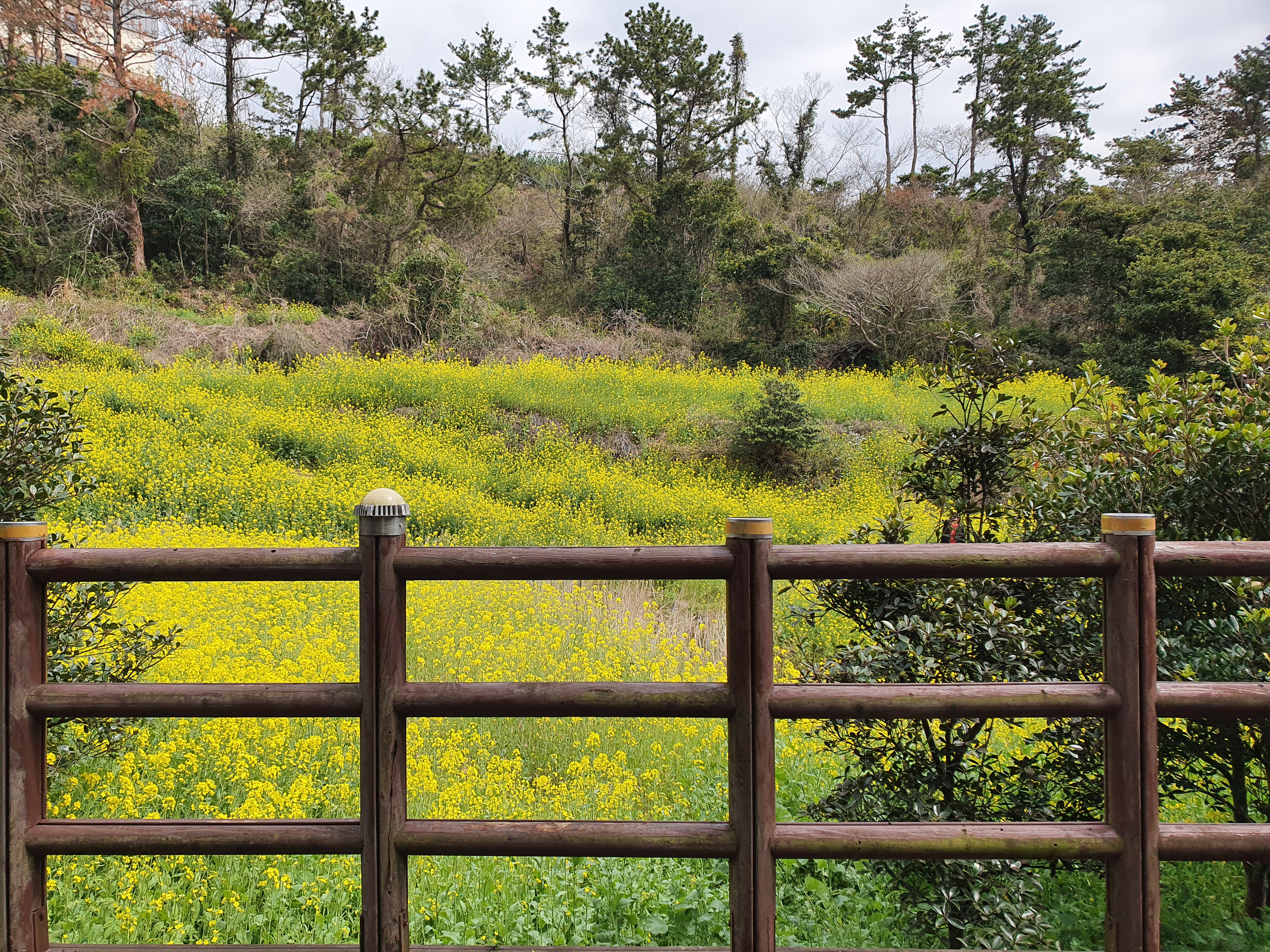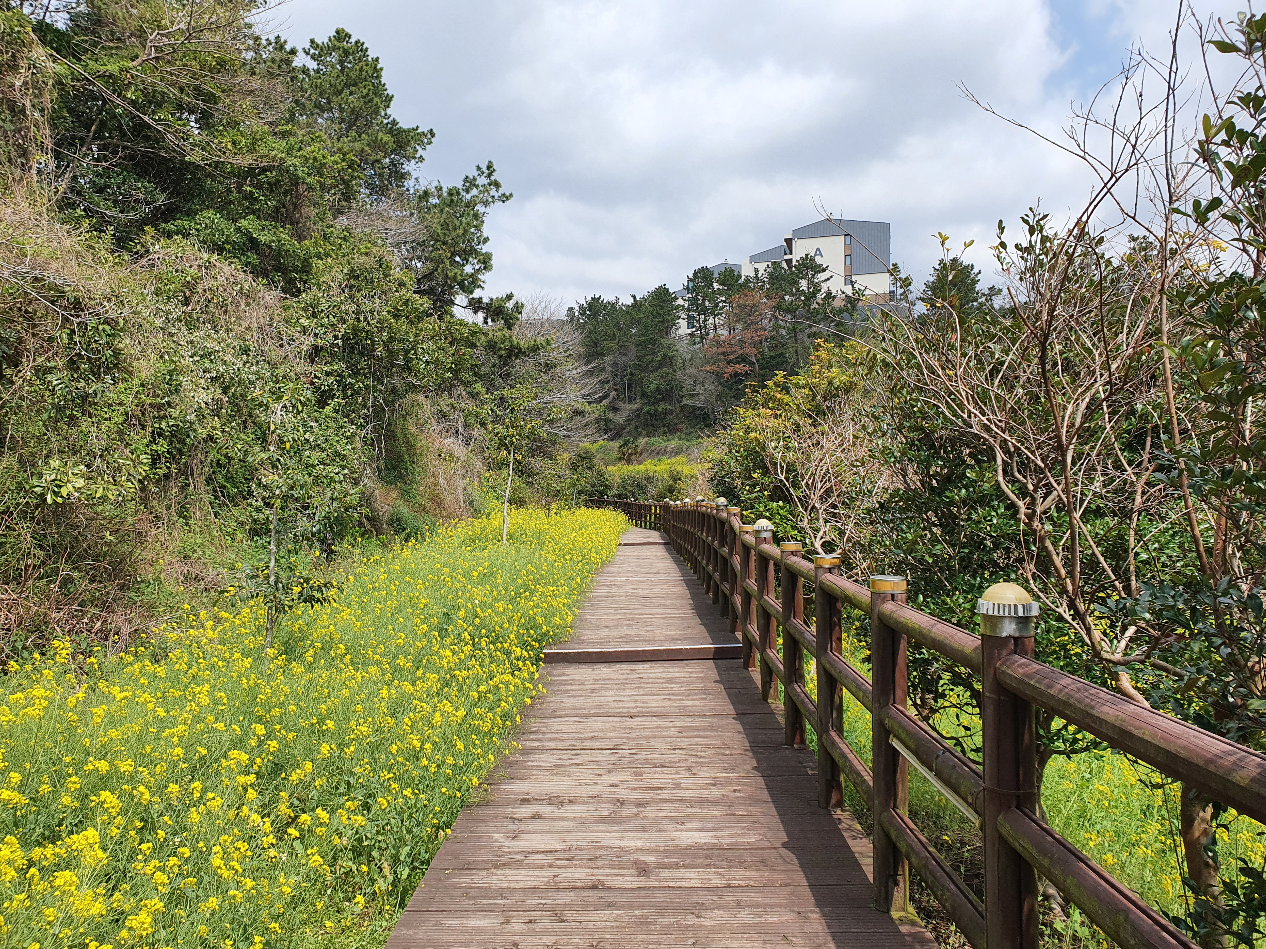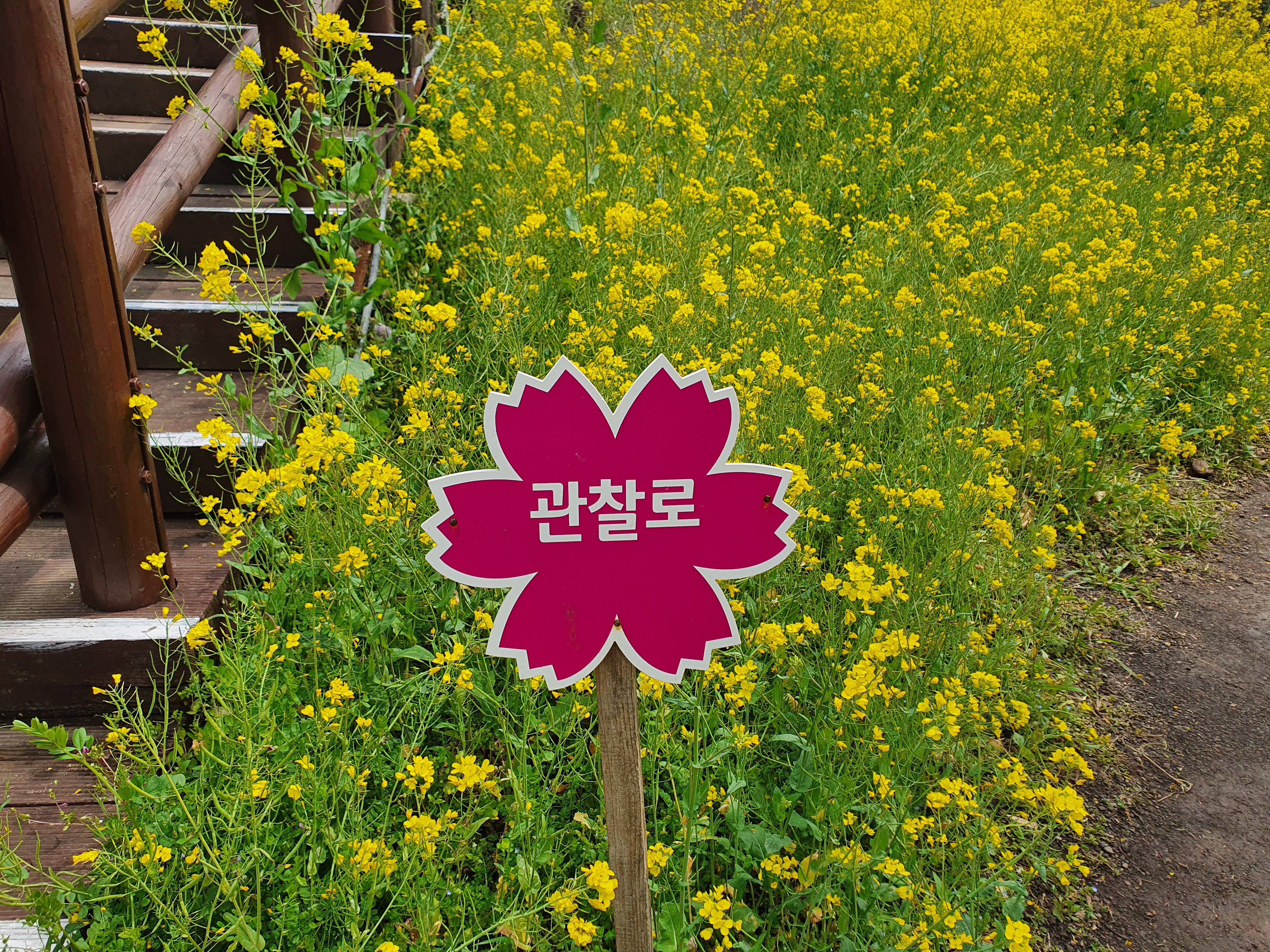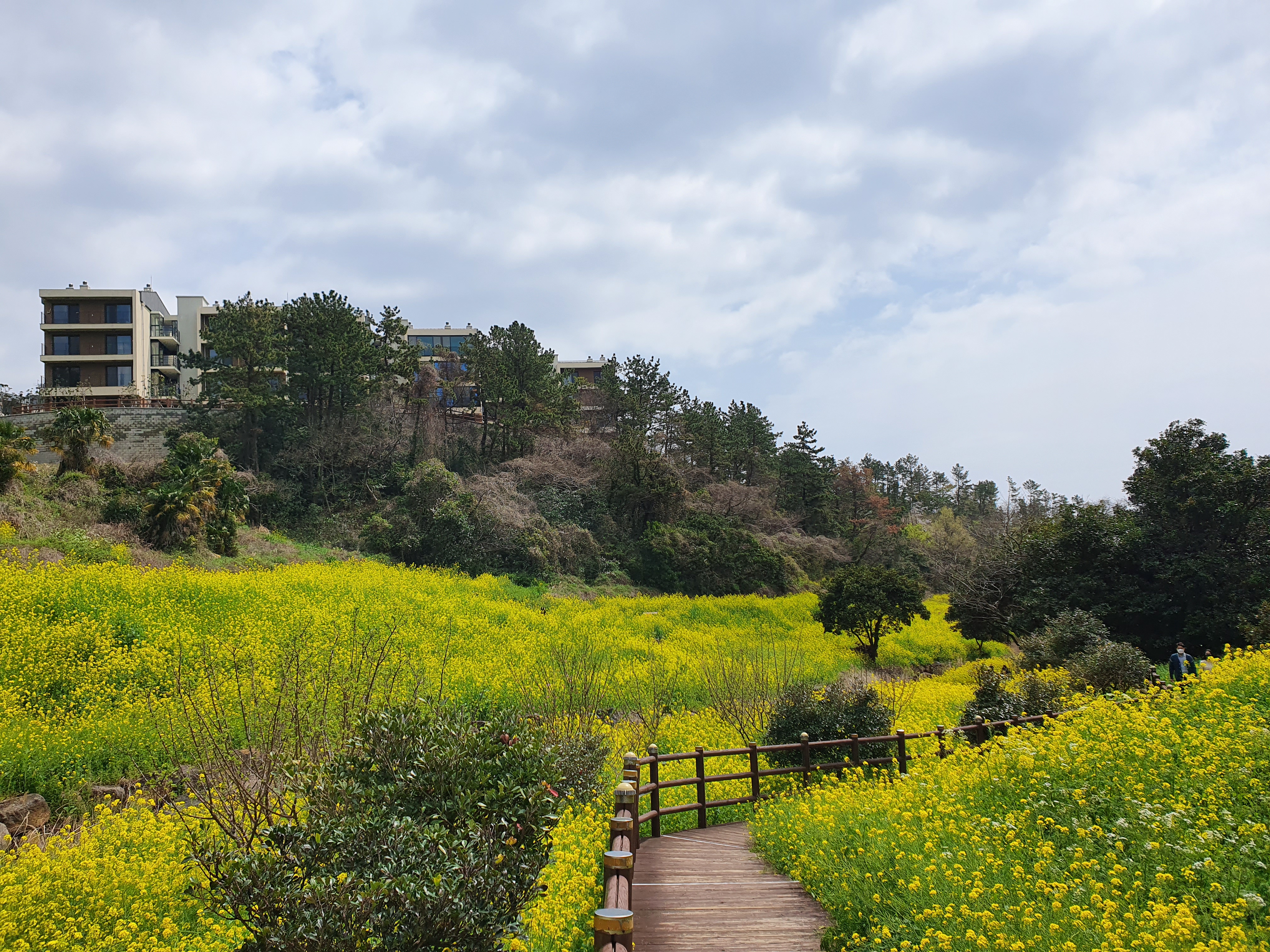 유채꽃 뿐만 아니라 연못, 나무 다리등