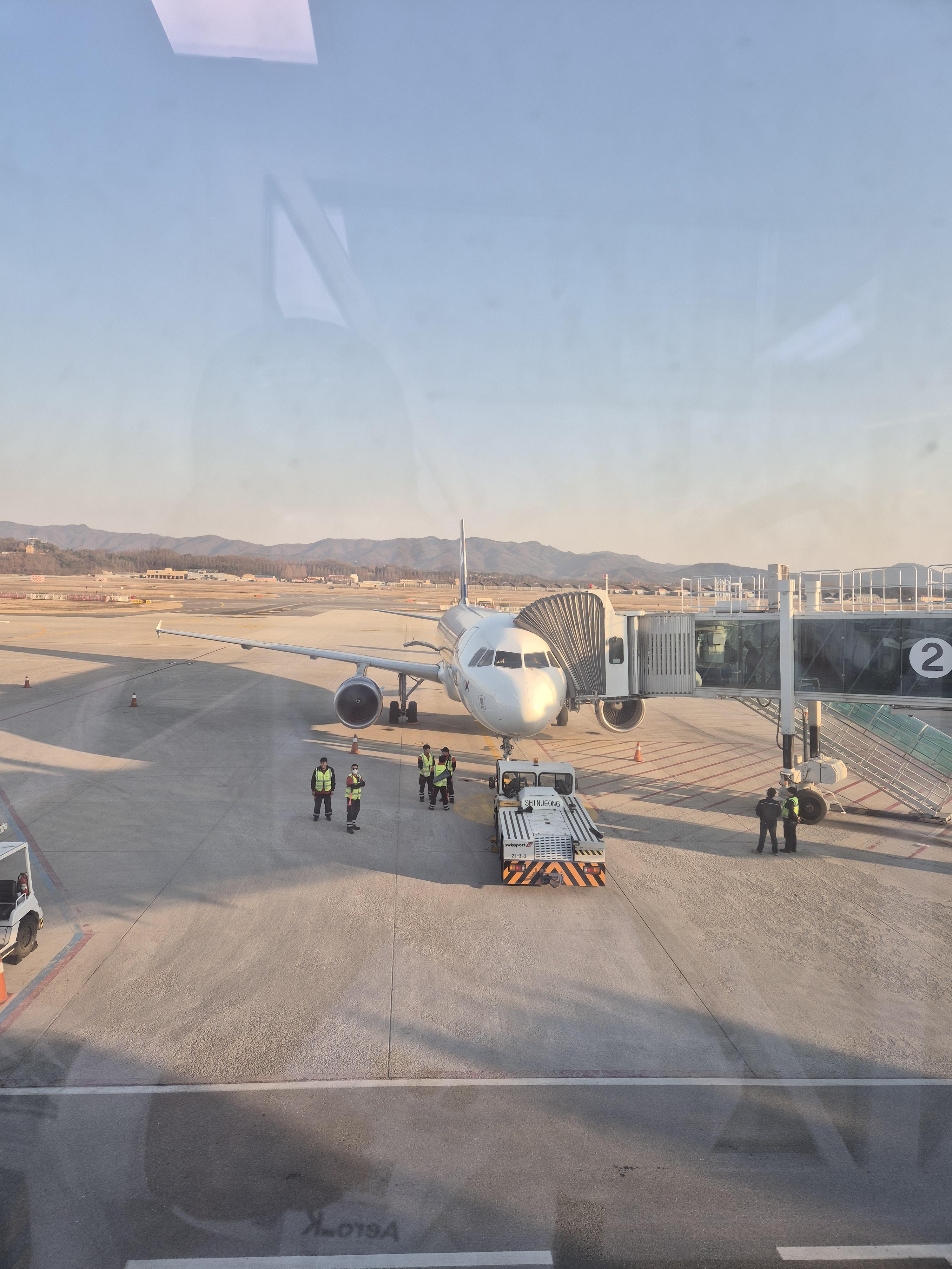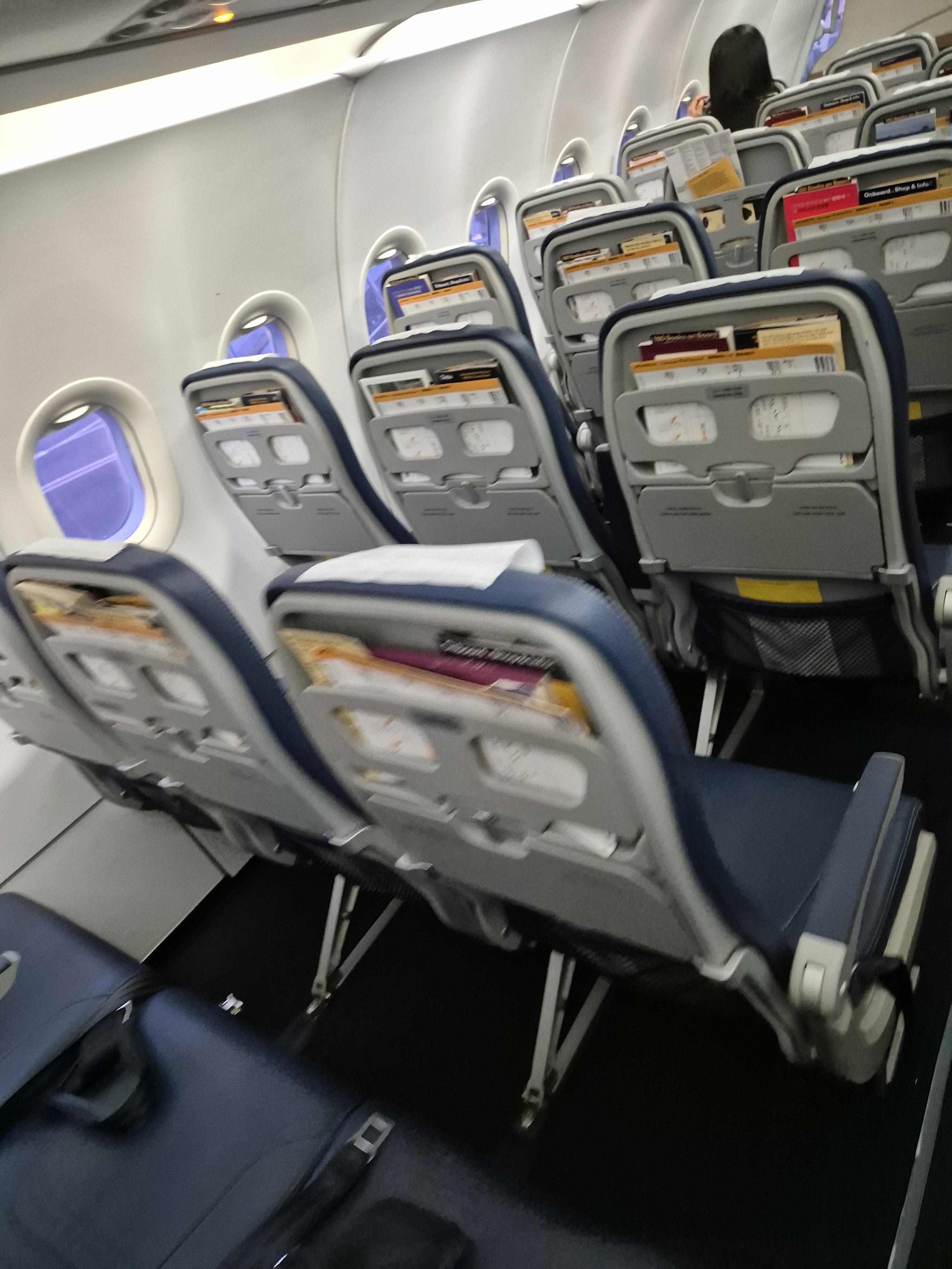 저는 이날 비상구좌석을 배정받아서 비교적 넓고 편하게 항공을 이용했는데요, 사진에 보시는 것처럼 키 168cm의 성인이 앉았을 때 꽤나 공간이 많이 남았습니다. 저가 항공이고 낯선 항공사이다보니 좌석이 좁지 않을까 걱정했는데, 일반 좌석도 사진처럼 보통 항공기와 비슷한 정도의 간격이었습니다.