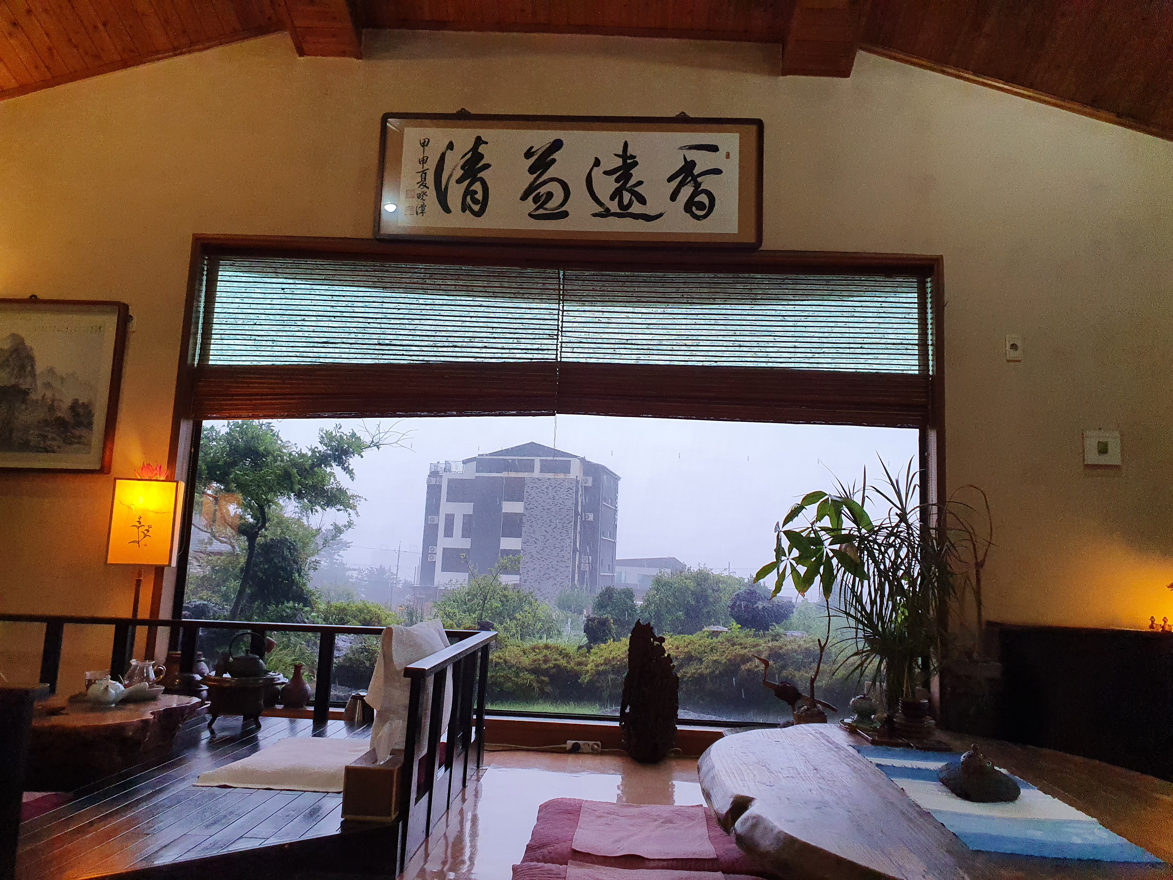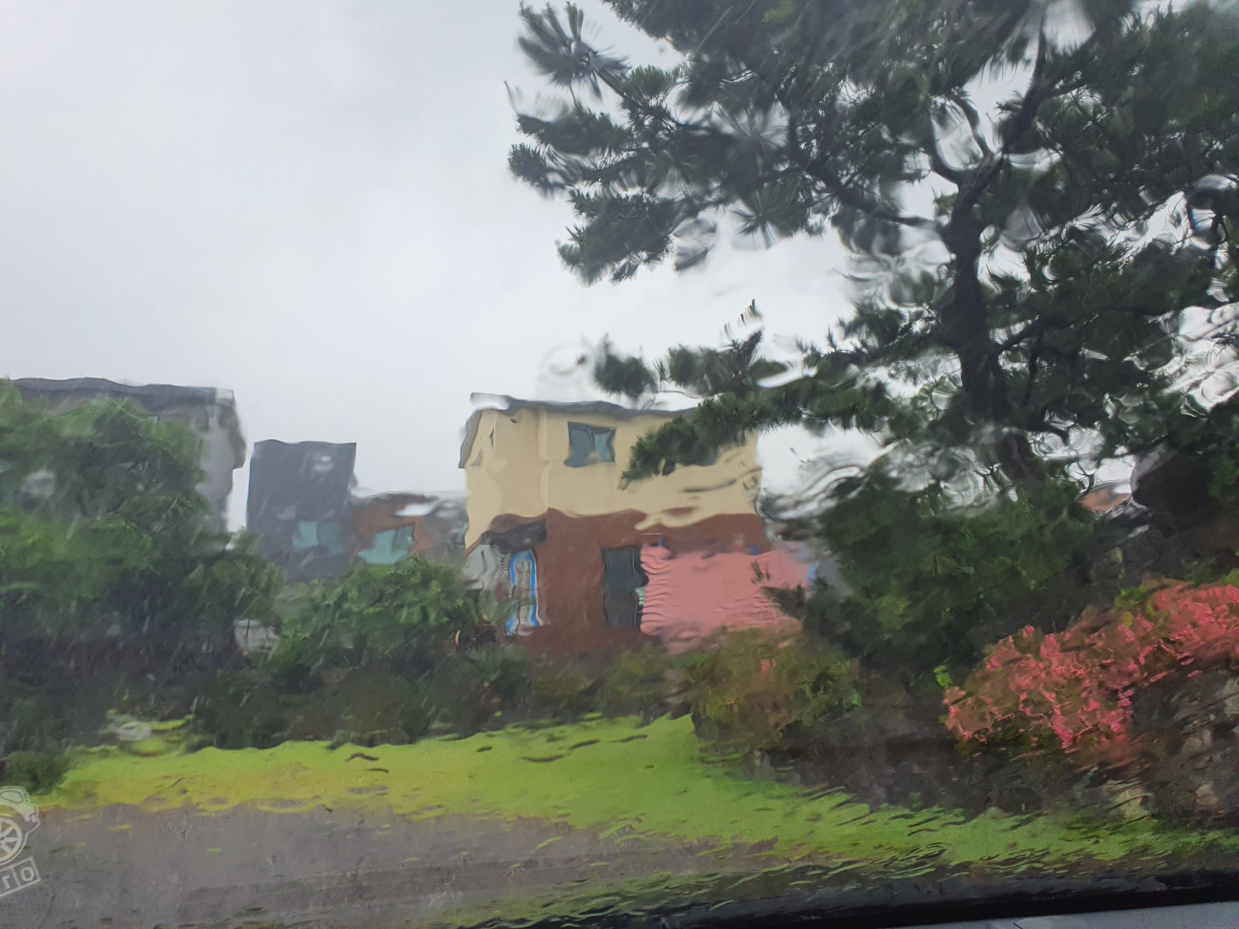 주차 후 잠시 차안에서 내리는 비를 구경하며