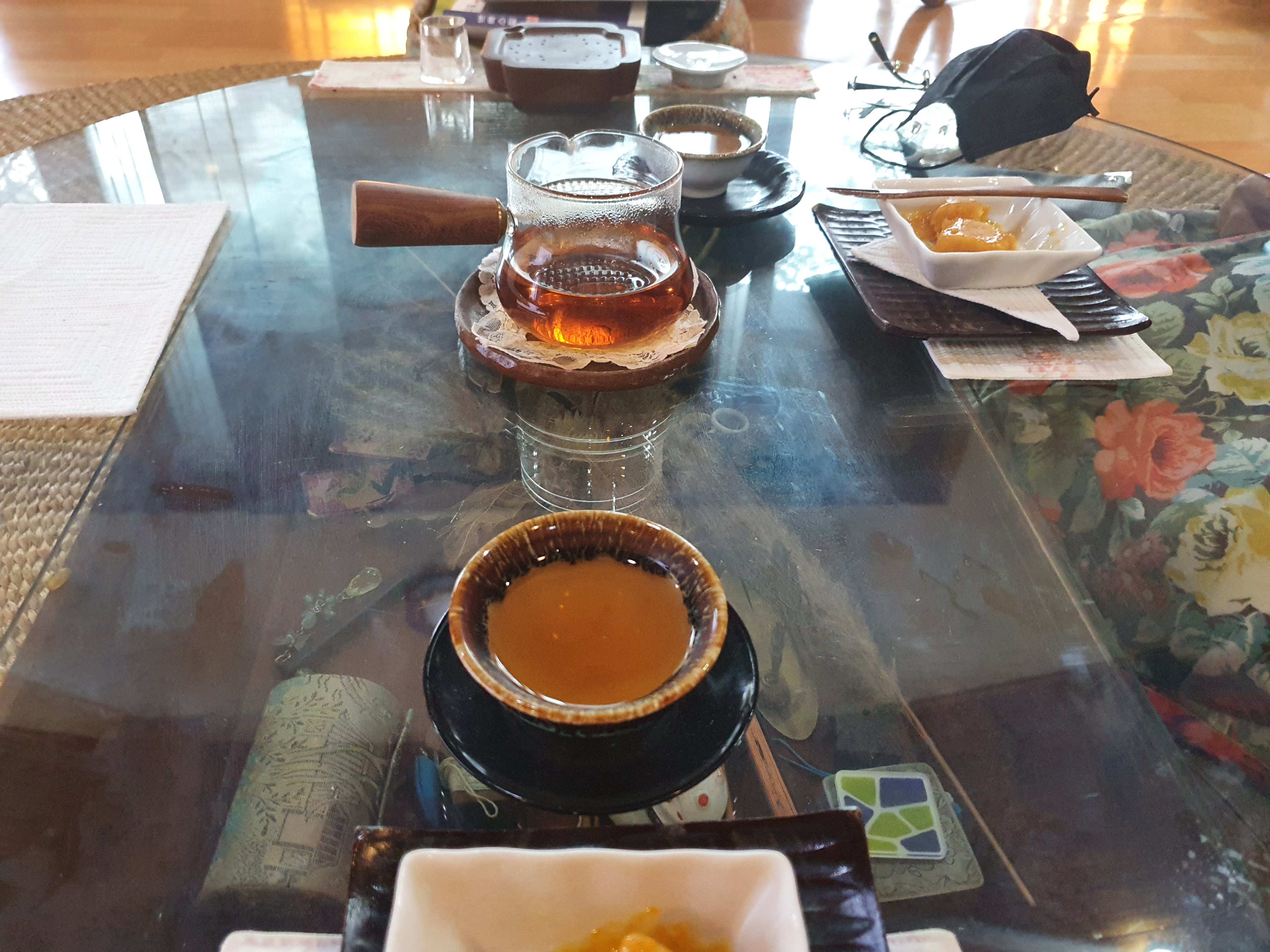 정성스레 만든 다과와 차를 마시고