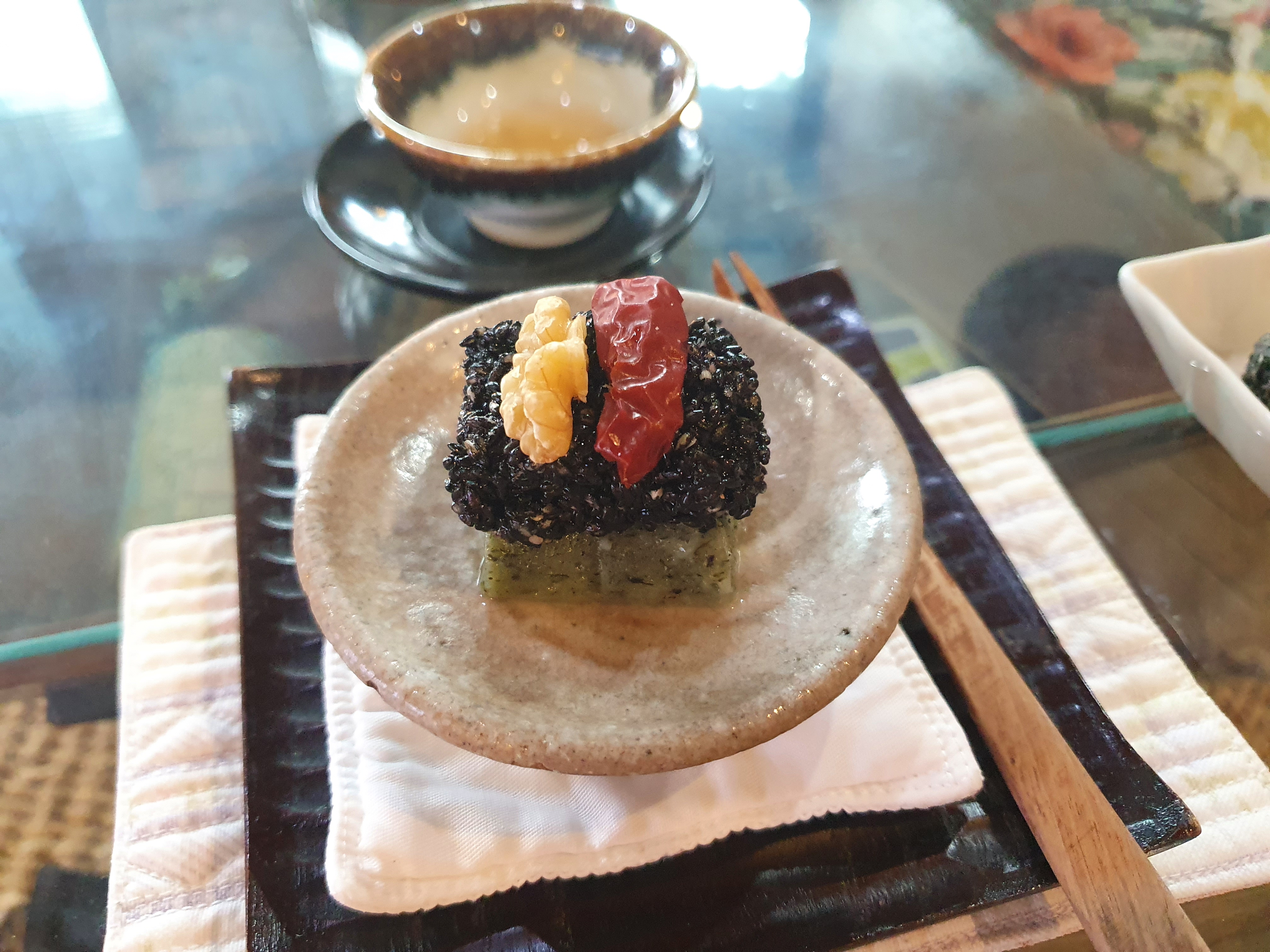 달콤한 흑임자가 올라간 다식과