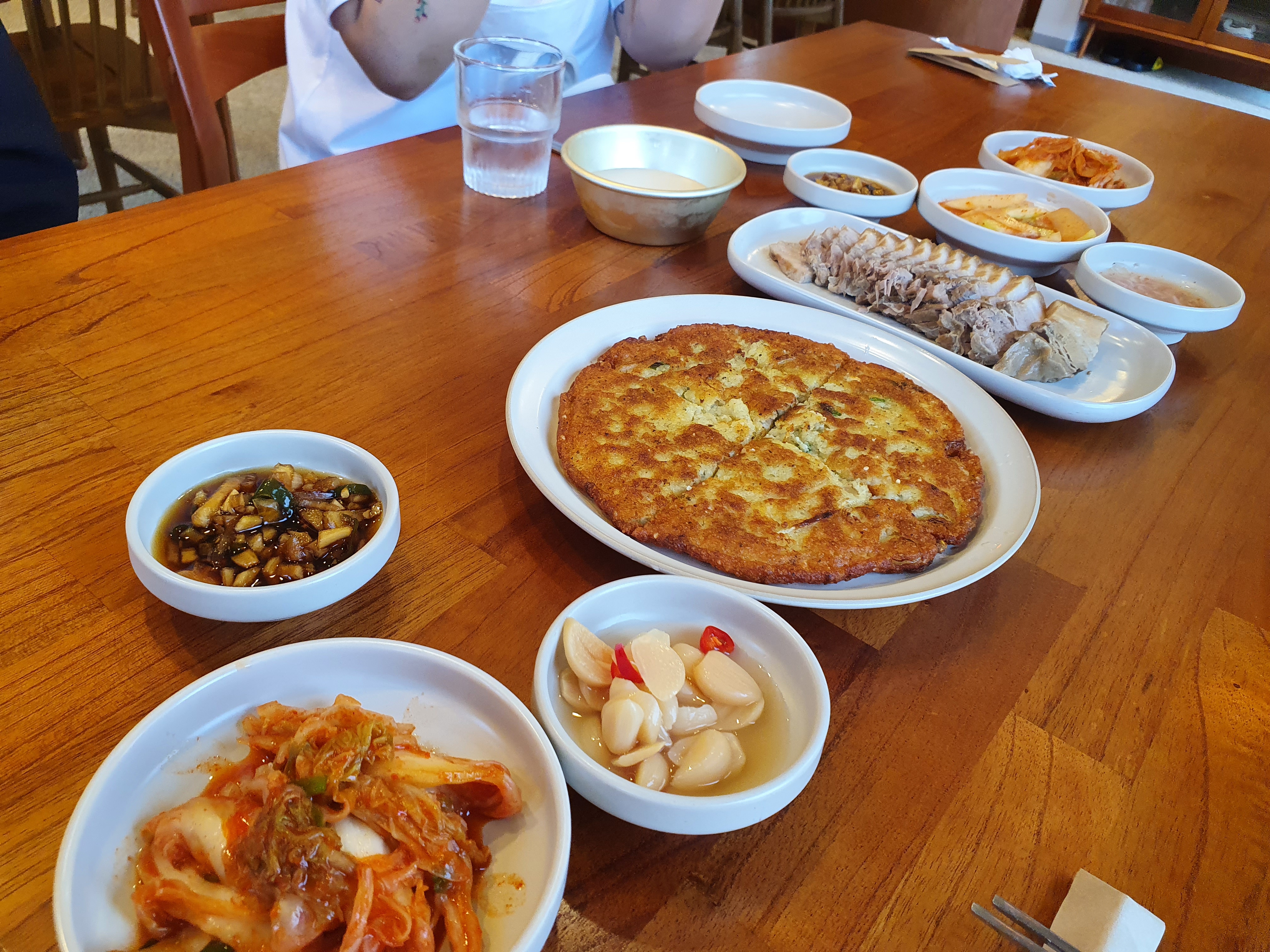 녹두 부침개와 수육이 먼저 셋팅됐다