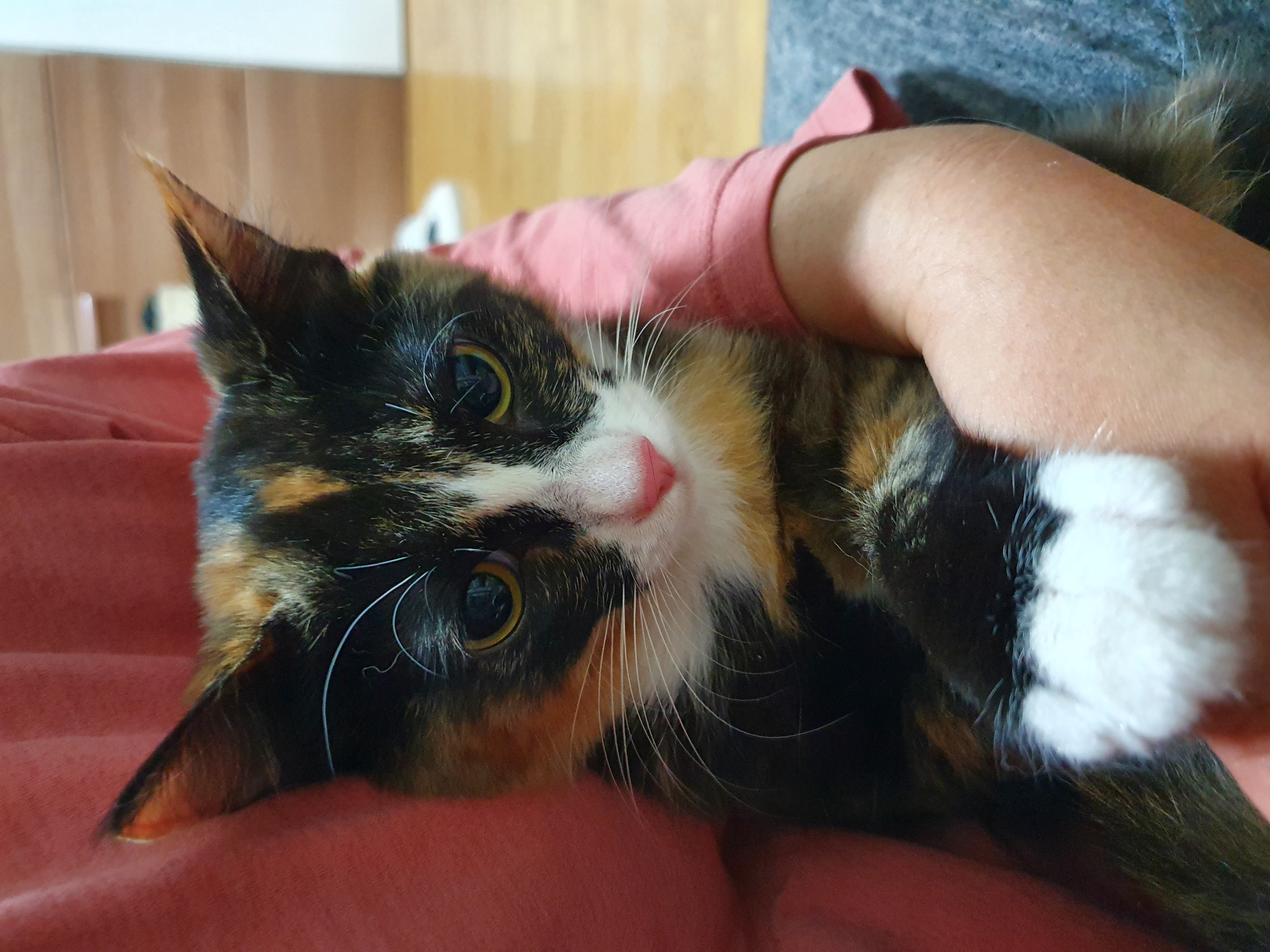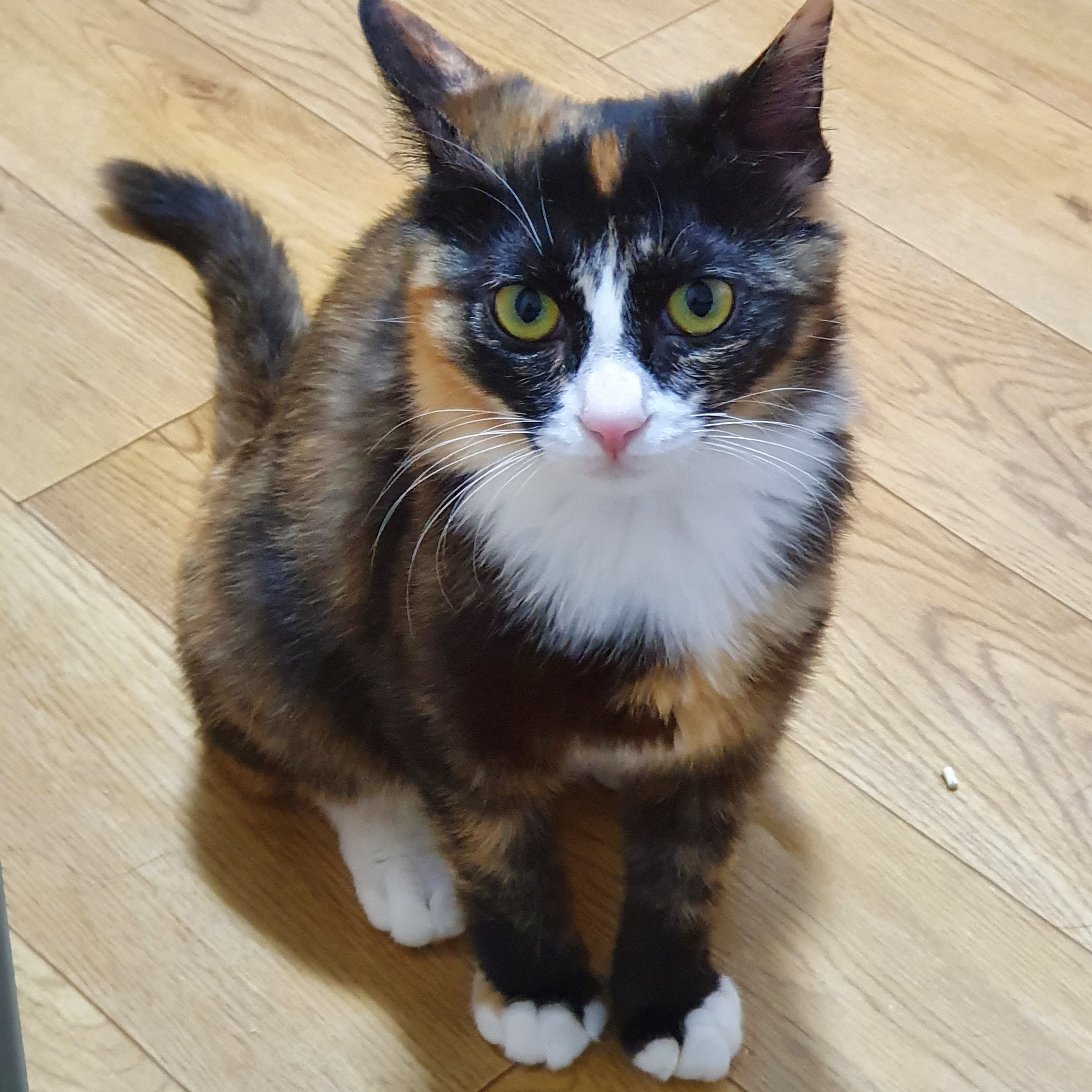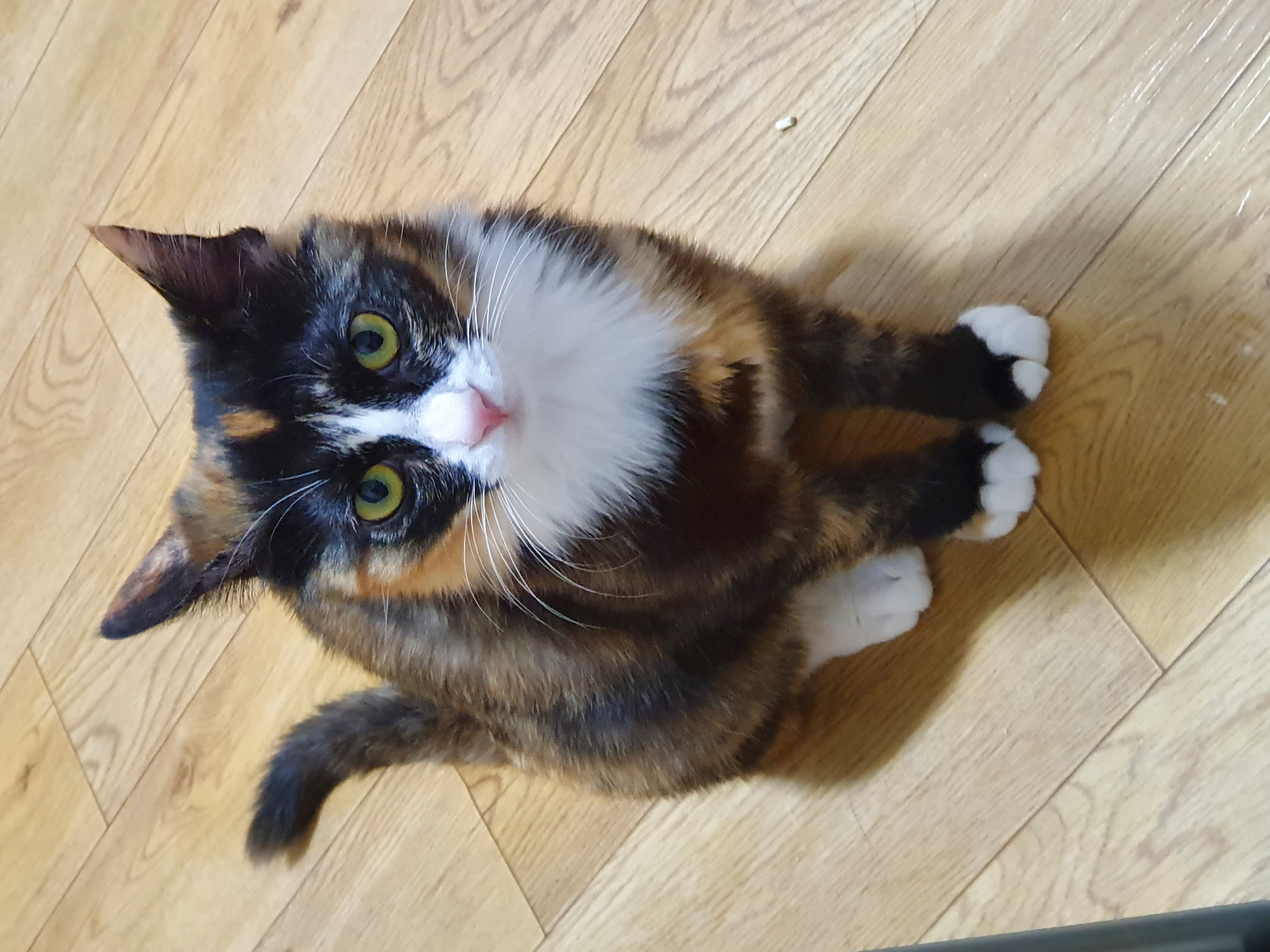 털이 조금 긴 장모 삼색이이다