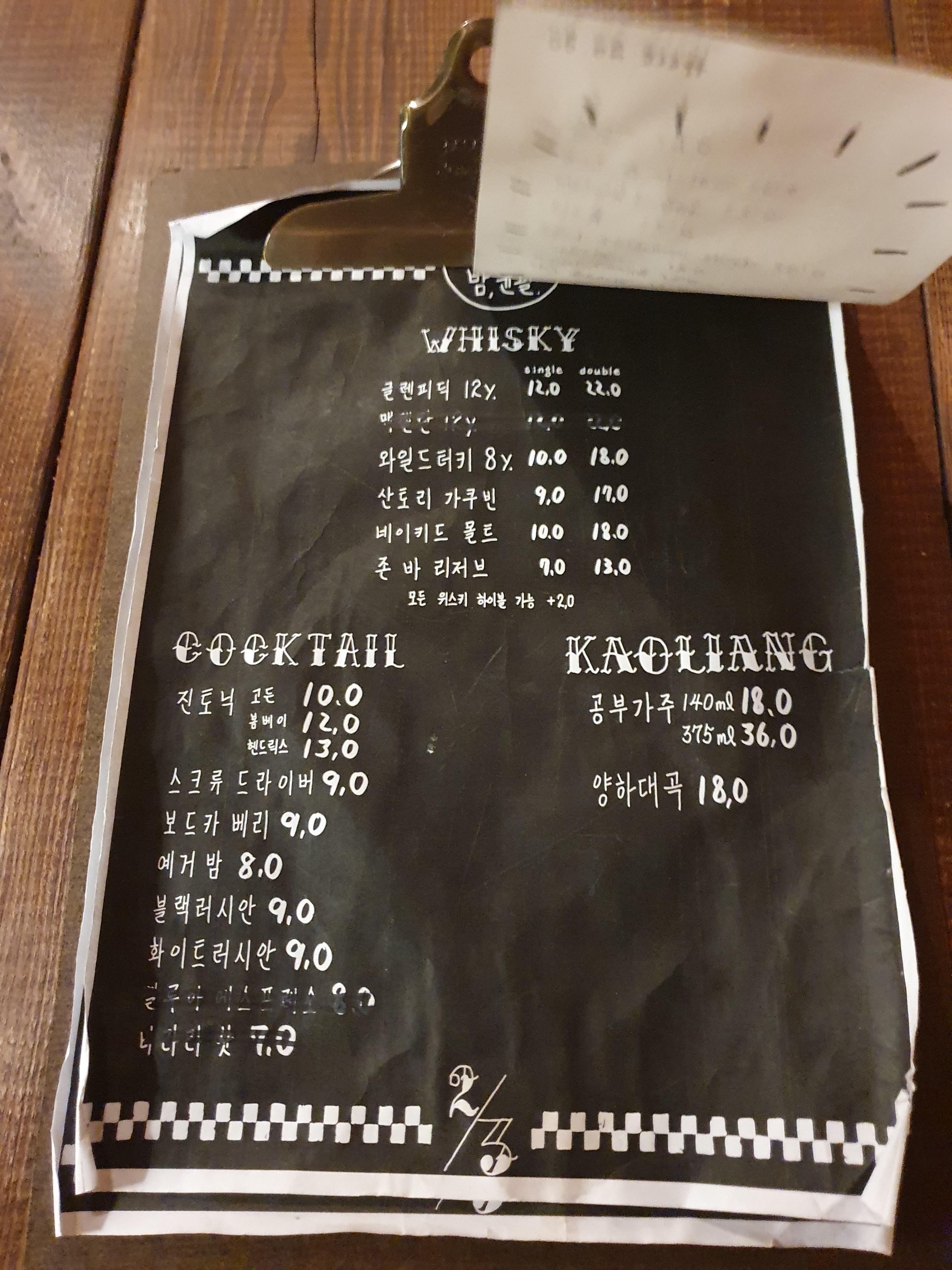 밤 윤활에 방문했더니 주류 메뉴판을 주신다.