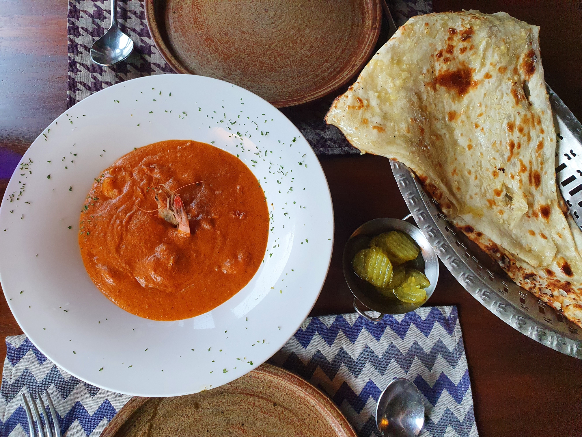 새우커리와 버터갈릭 난