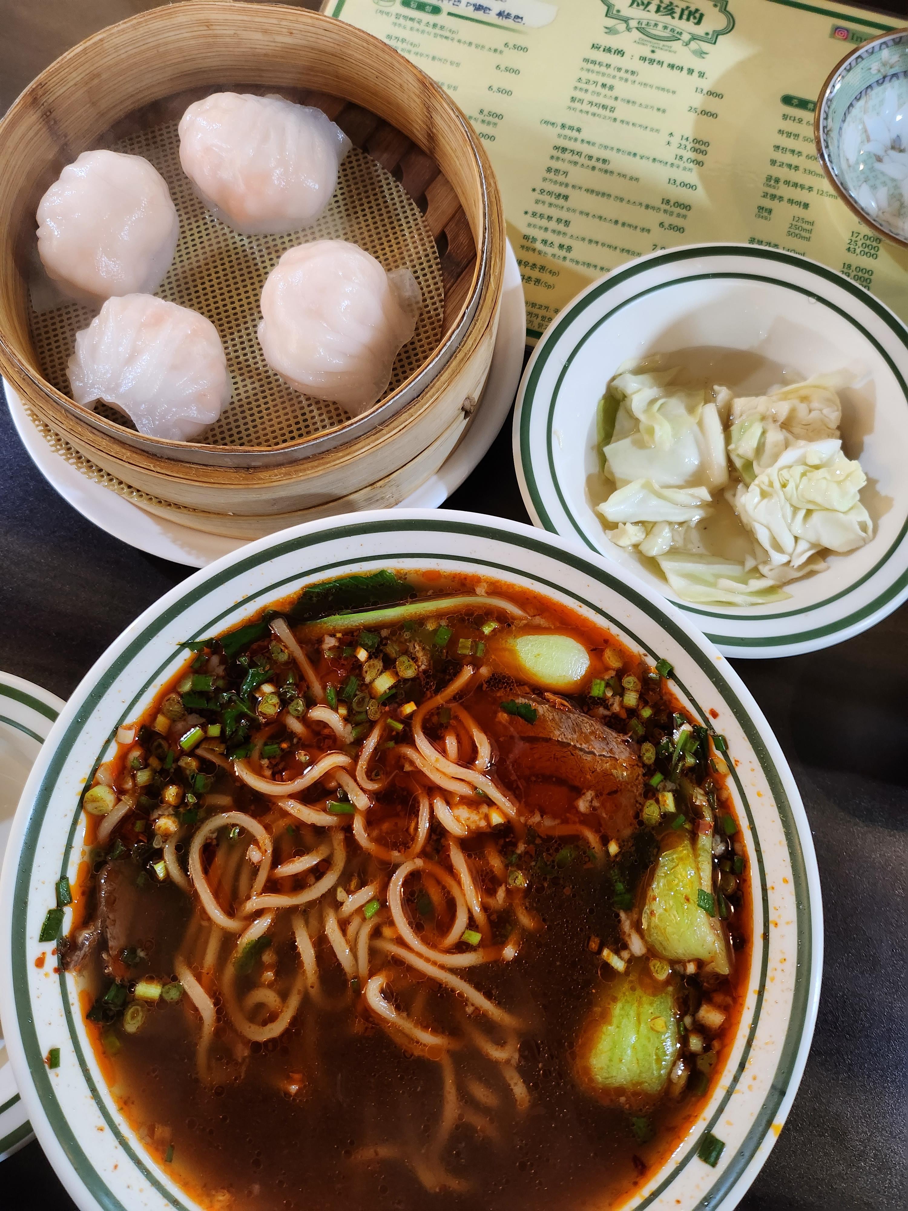 먹고 싶은 메뉴가 너무너무너무 많았지만 혼자 방문했기에 가장 추천을 많이 받았던 우육탕면과 하가우 딤섬을 주문했습니다.