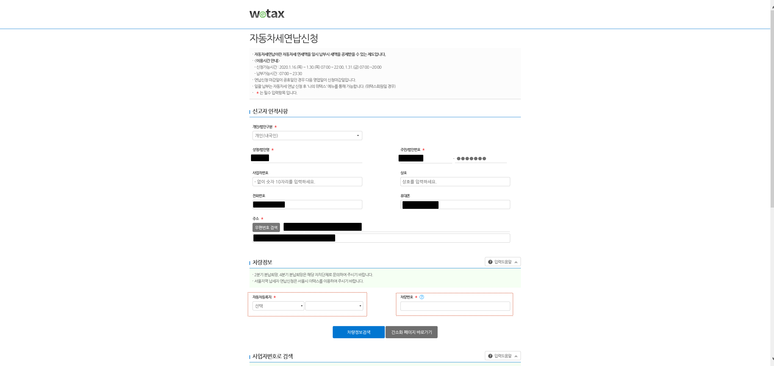 Wetax 위택스 자동차세 연납신청 전용 서비스 간소화페이지