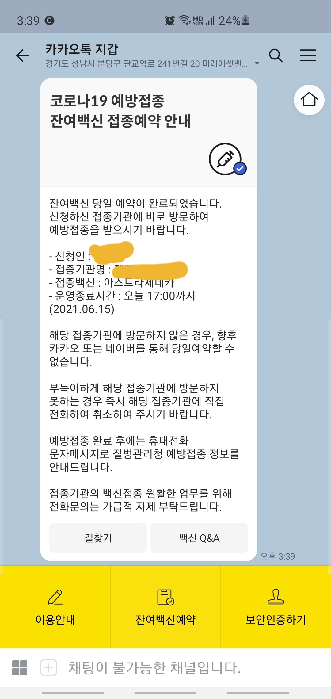 또 알람이 떠서 눌렀는데 접종 예약에 성공해버렸다!!!