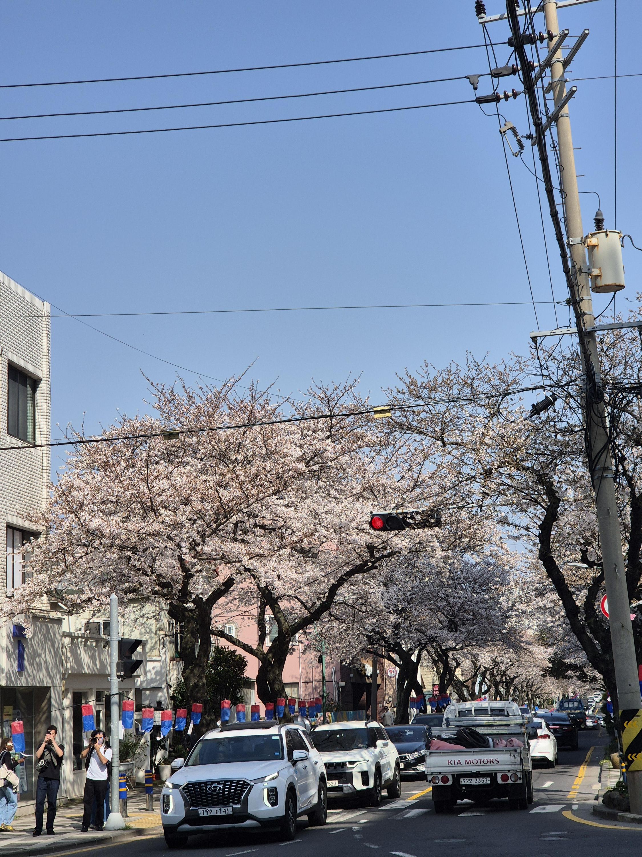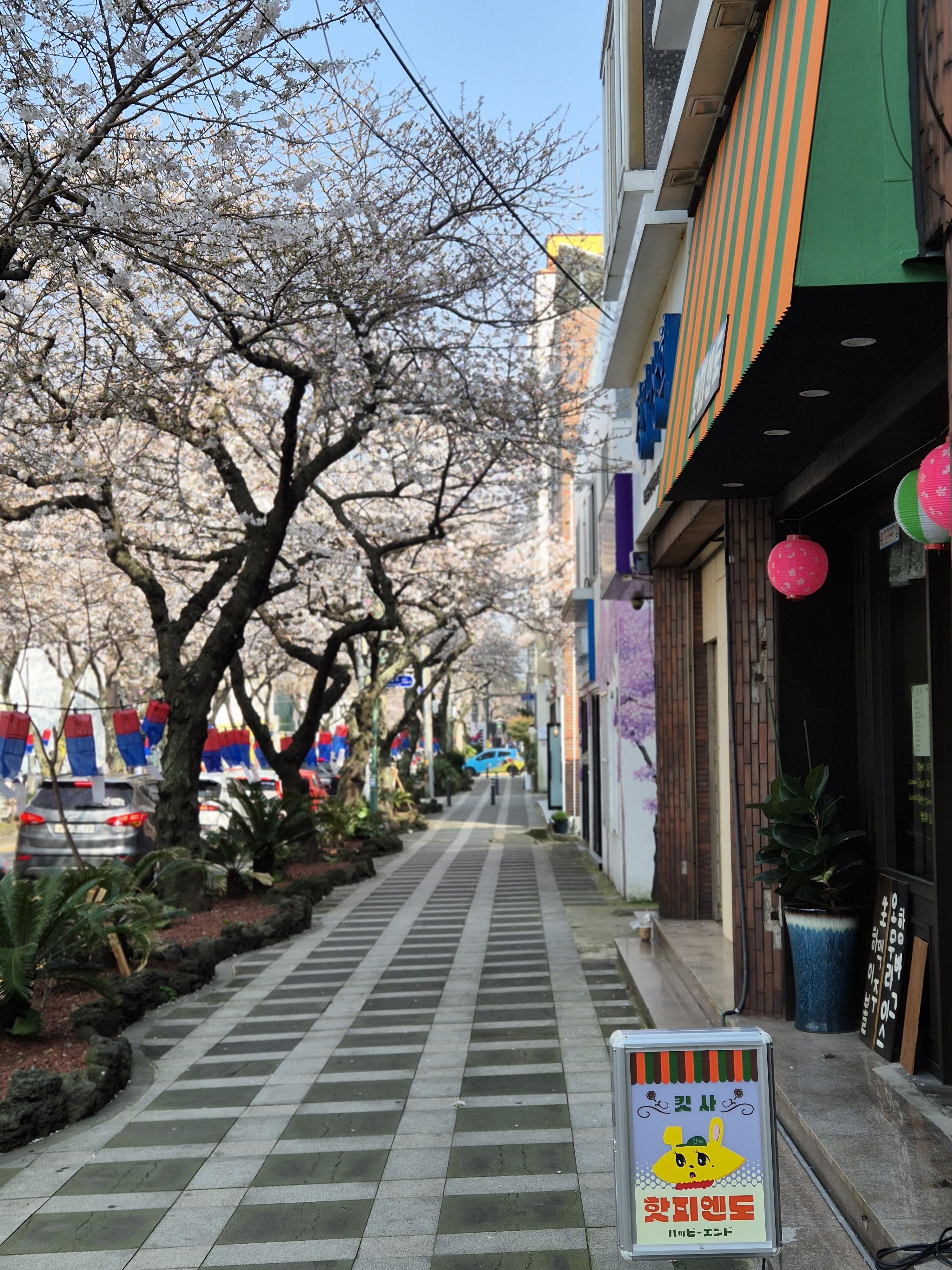 차없는 거리로 운영되는 벚꽃축제 기간에는 주차자리가 매우 부족하지만, 벚꽃축제 기간이 끝났지만 오히려 벚꽃이 가장 예쁜시기인 지금은 축제기간보다 한산한 모습이었습니다.