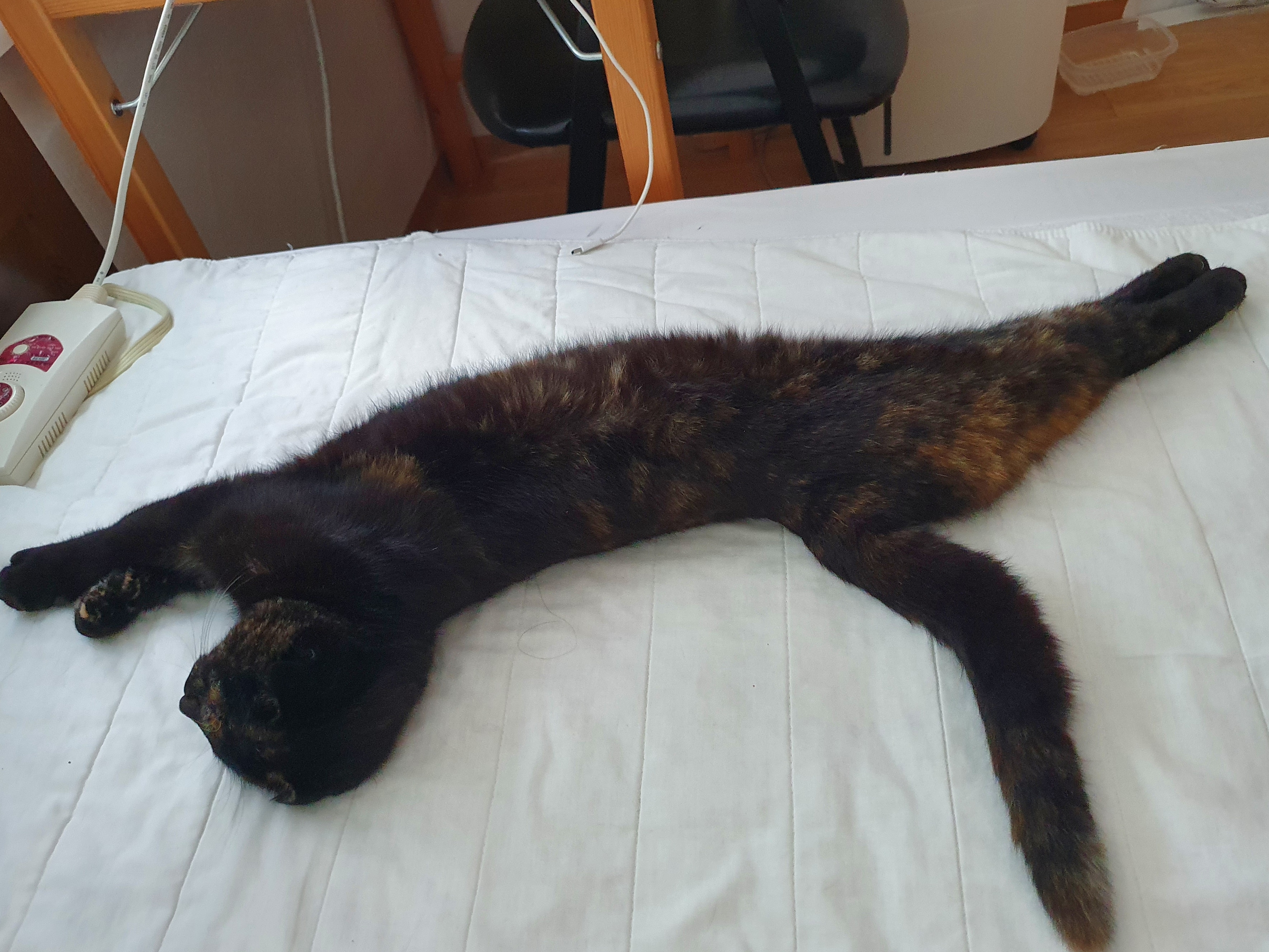 전기장판을 틀어줬더니 쭈욱 뻗어버린 동백이