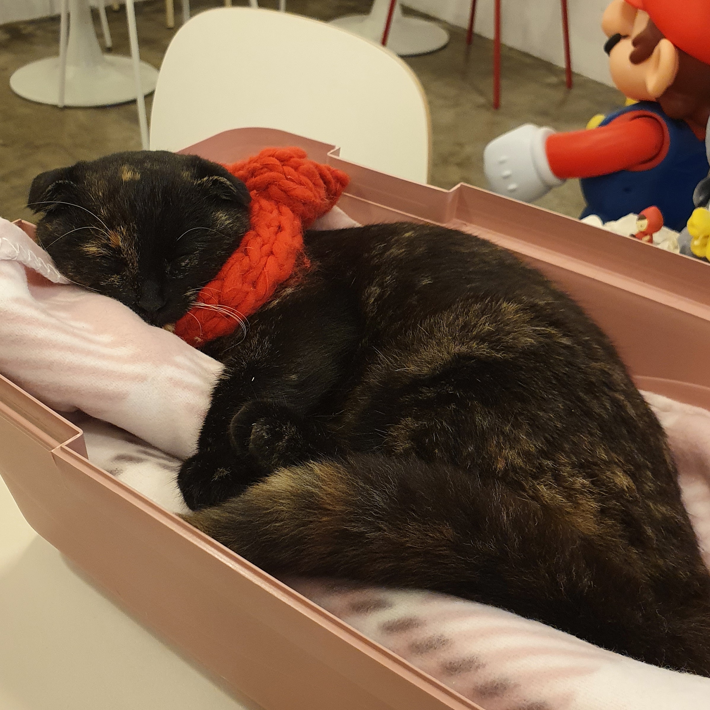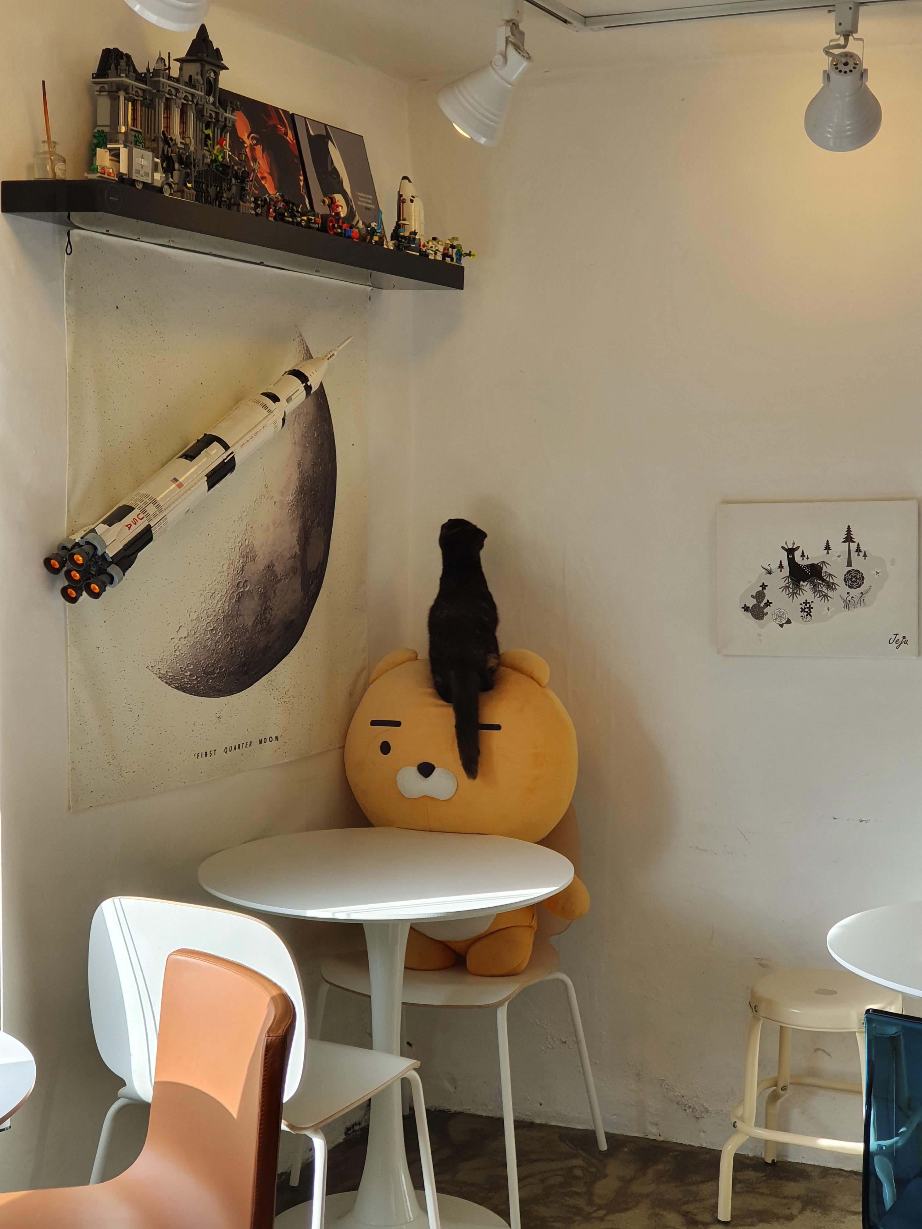 혼자 둘 수가 없어서 카페에 데리고 출근했다