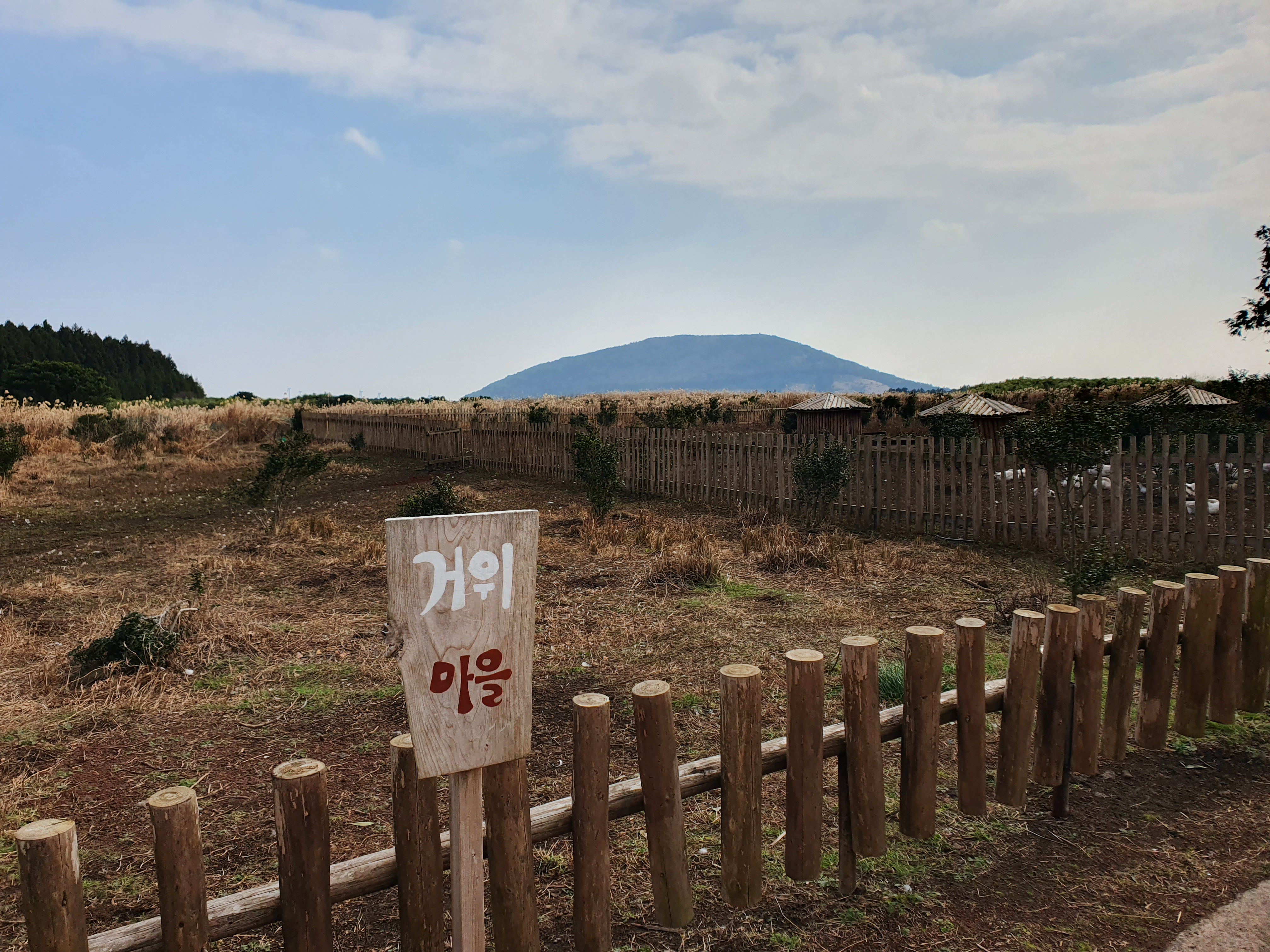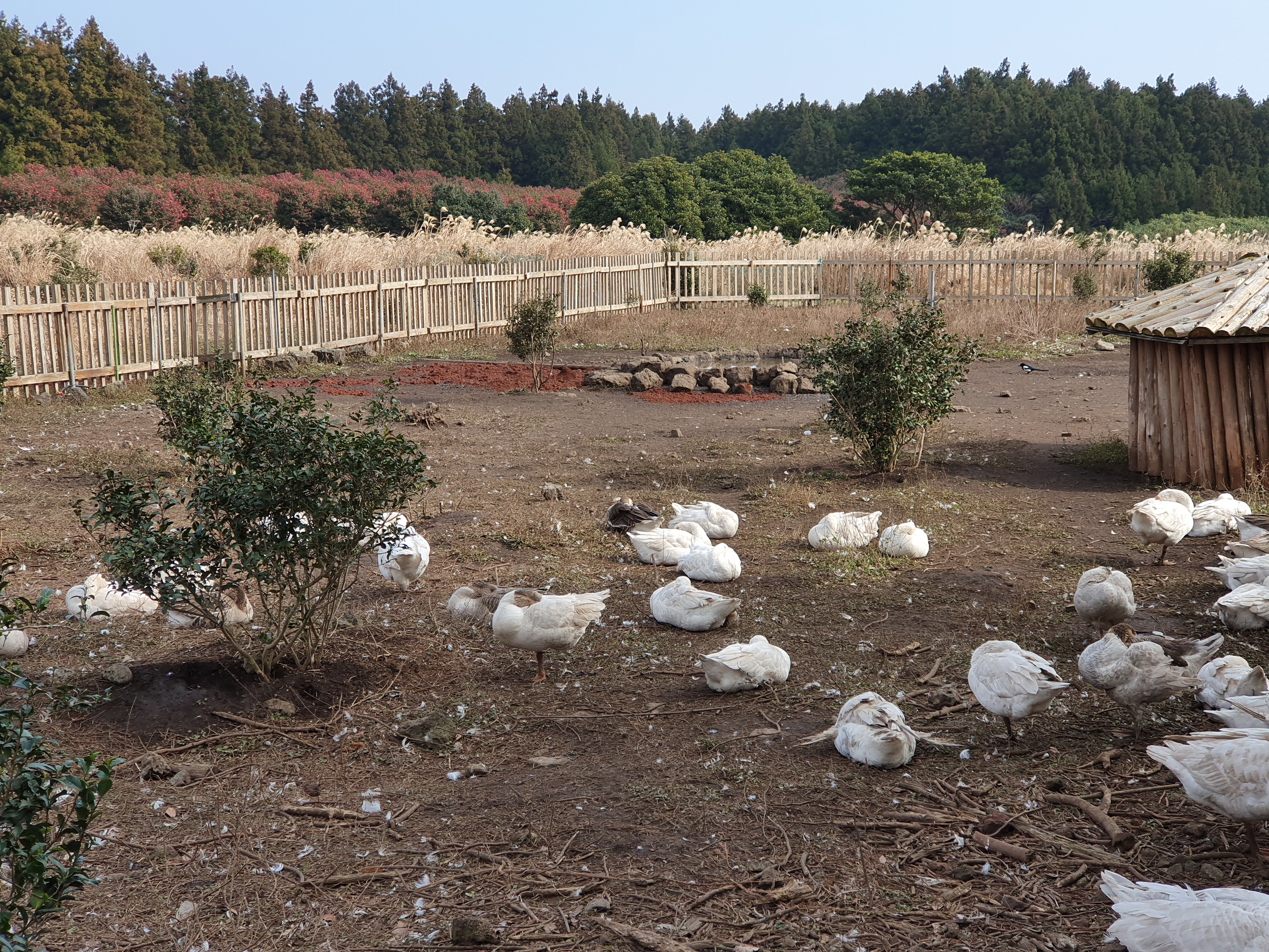 나무 울타리가 둘러진 거위마을