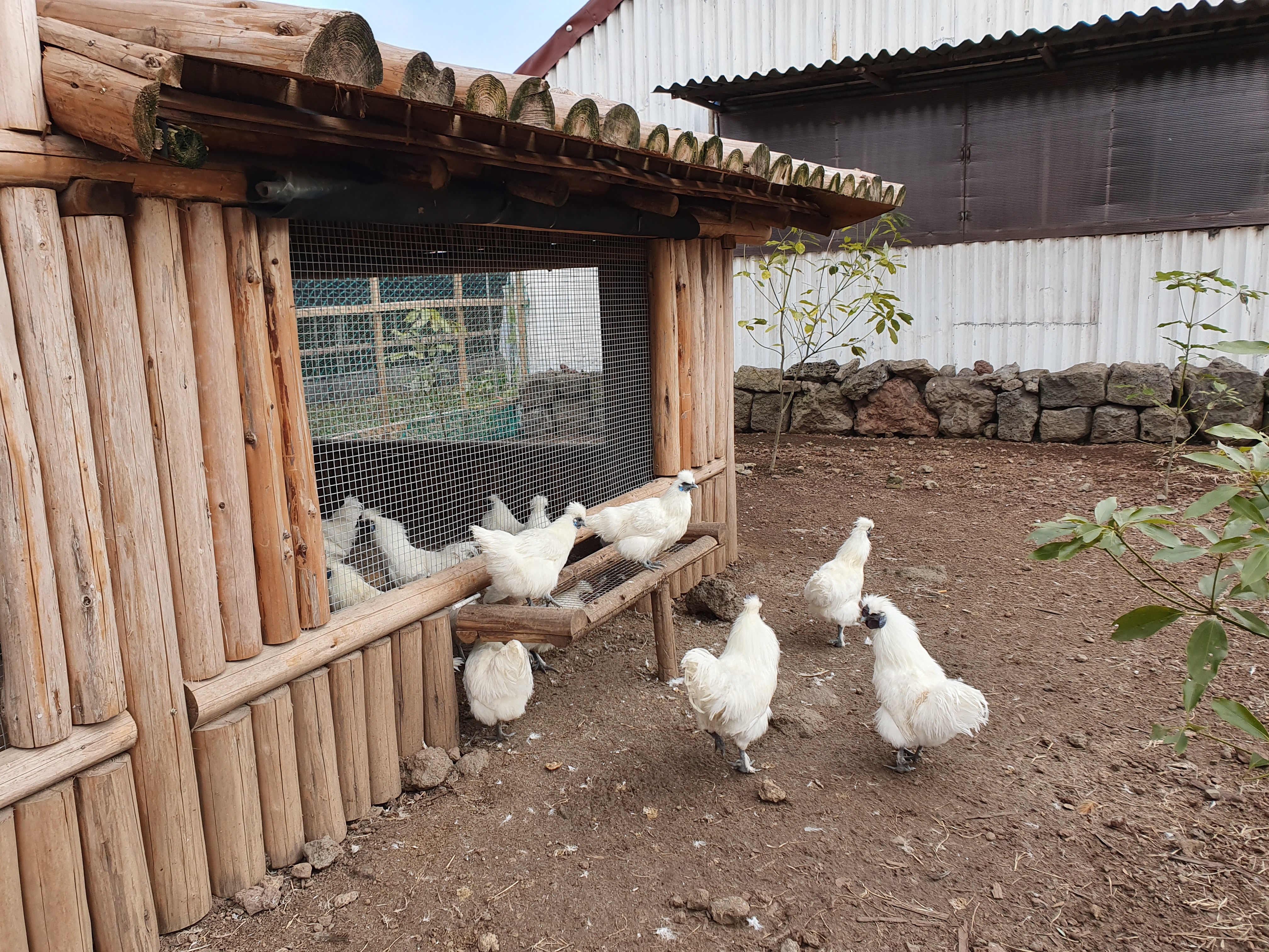 하얀닭과 오골계, 앵무새와 병아리가 함께사는